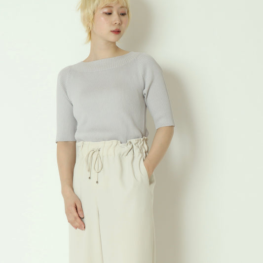 テンセル麻ポリエステルヨーク5分袖リブニット 70815