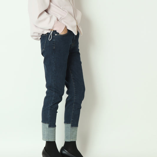 INDIMARK ボーイフレンドデニム 折り返し風デザイン 裏起毛 インディゴ WJ042