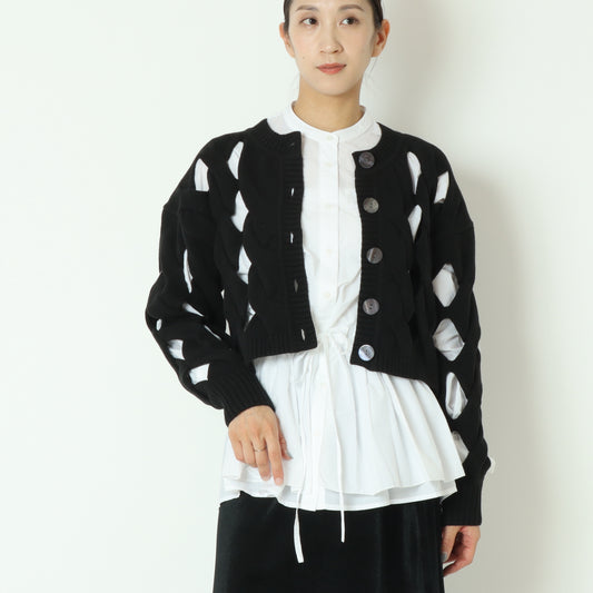 2重臼クルーネック2WAYコインカーディガン 235LA005