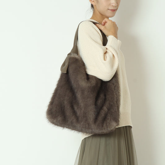 リボンワンハンドルミンク風エコファートートバッグ 100000490