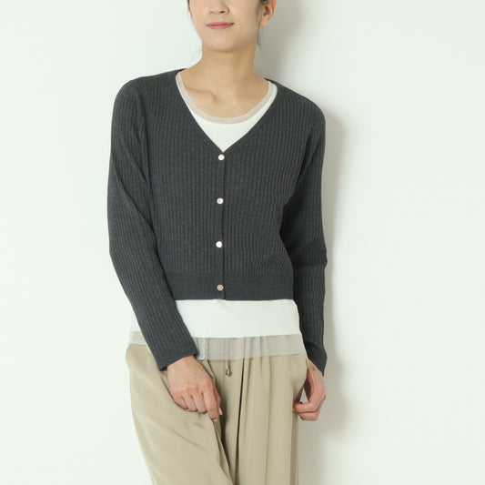 コットンMIXニットクロップドリブカーディガン 51225085