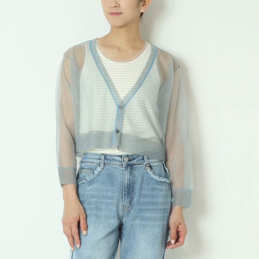 コントラストステッチシアーニットカーディガン E25S0008