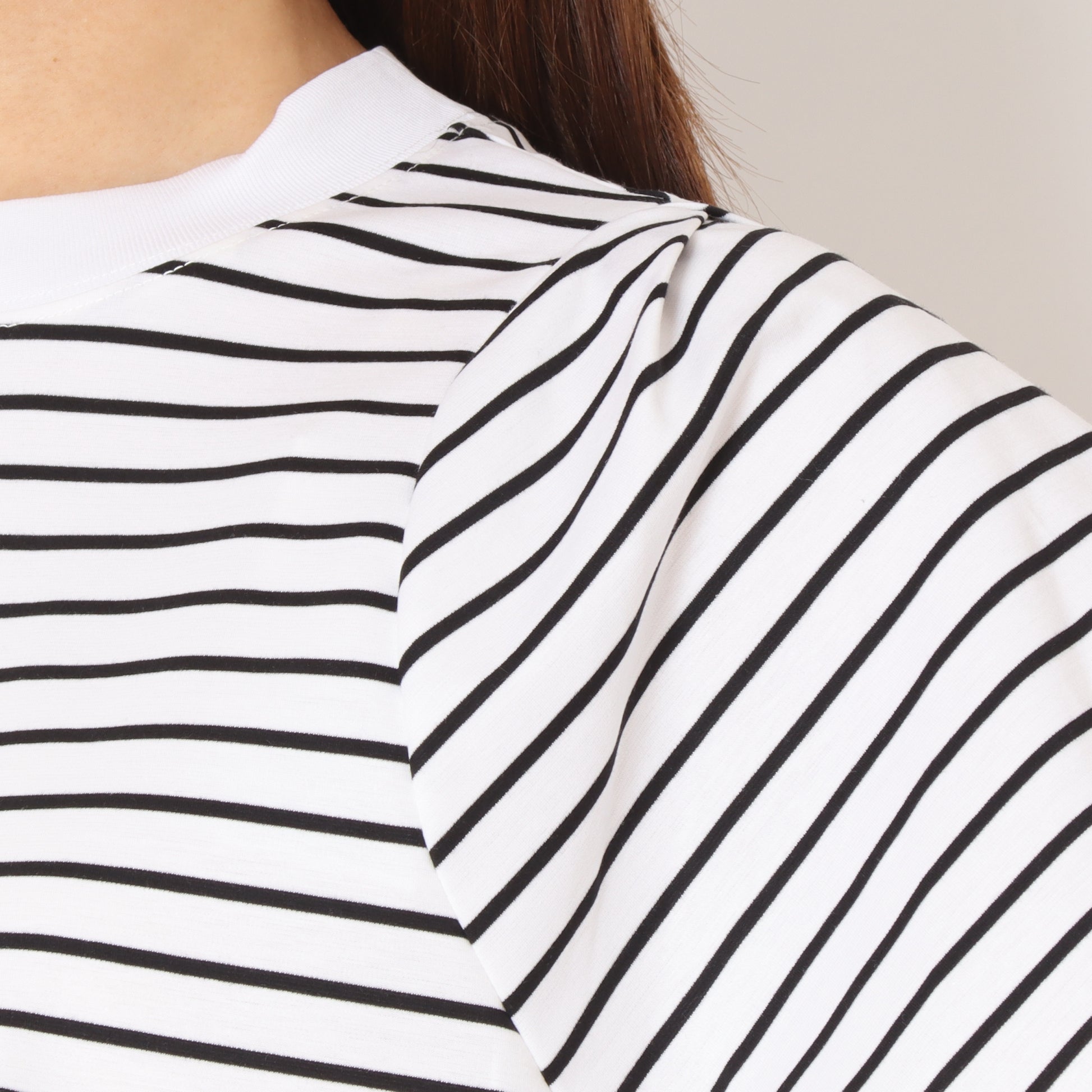 さらっと滑らかな肌触りの綿100%素材を使用したボーダータックスリーブプルオーバーです。