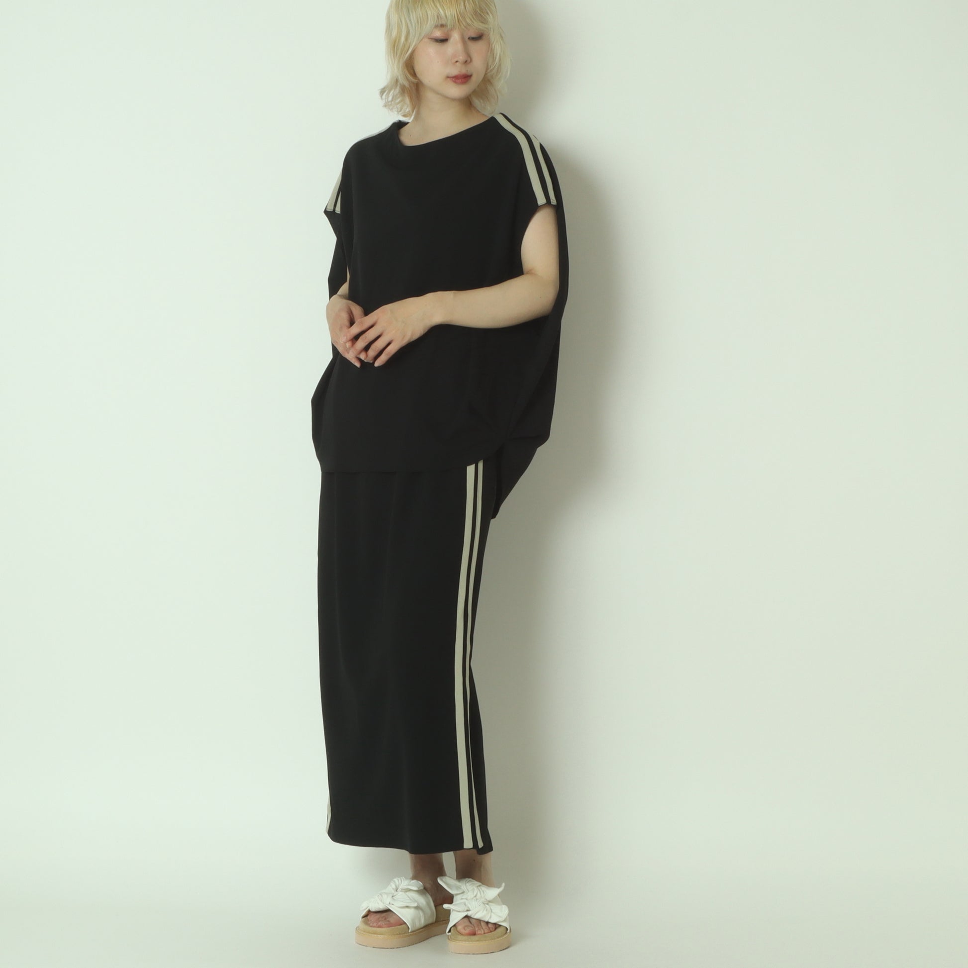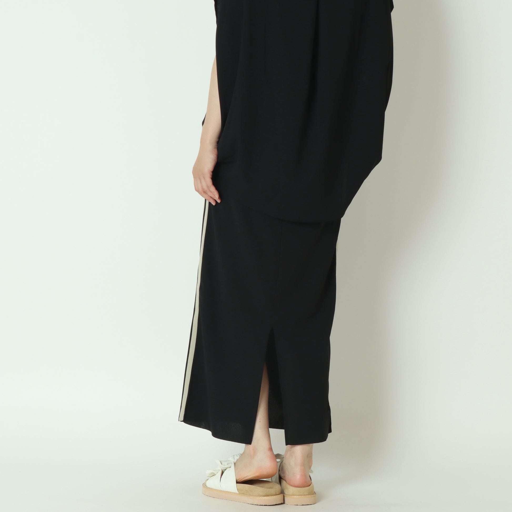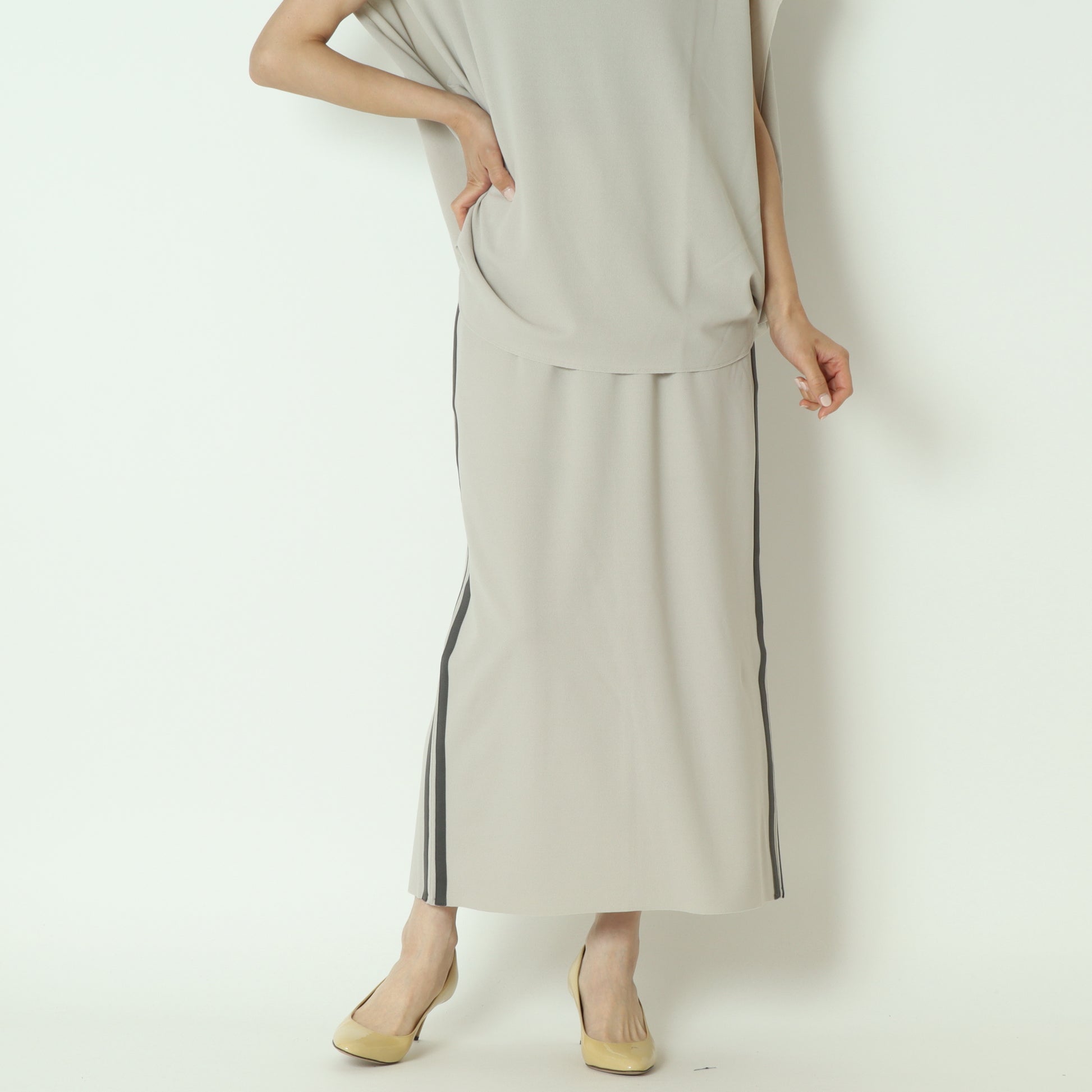 サイドラインがスポーティな印象を添えるロングナロースカート。