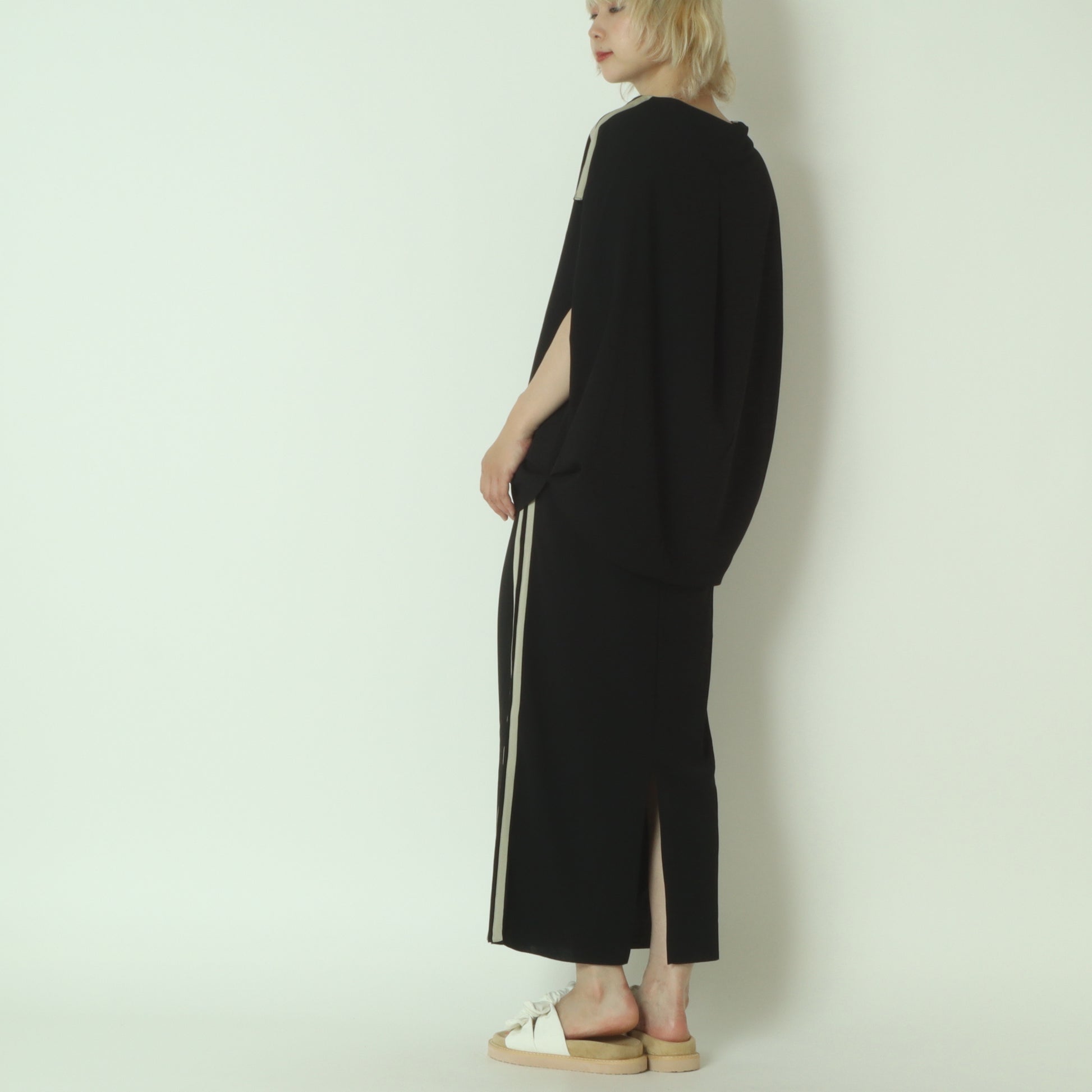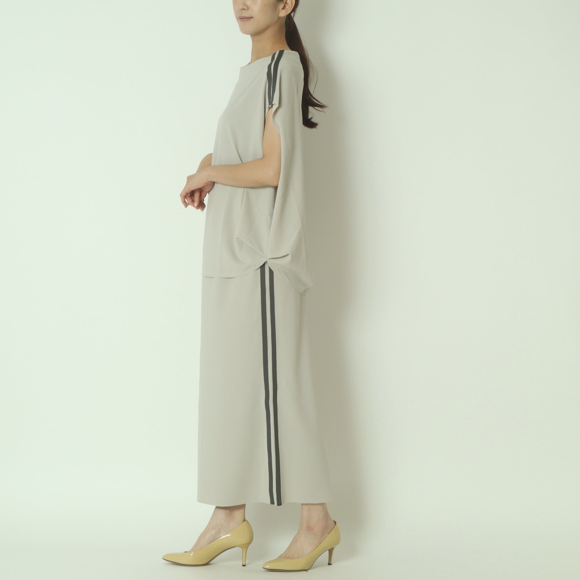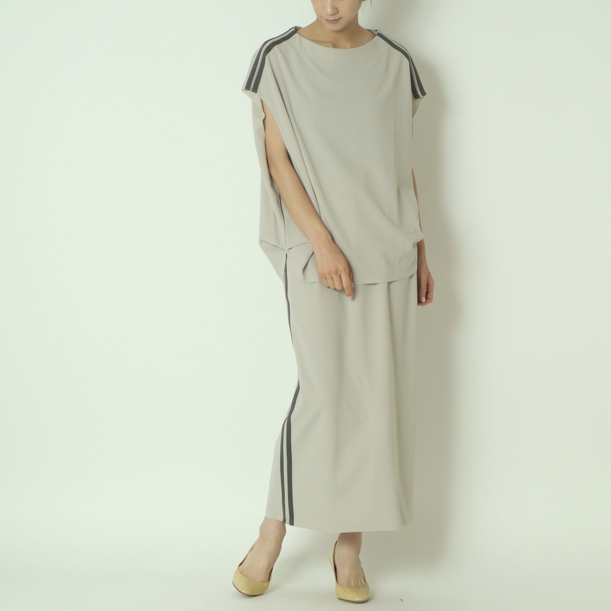 サイドラインがスポーティな印象を添えるロングナロースカート。