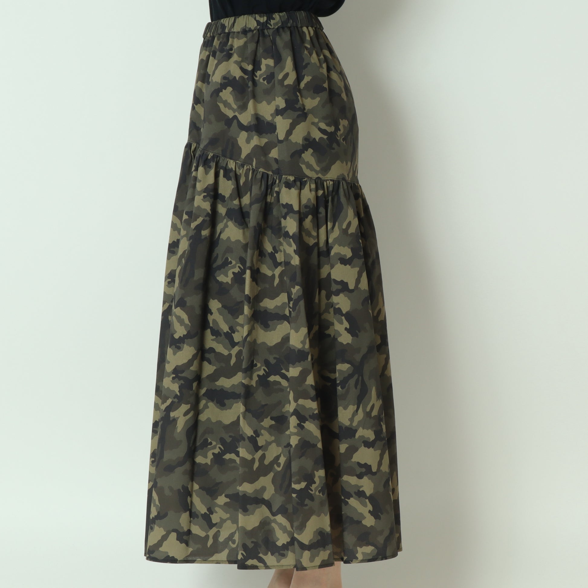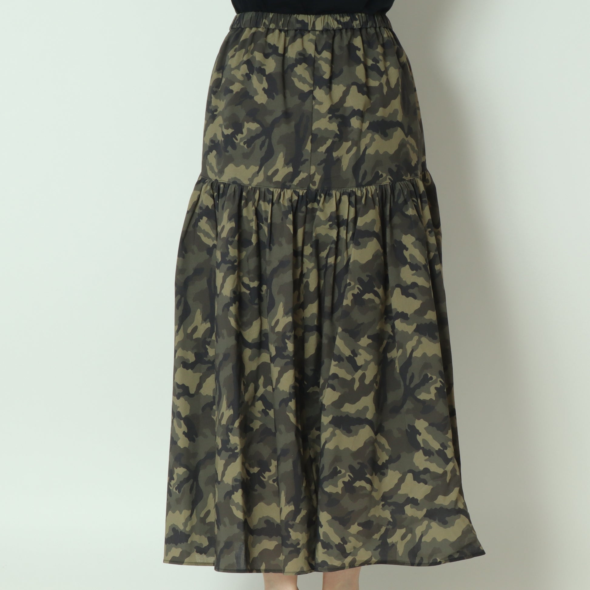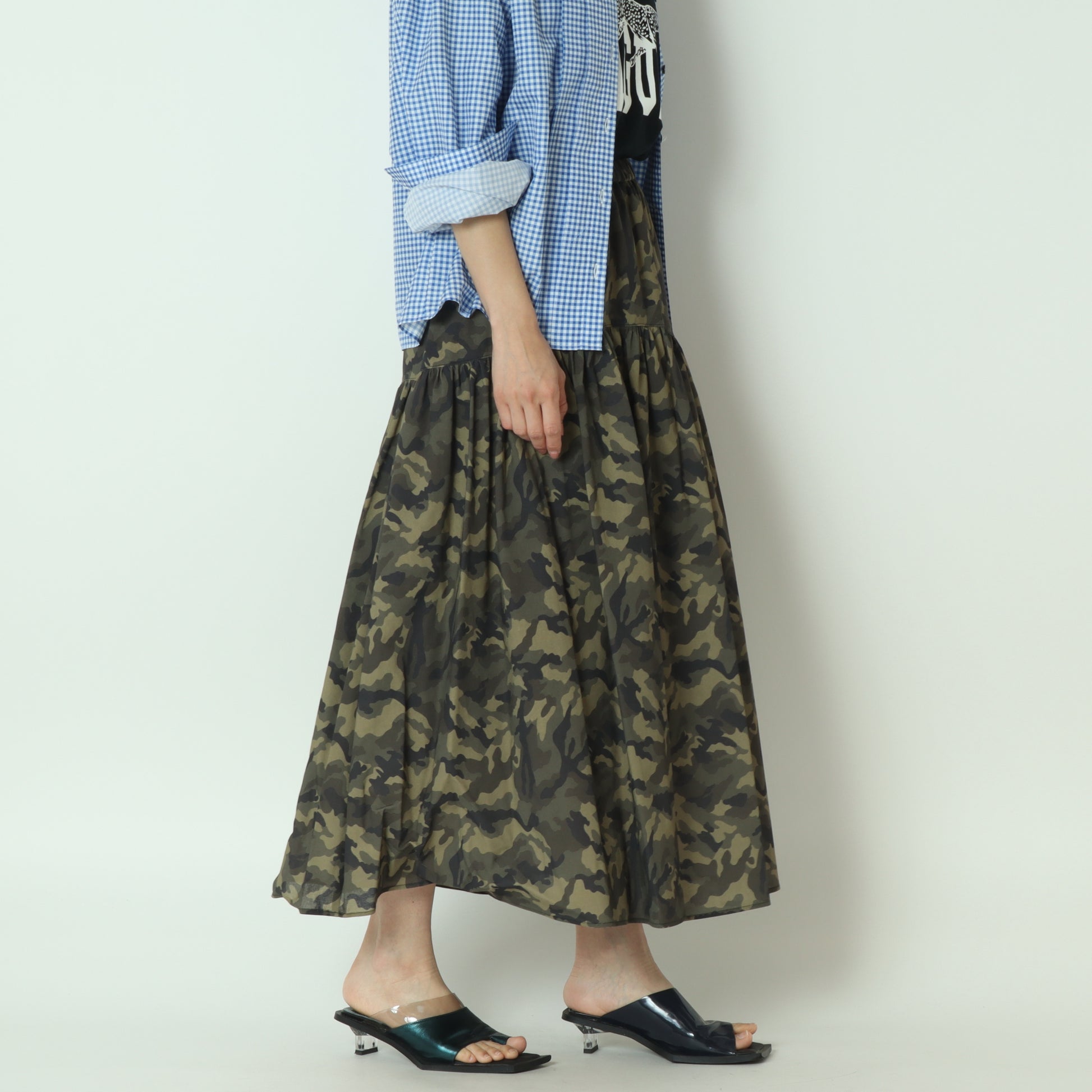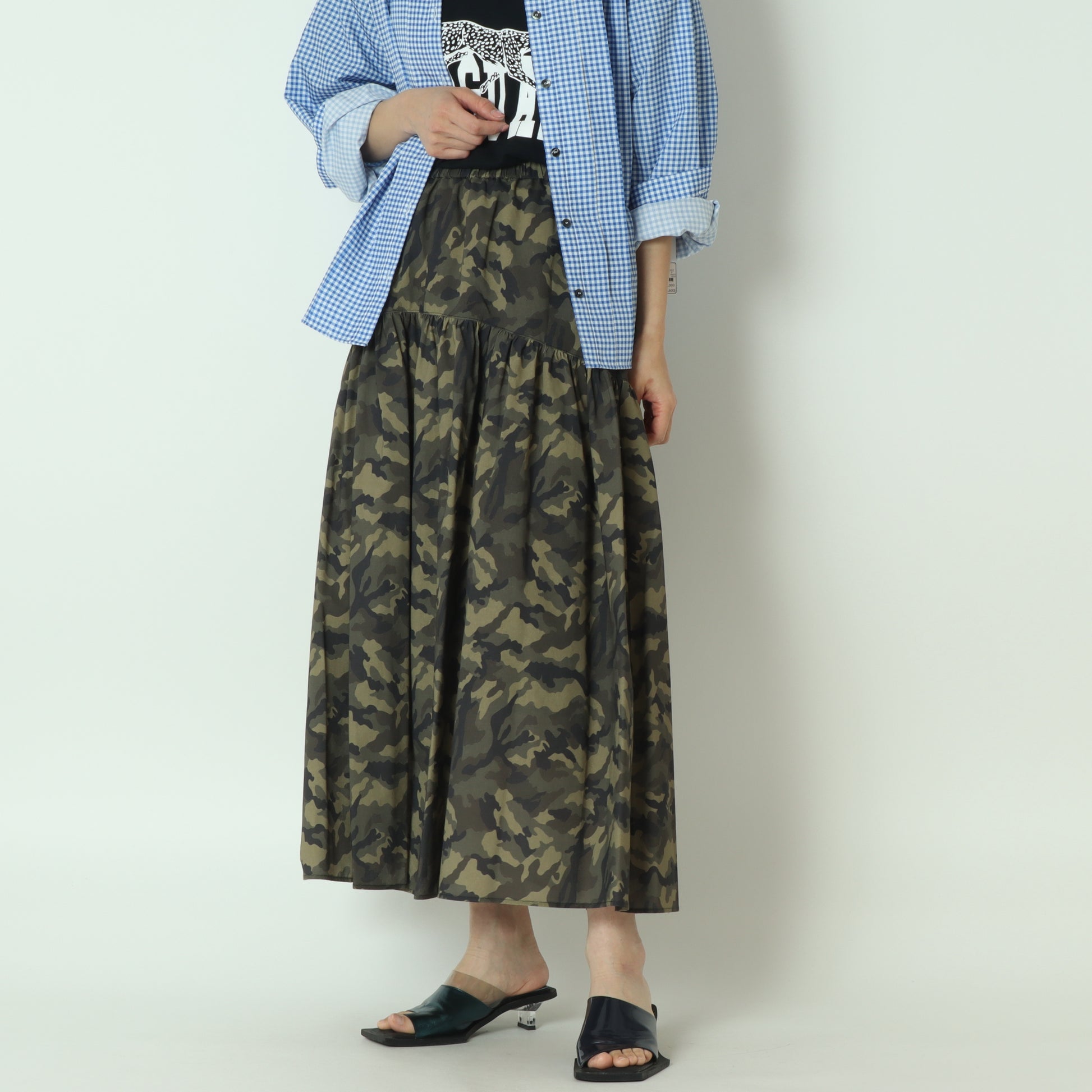 大人カジュアルな着こなしを楽しんでいただけるカモフラージュ柄のギャザースカート。