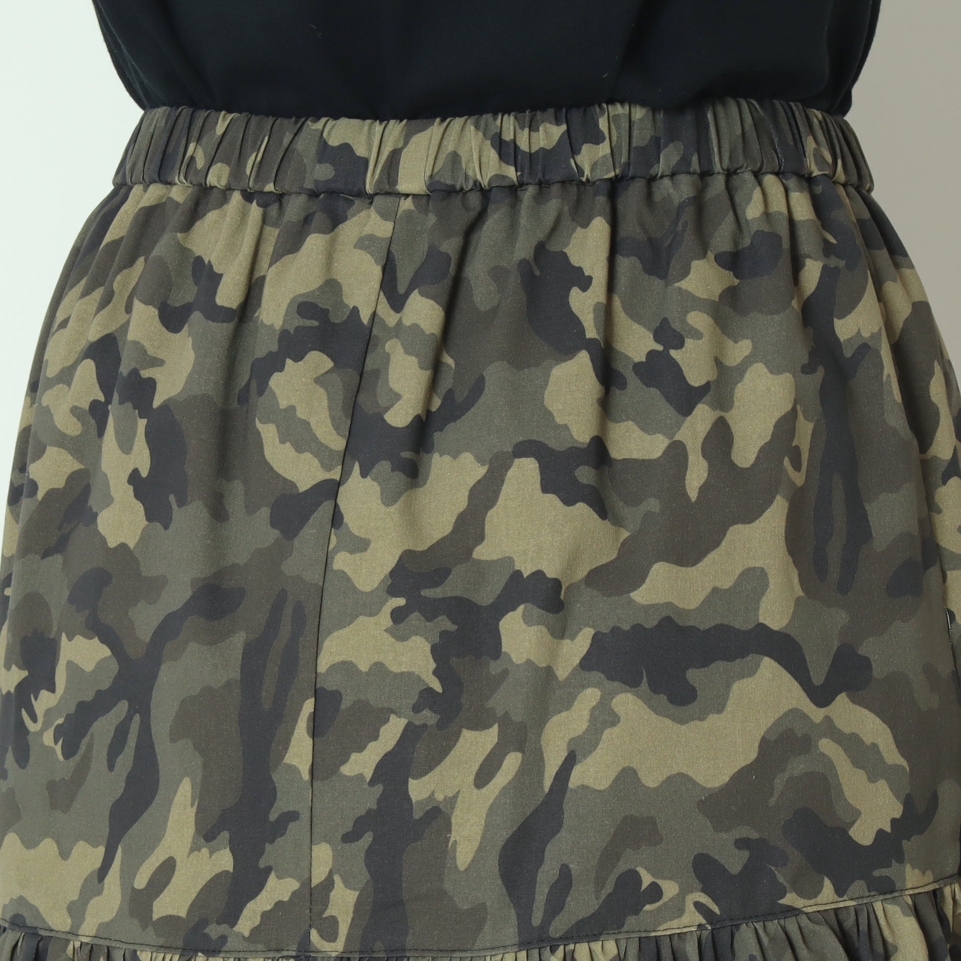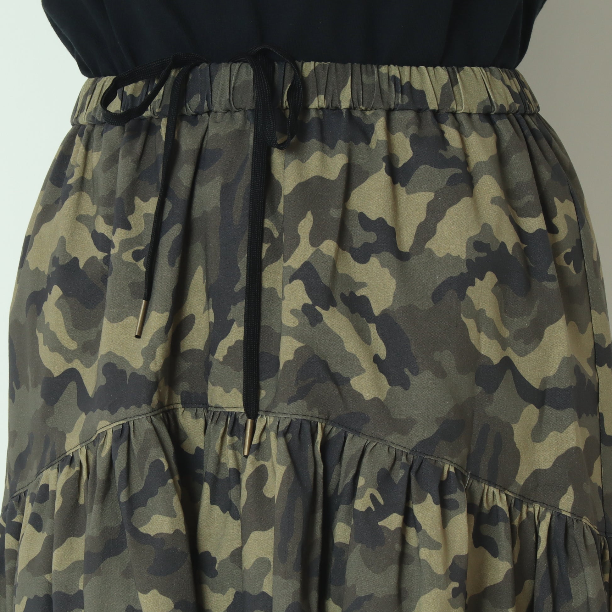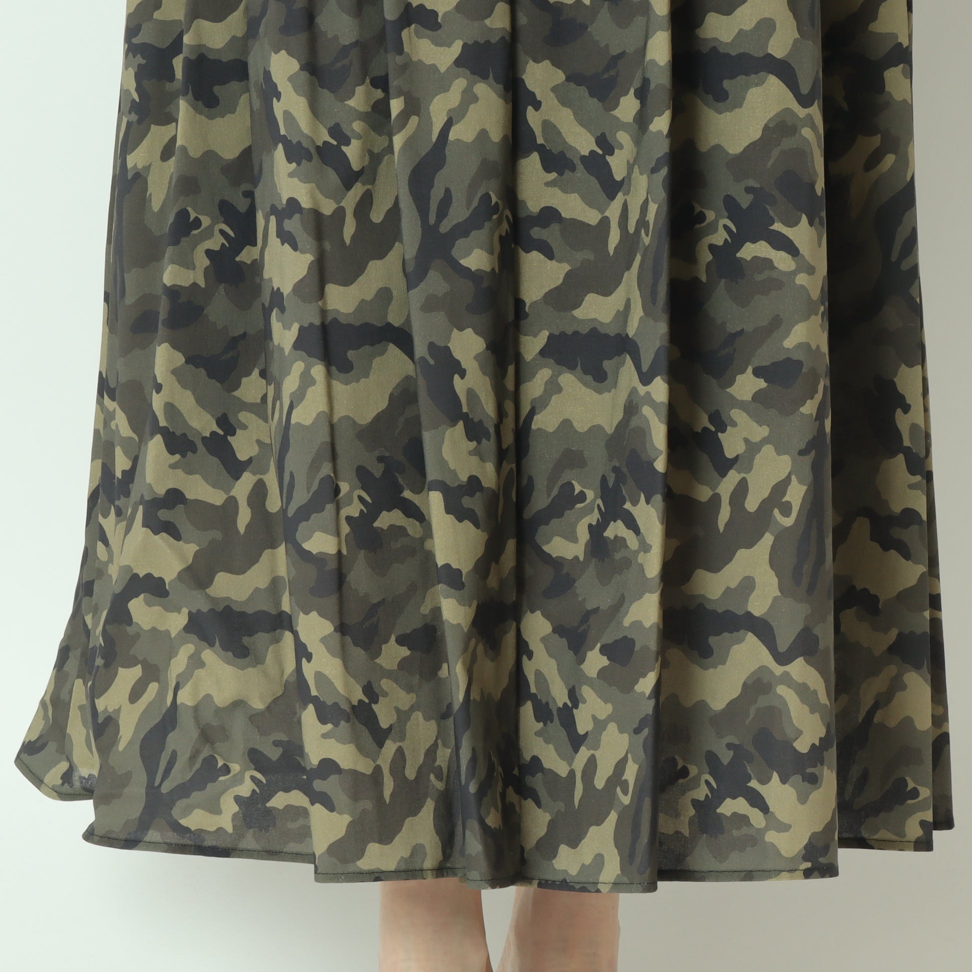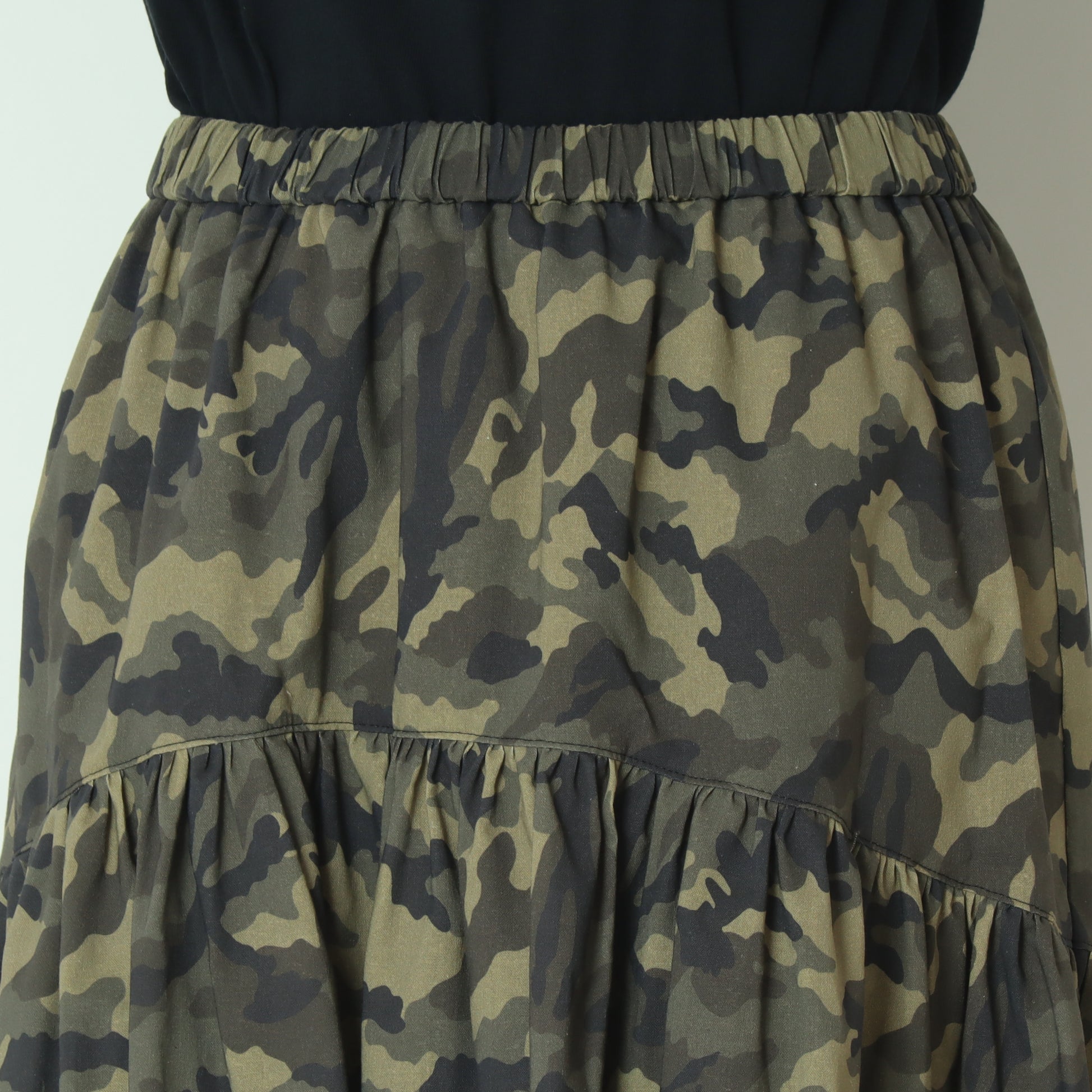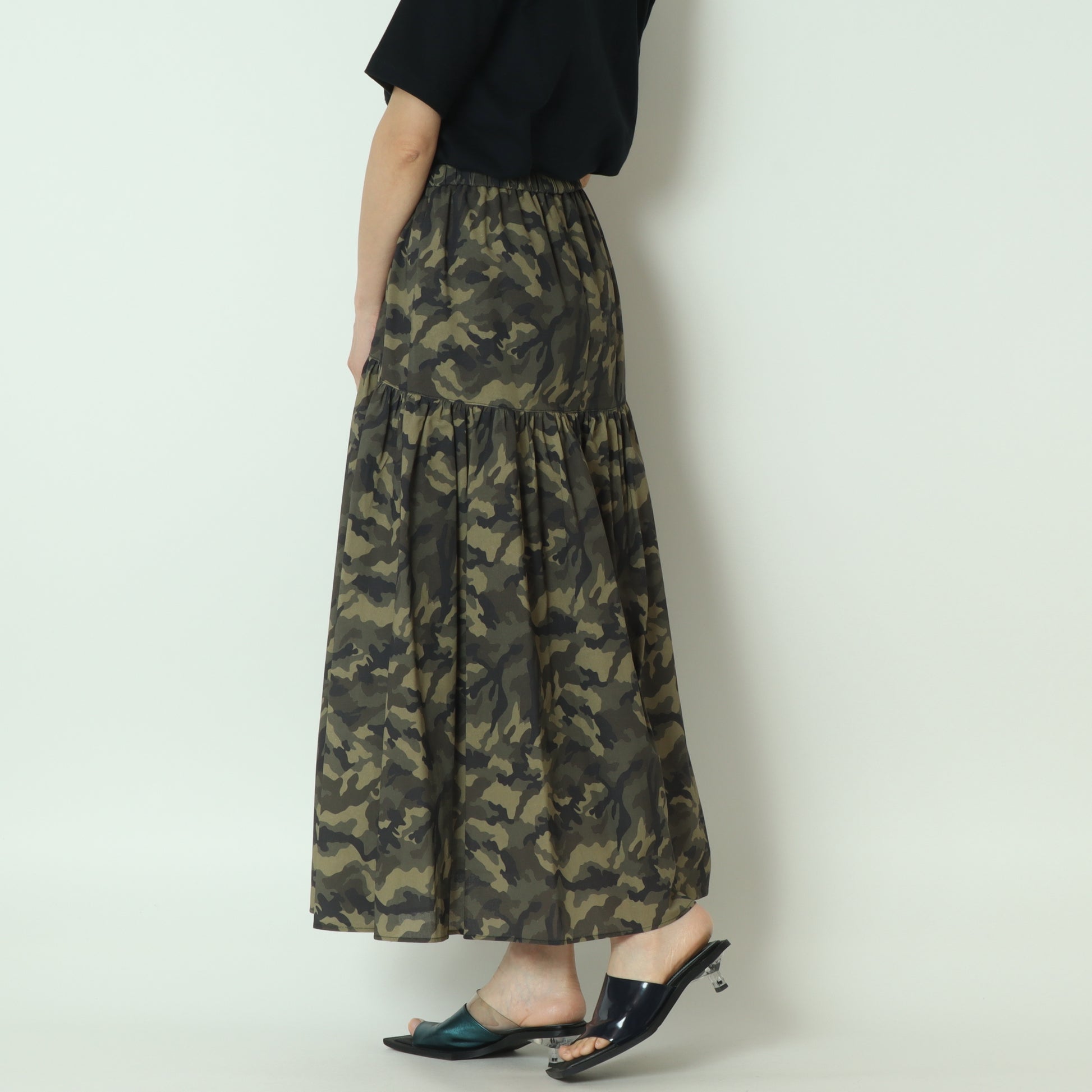大人カジュアルな着こなしを楽しんでいただけるカモフラージュ柄のギャザースカート。