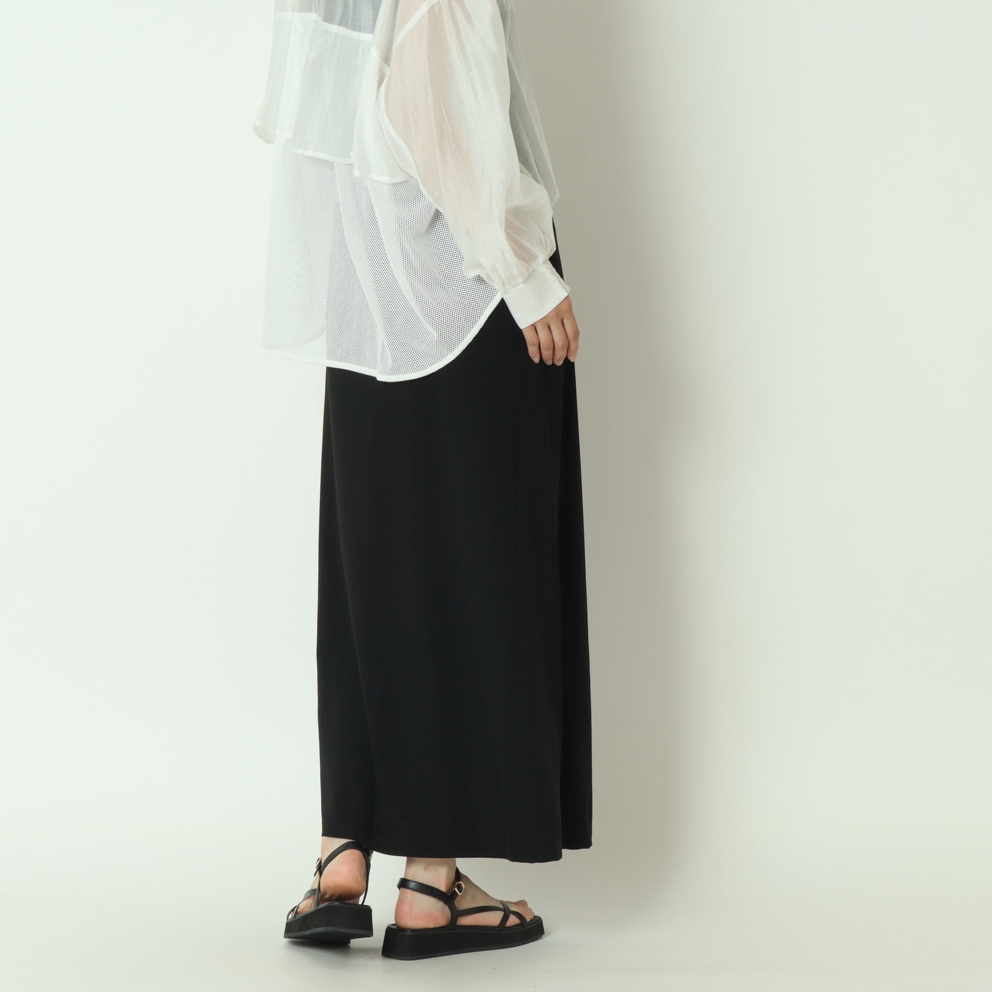 しなやかな素材感と歩いて靡く自然なシルエットのマキシ丈が上品なカジュアルさに。