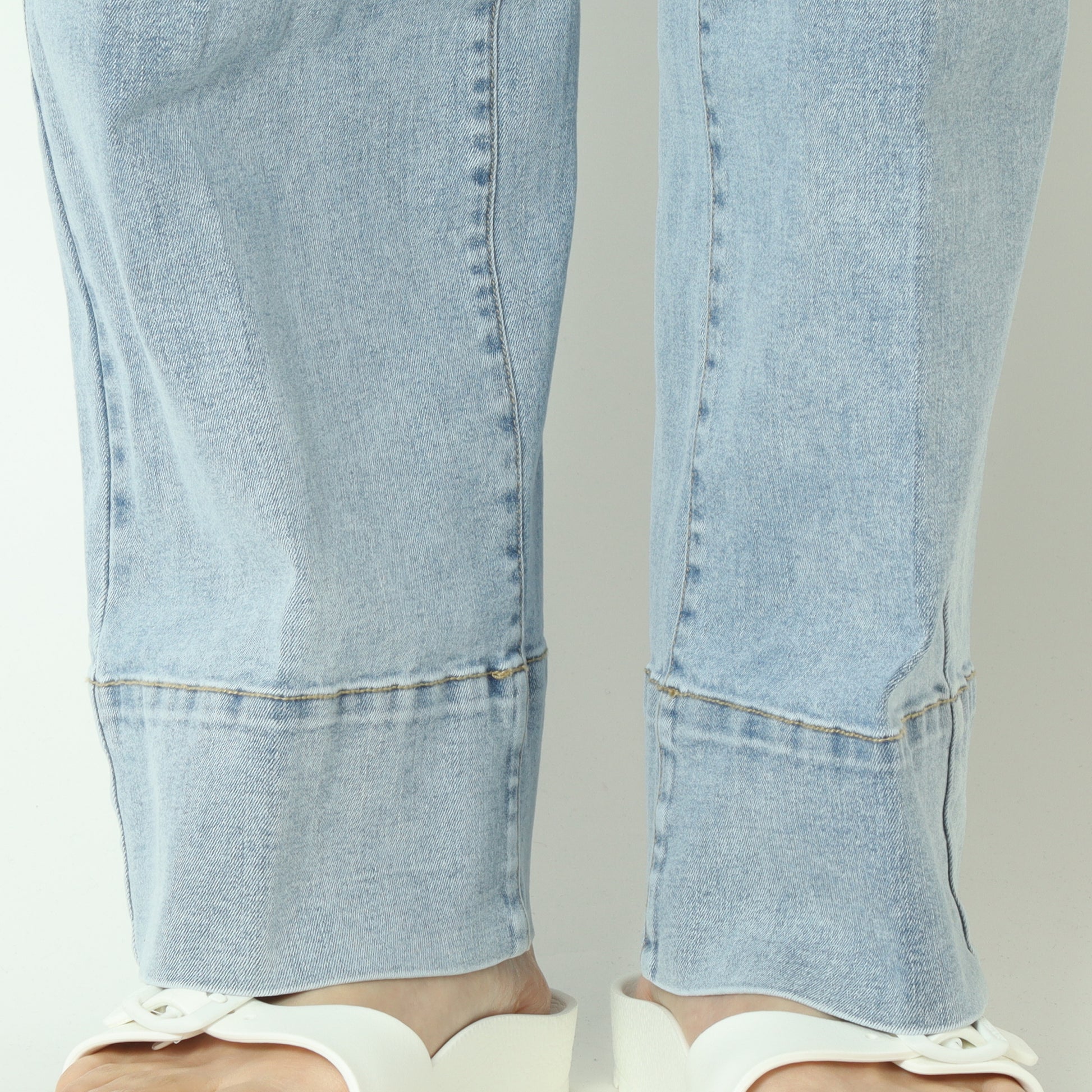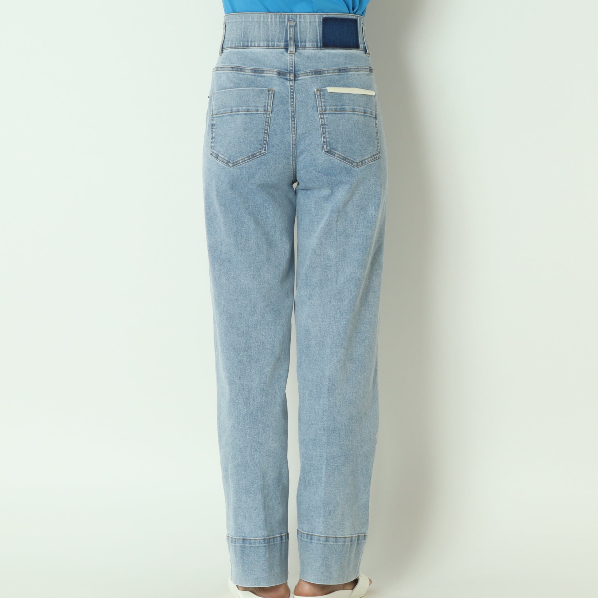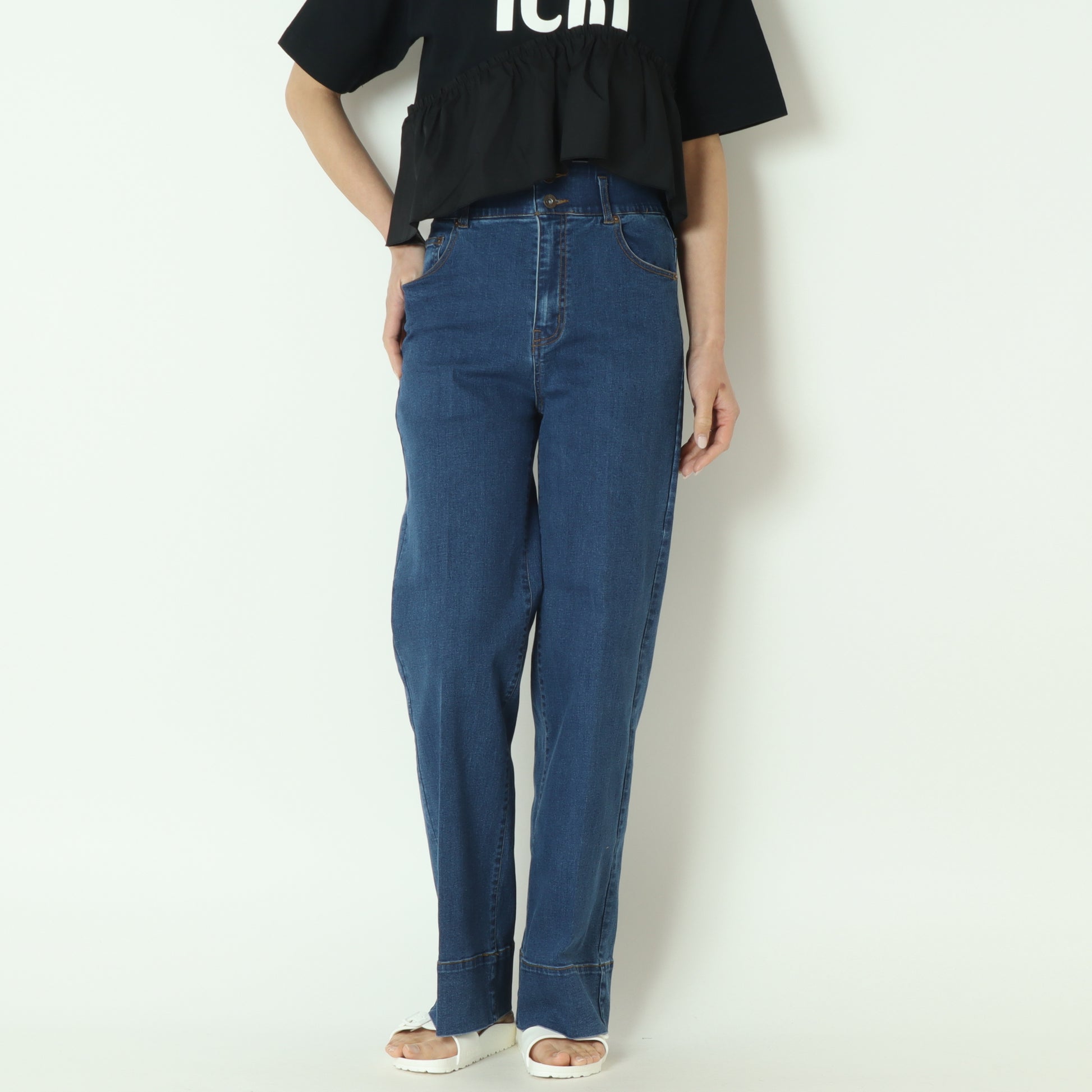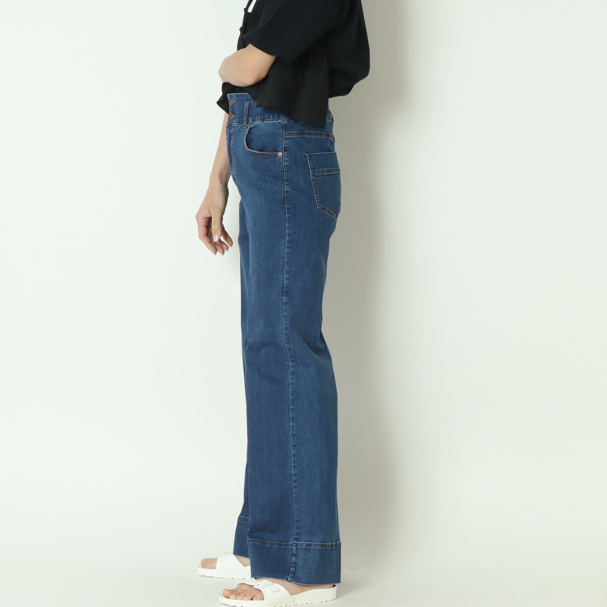 股上が深く、ウエスト幅も広い超ハイウエスト仕様で、誰もが脚長効果を感じていただける一着。