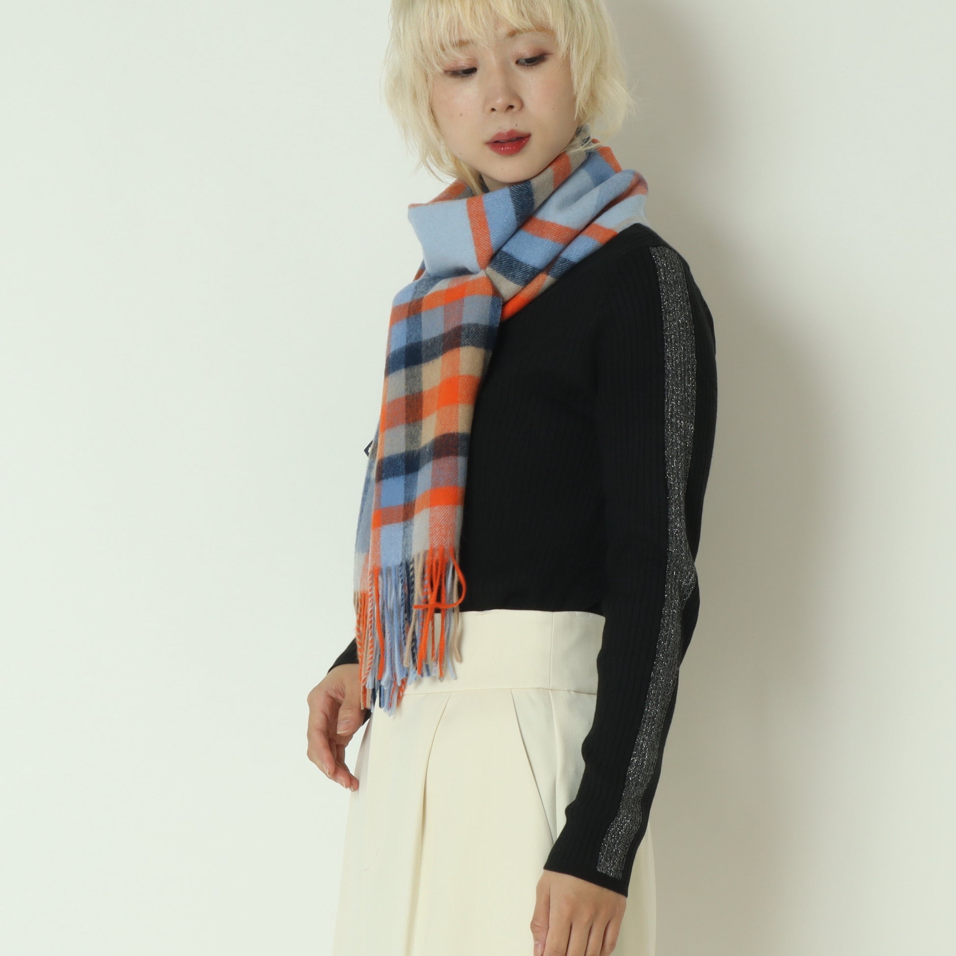 プレステージラムウールチェックノスマフラー LAMBWOOLSCARF