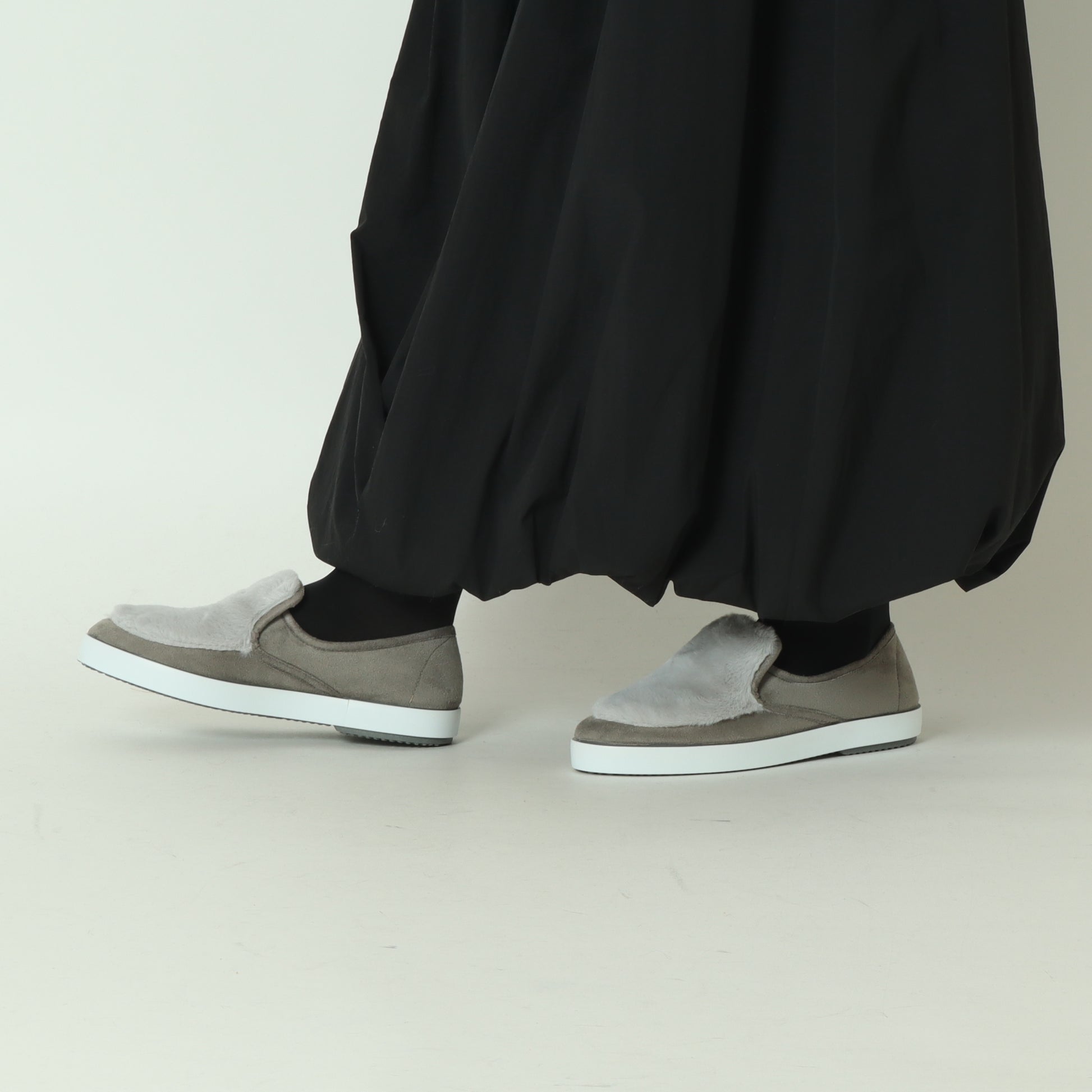 フェイクスエードのスリッポンスニーカー。