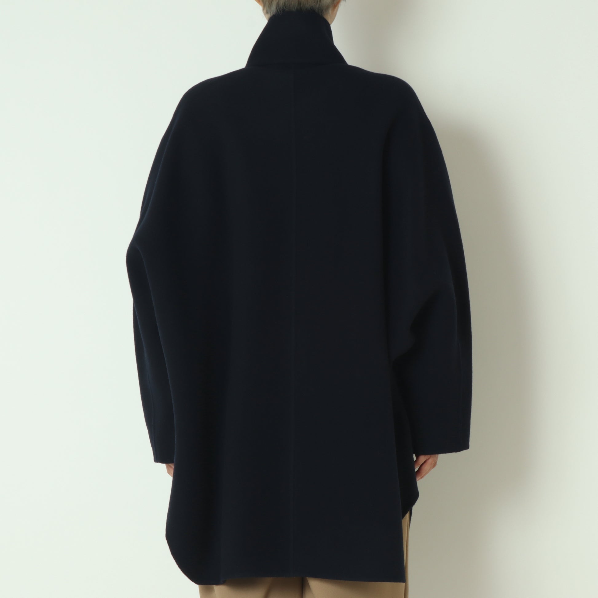 軽くて暖かいダブルフェイス素材のドルマンコート。