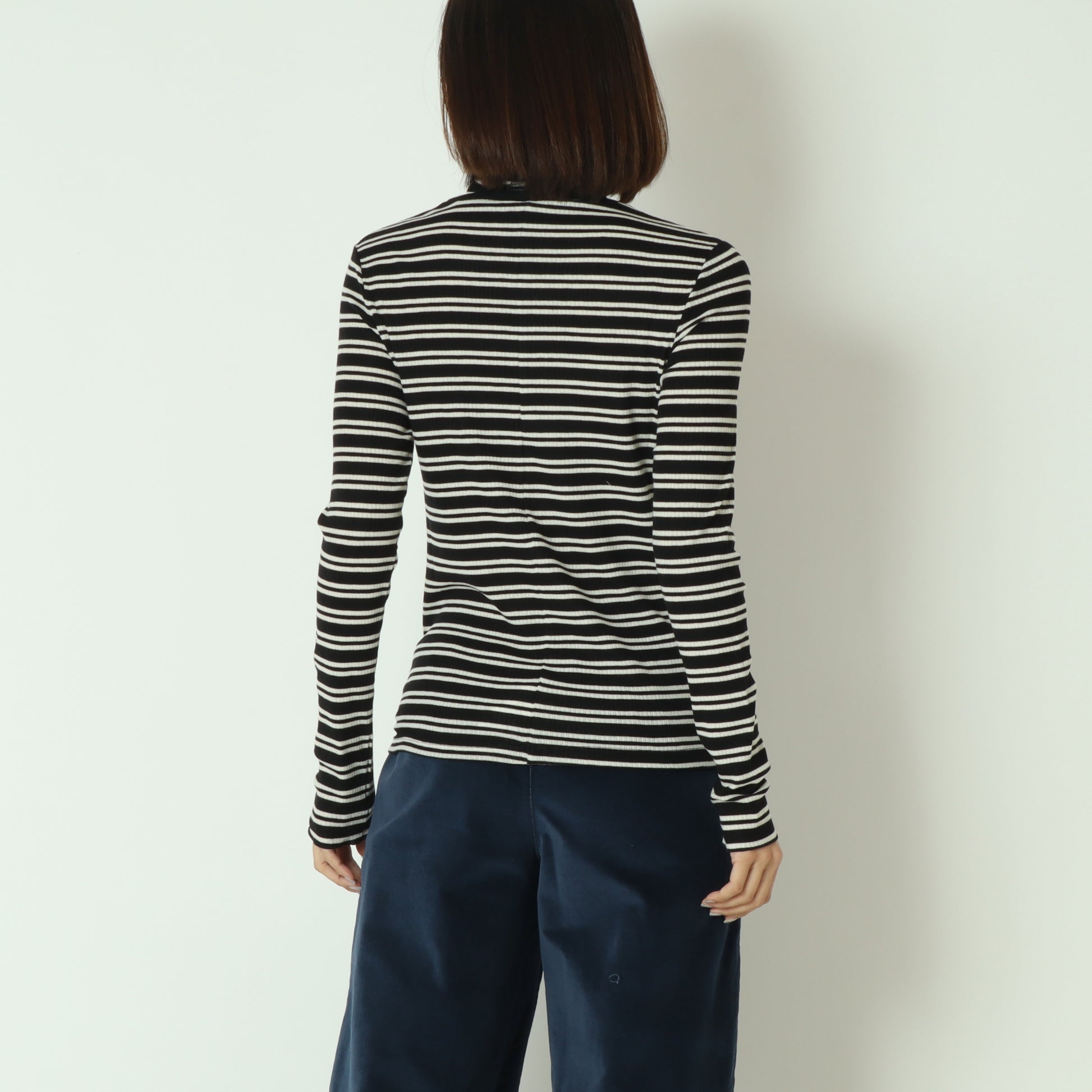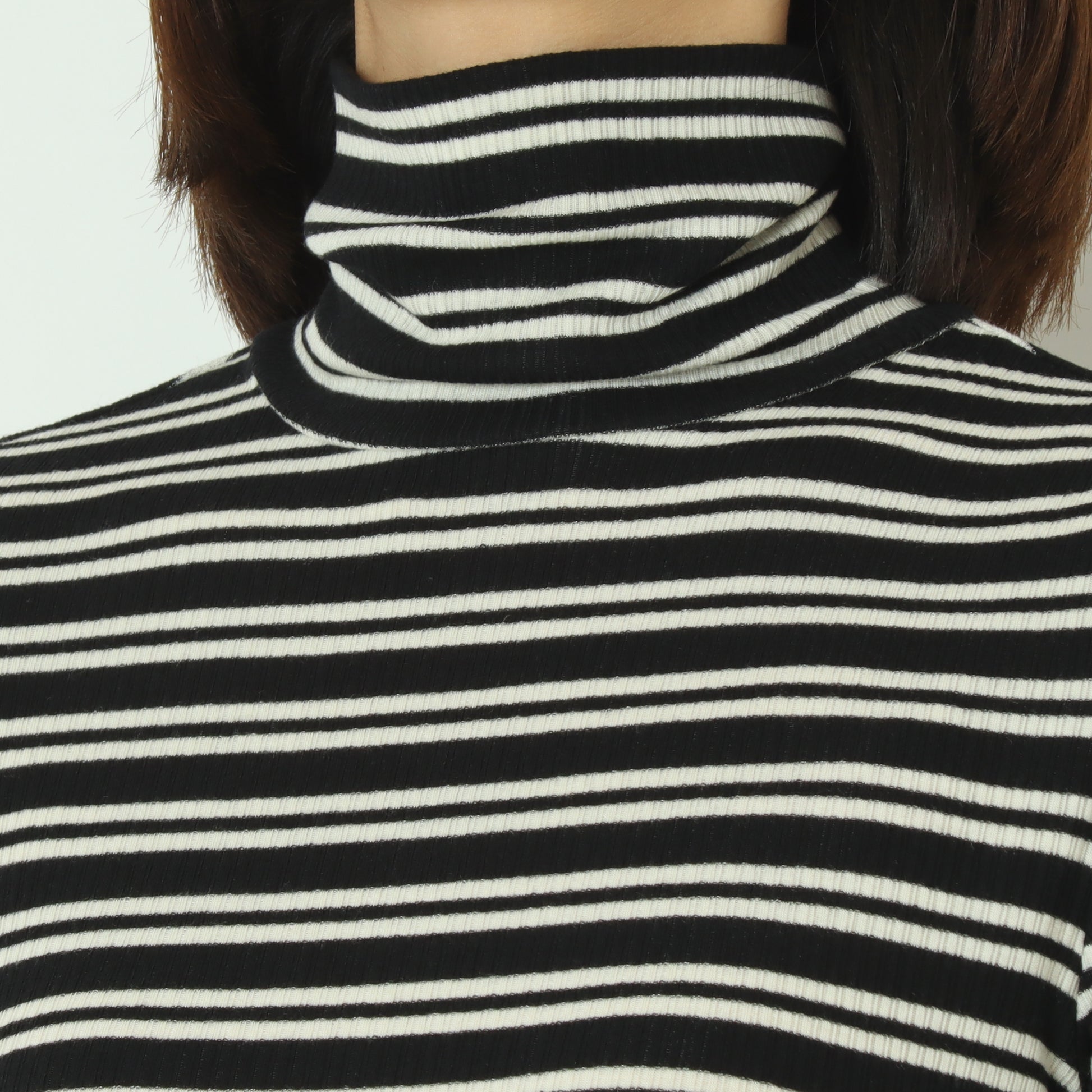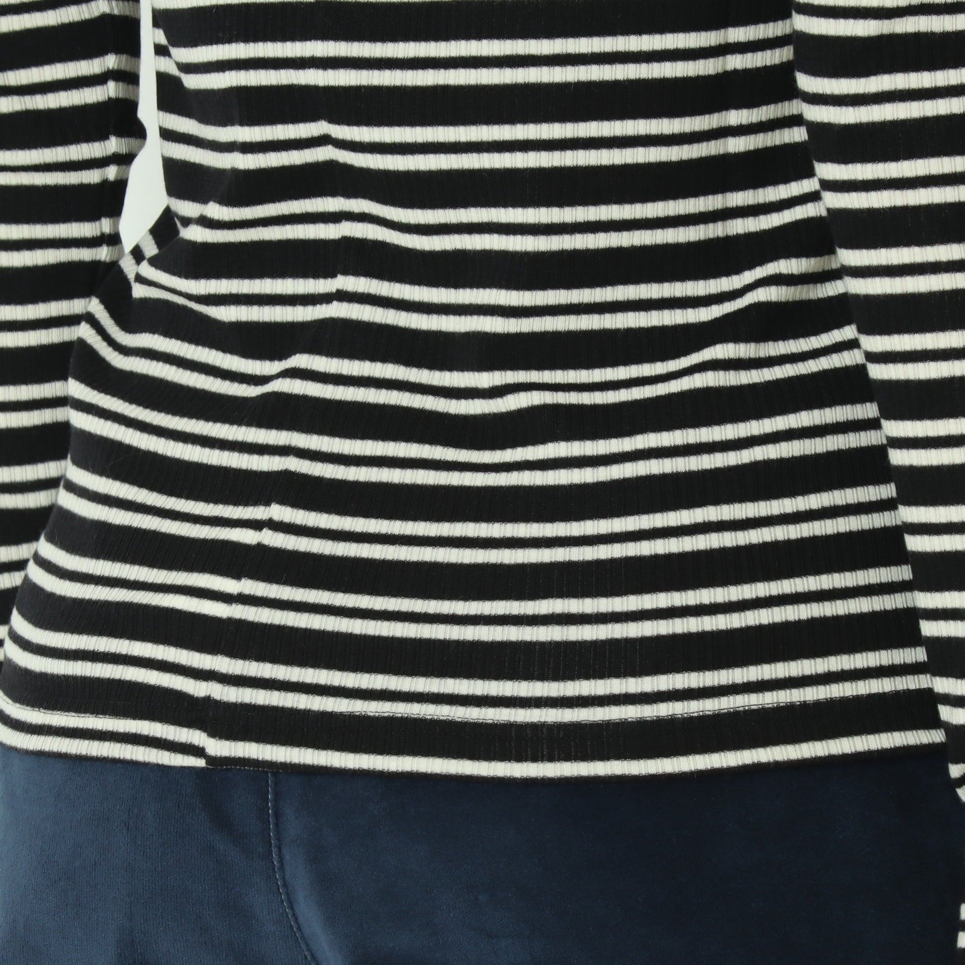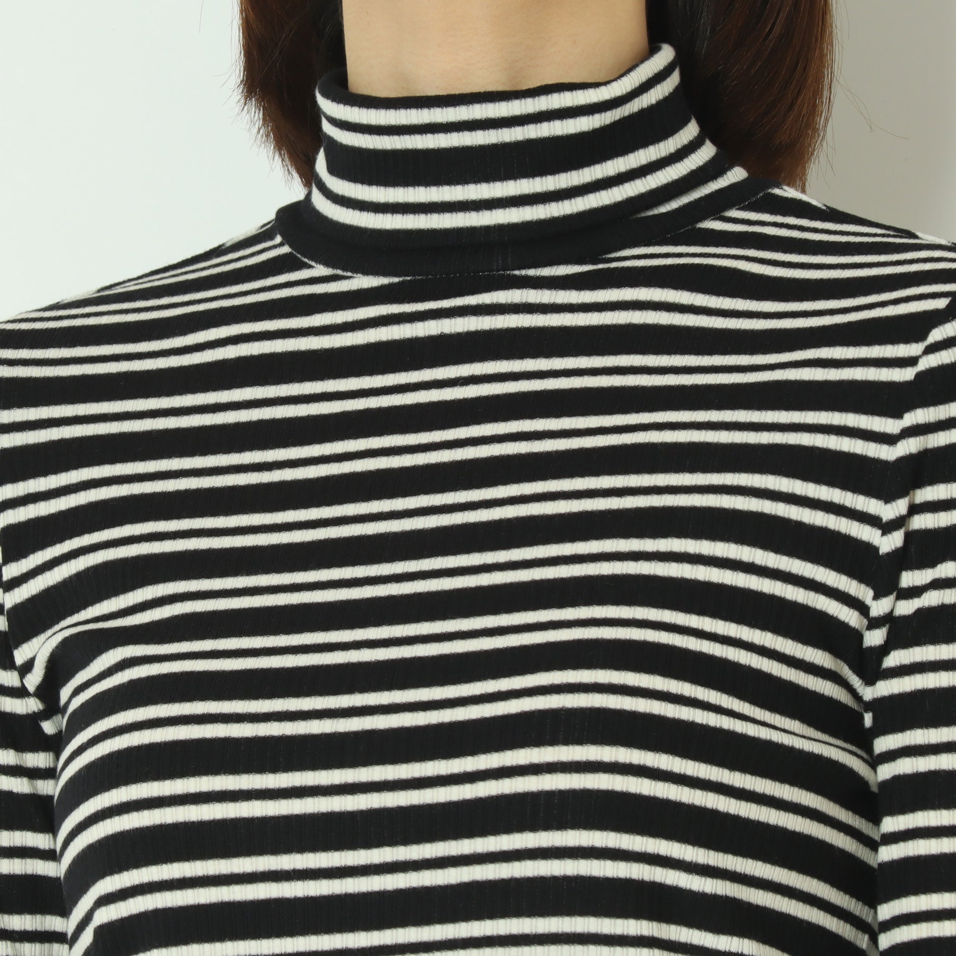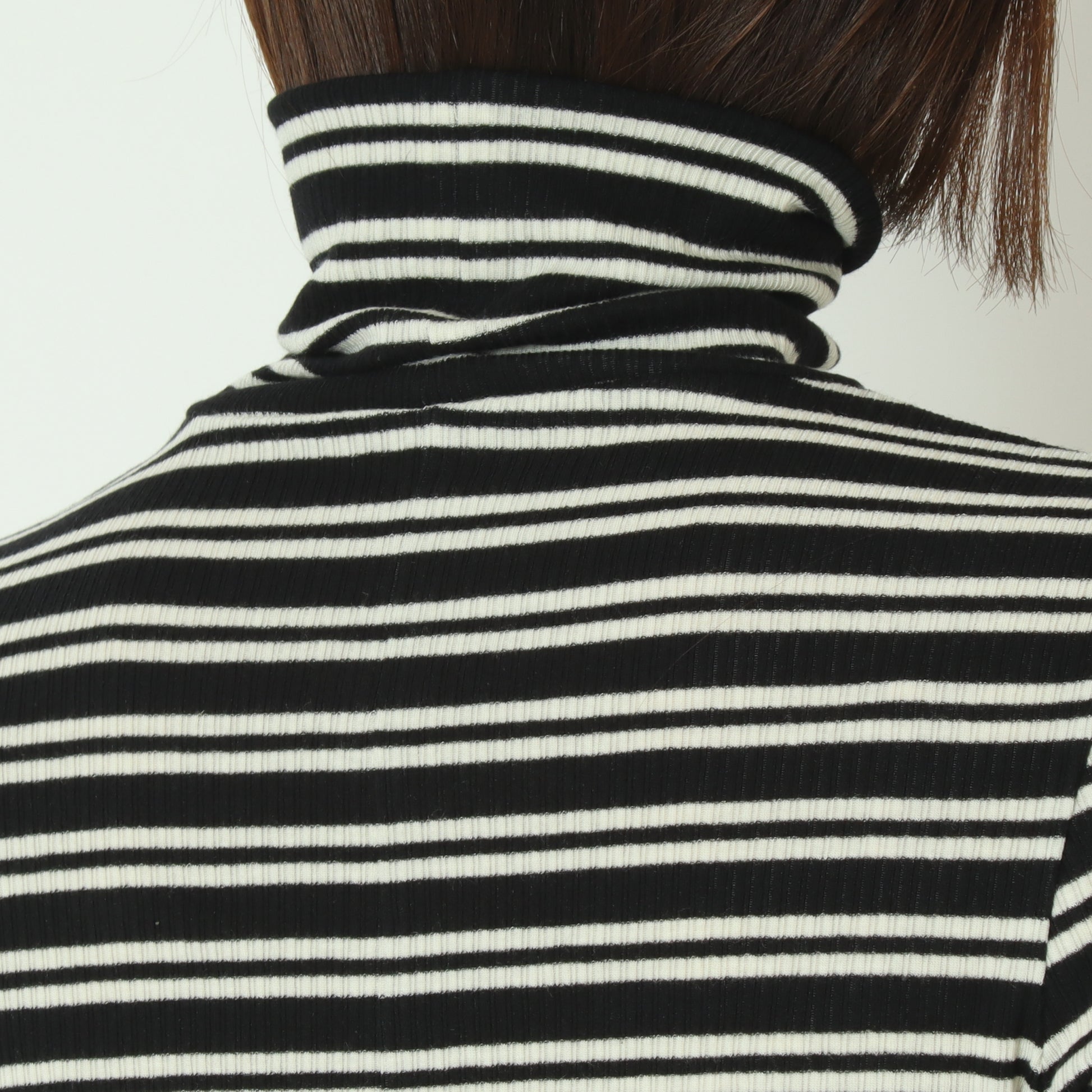 リブ編みで縦のラインを強調しつつ、伸縮性があってストレスフリーな着心地◎
