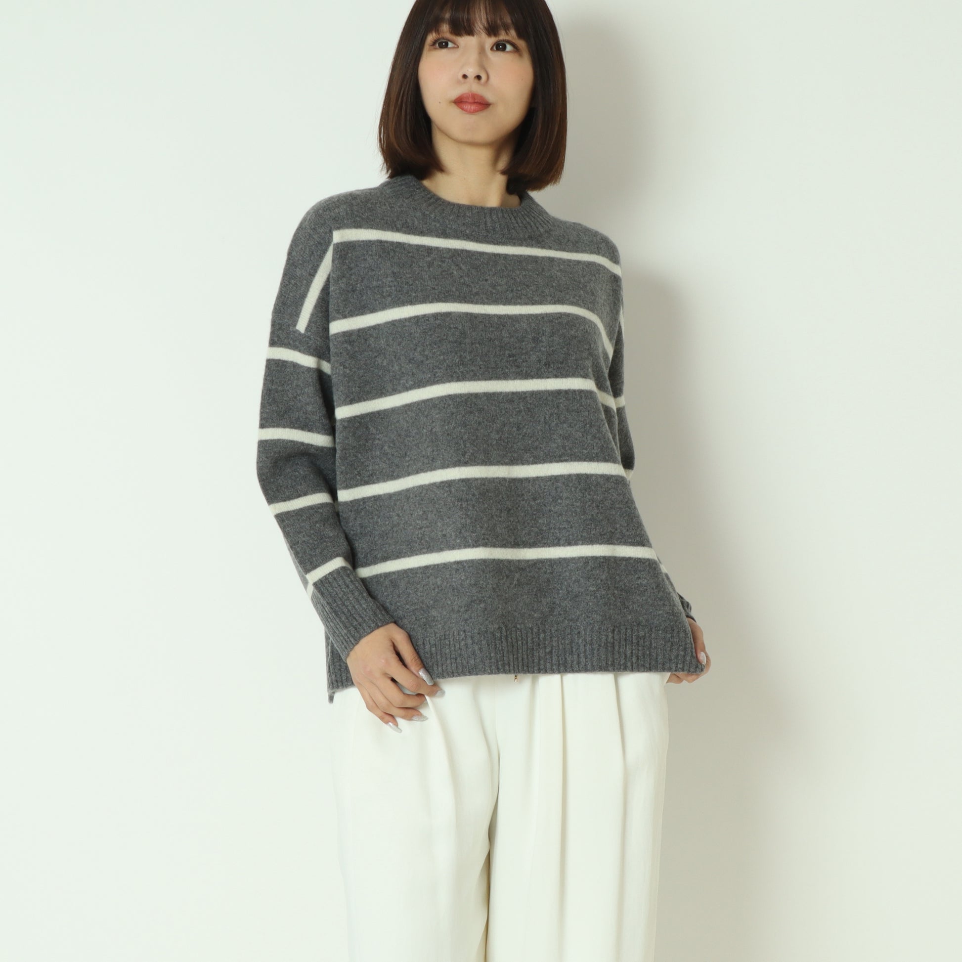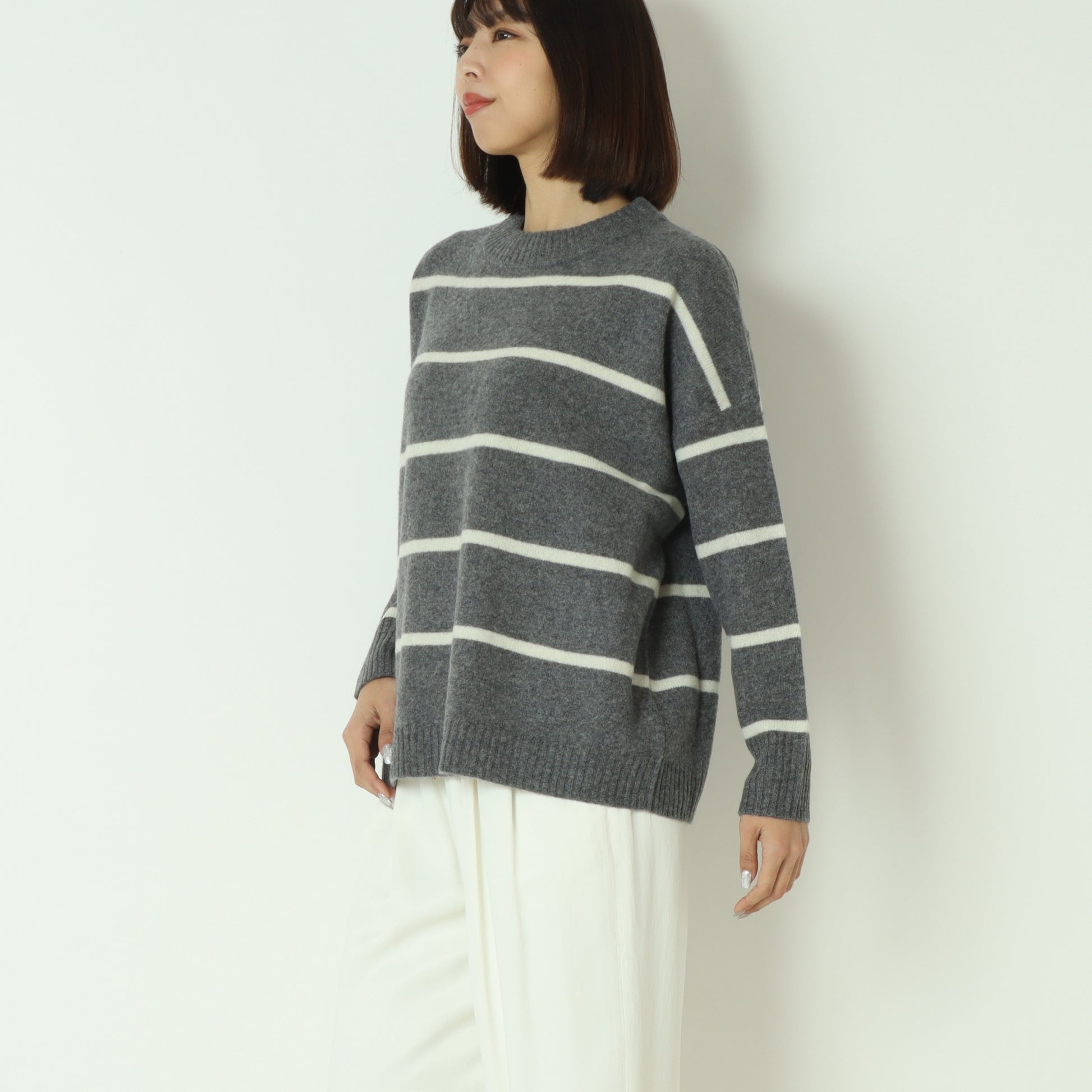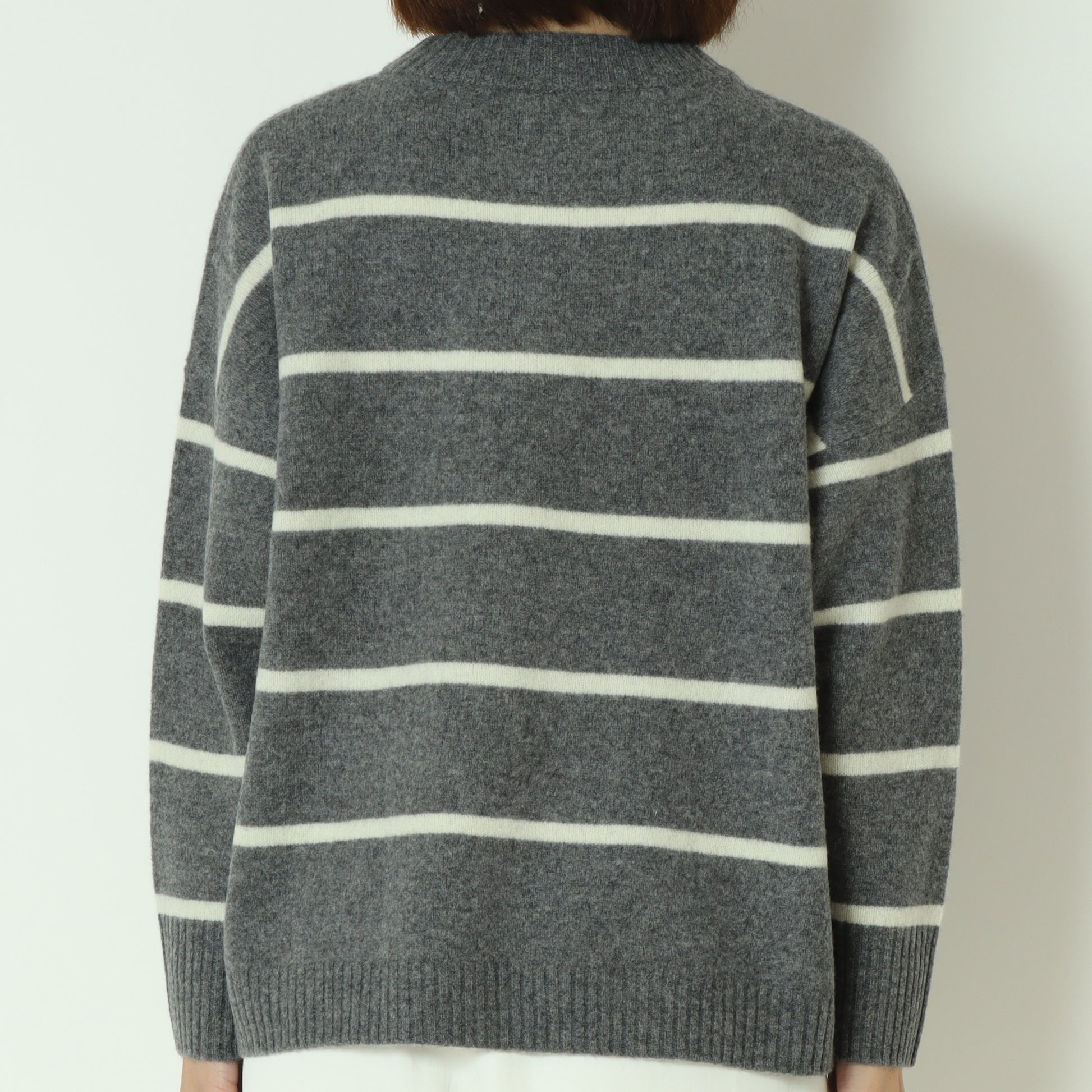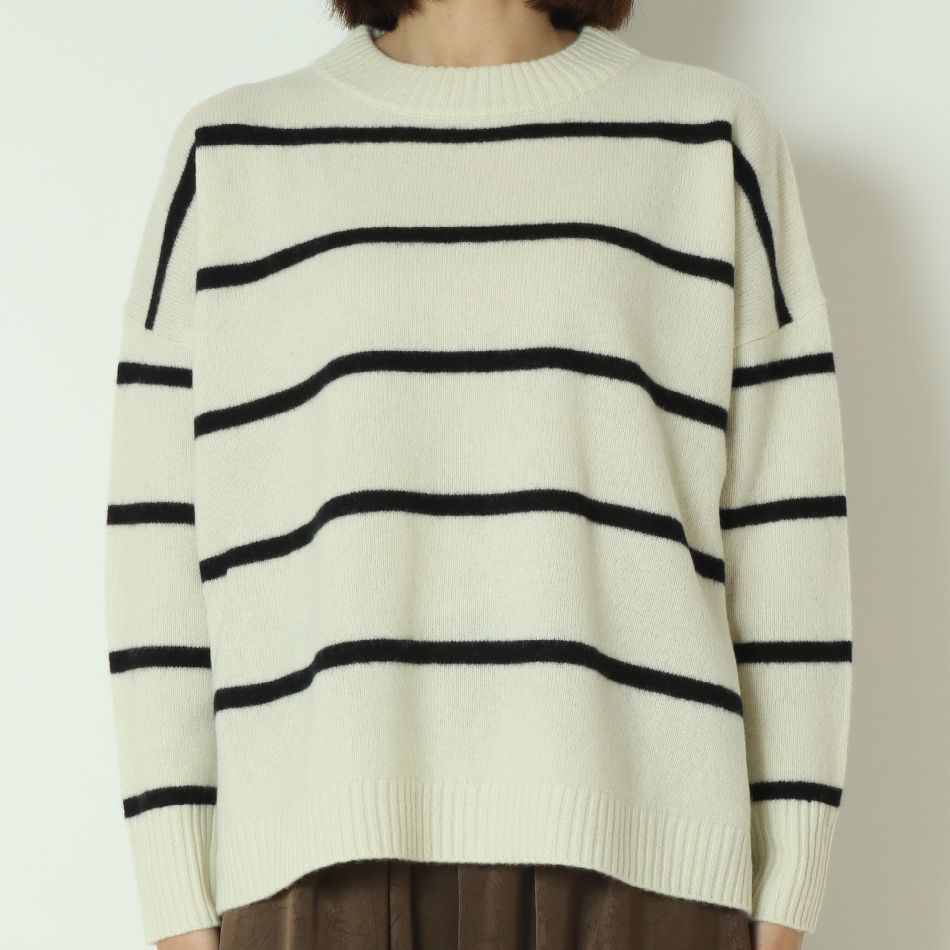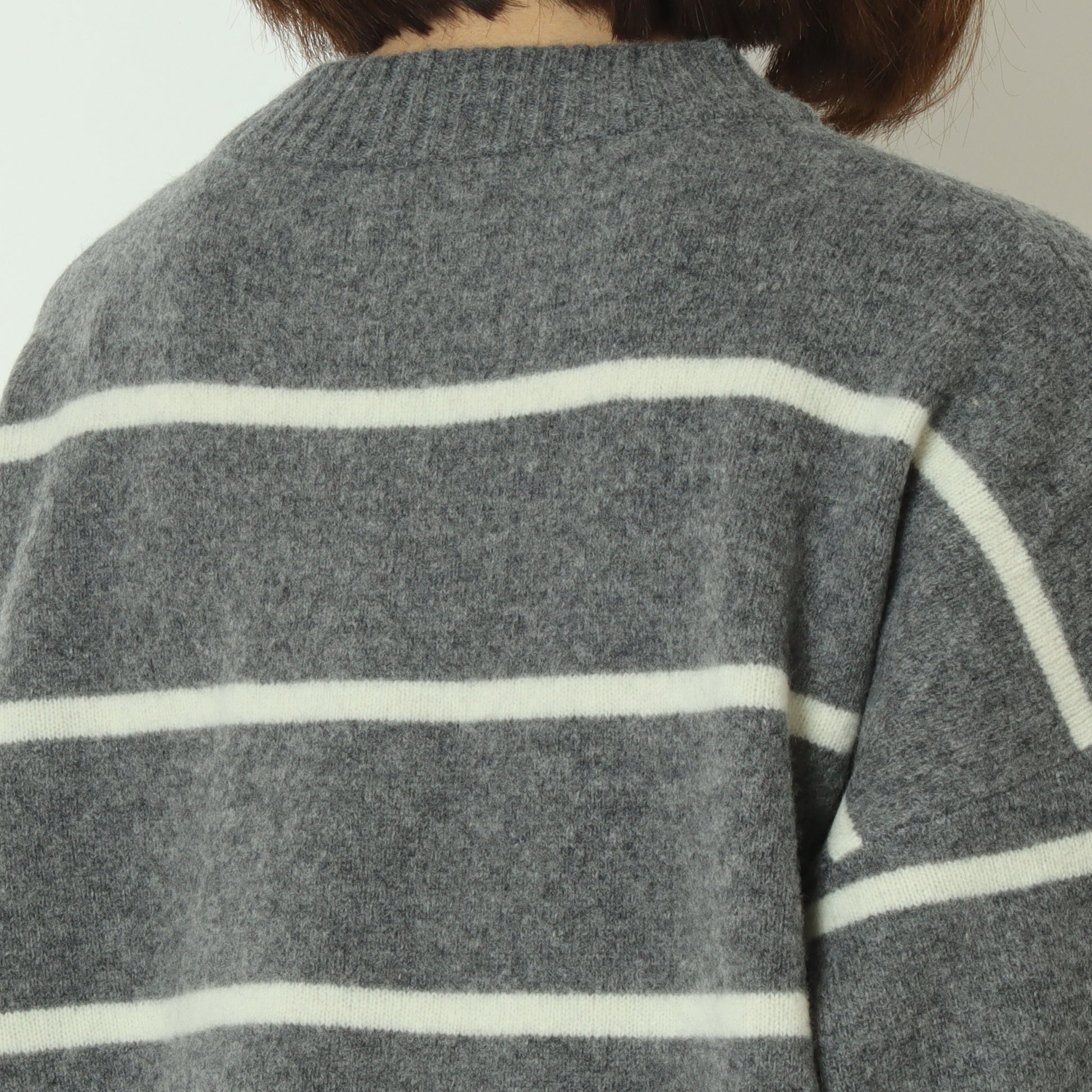 ふわっとしたウール素材のあたたかなボーダー柄ニット。