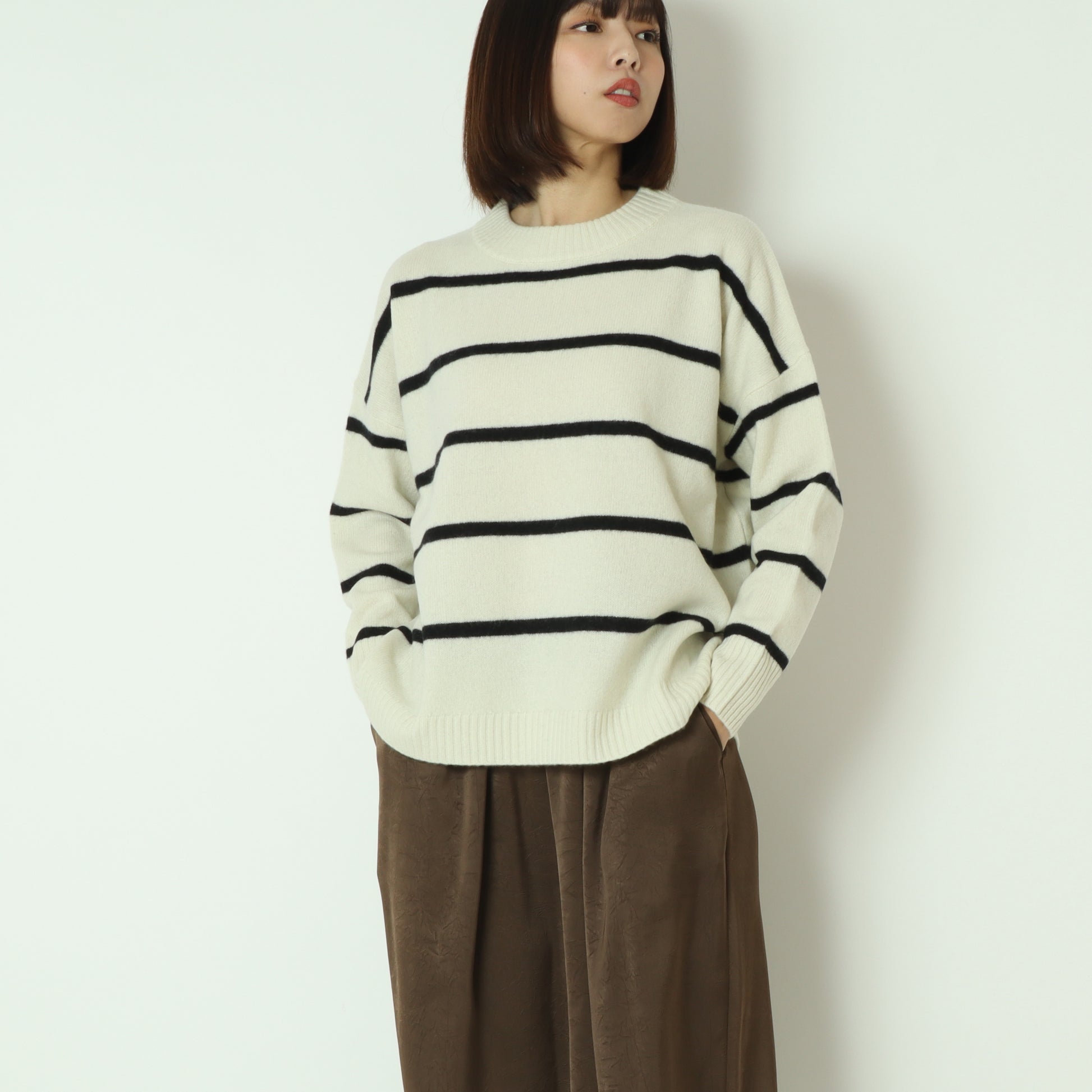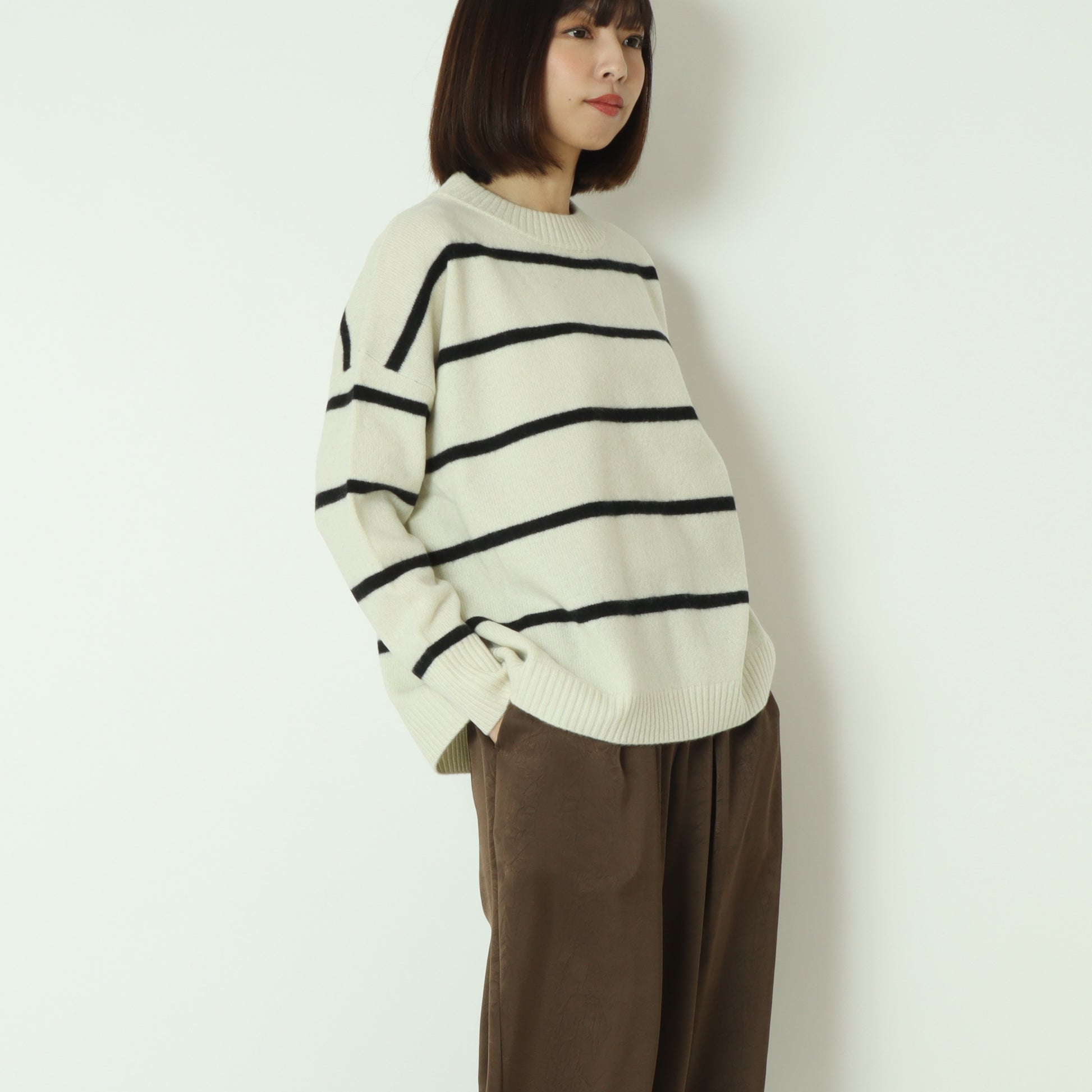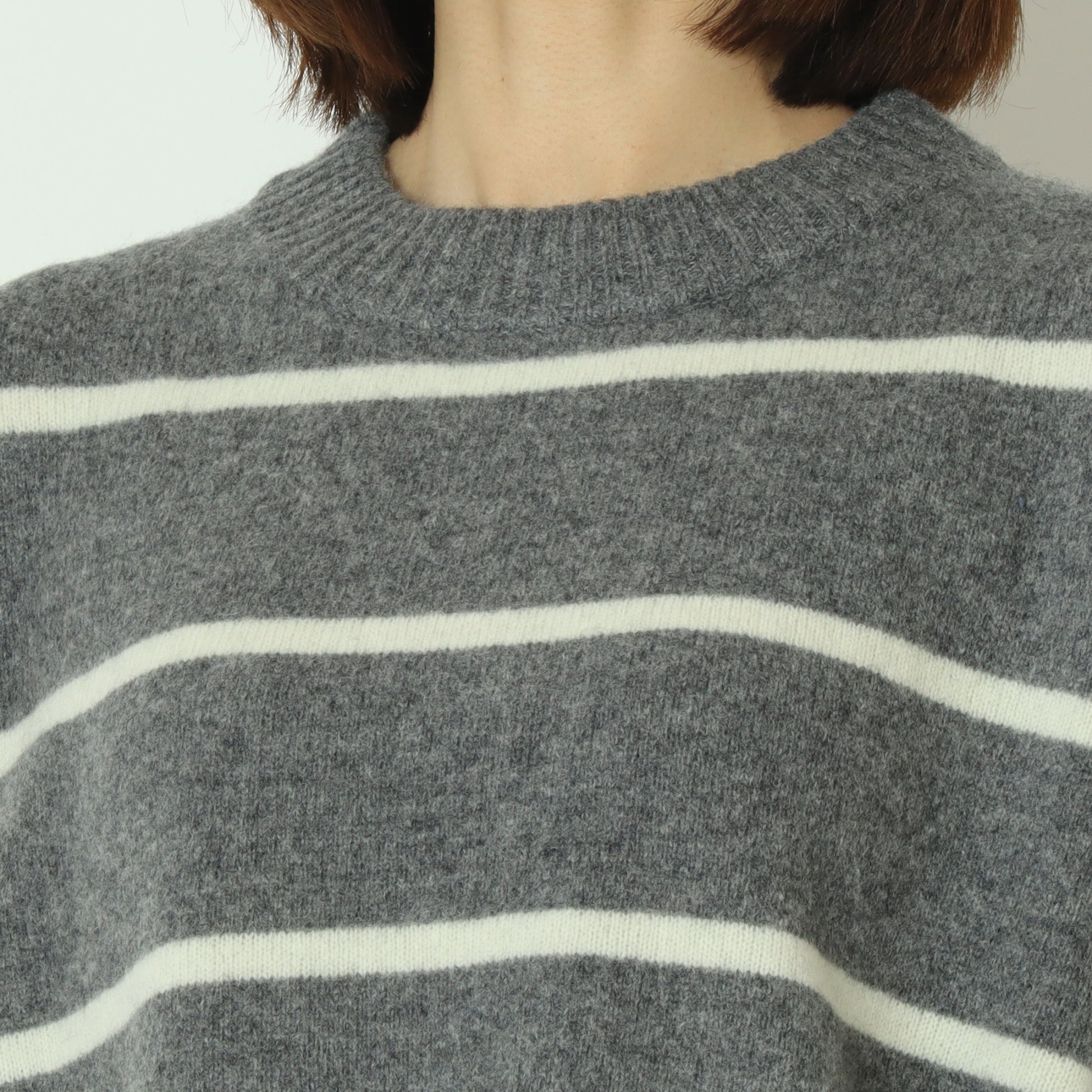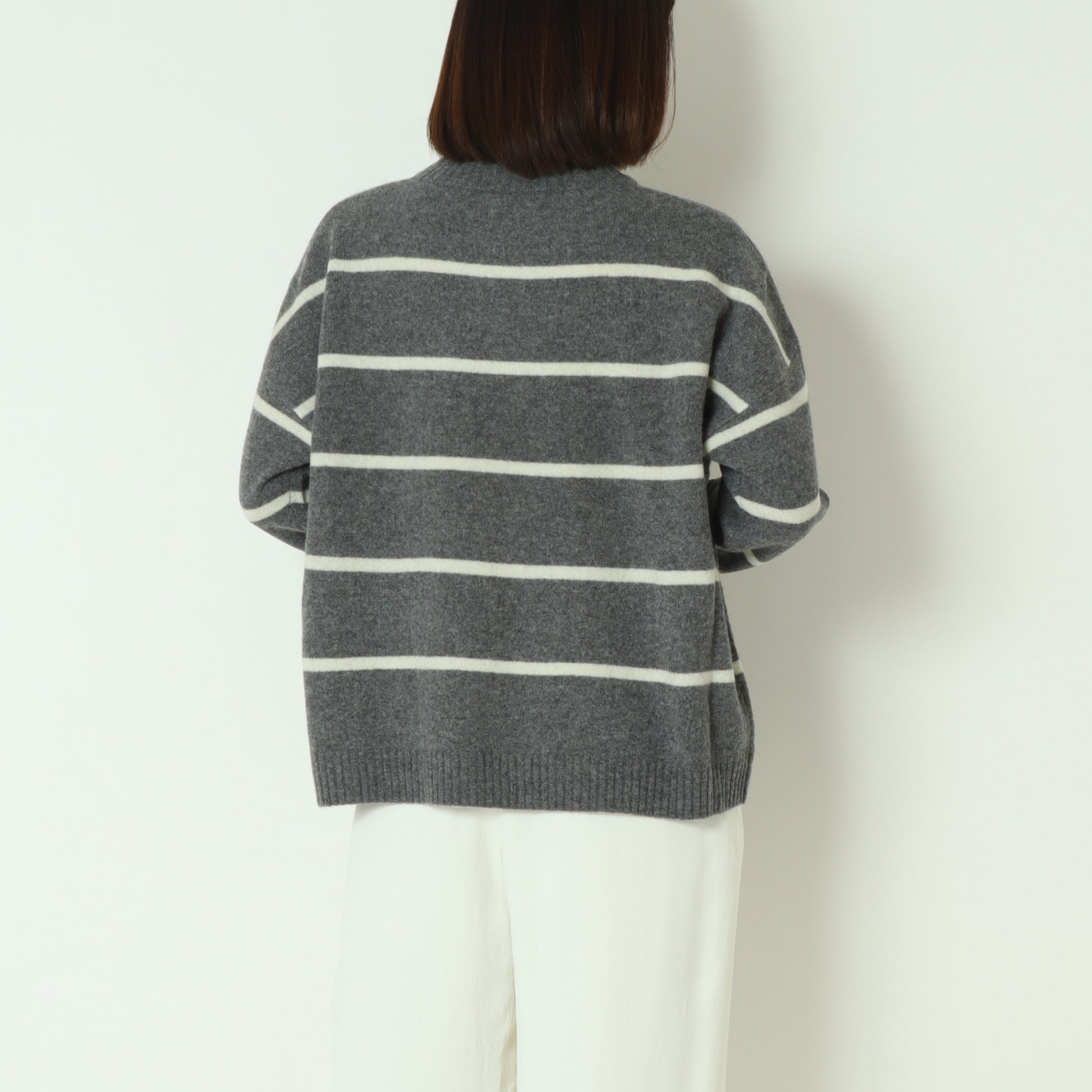 ふわっとしたウール素材のあたたかなボーダー柄ニット。