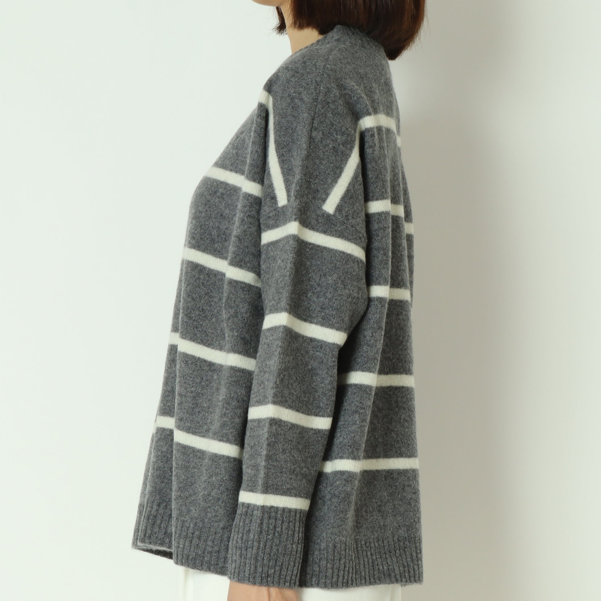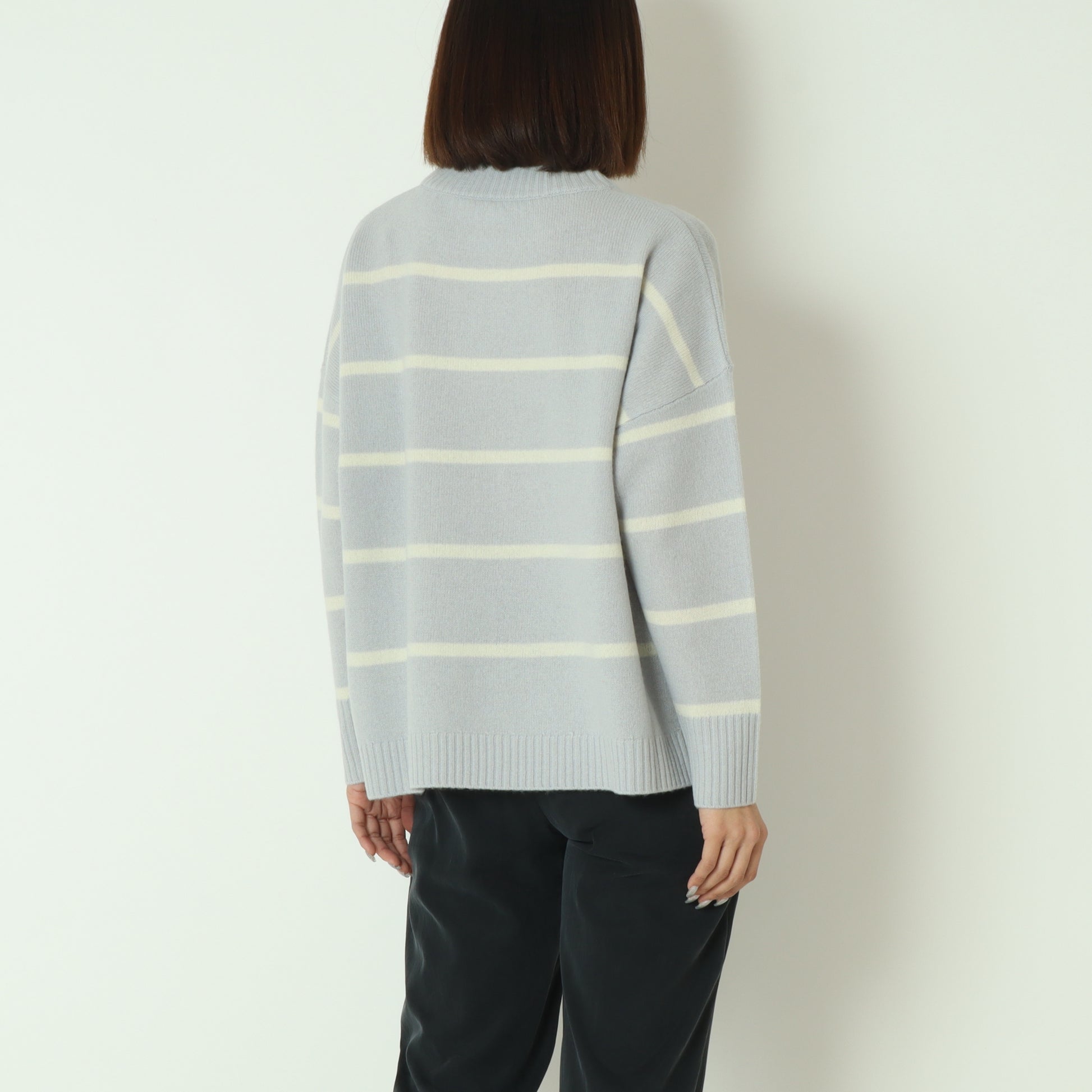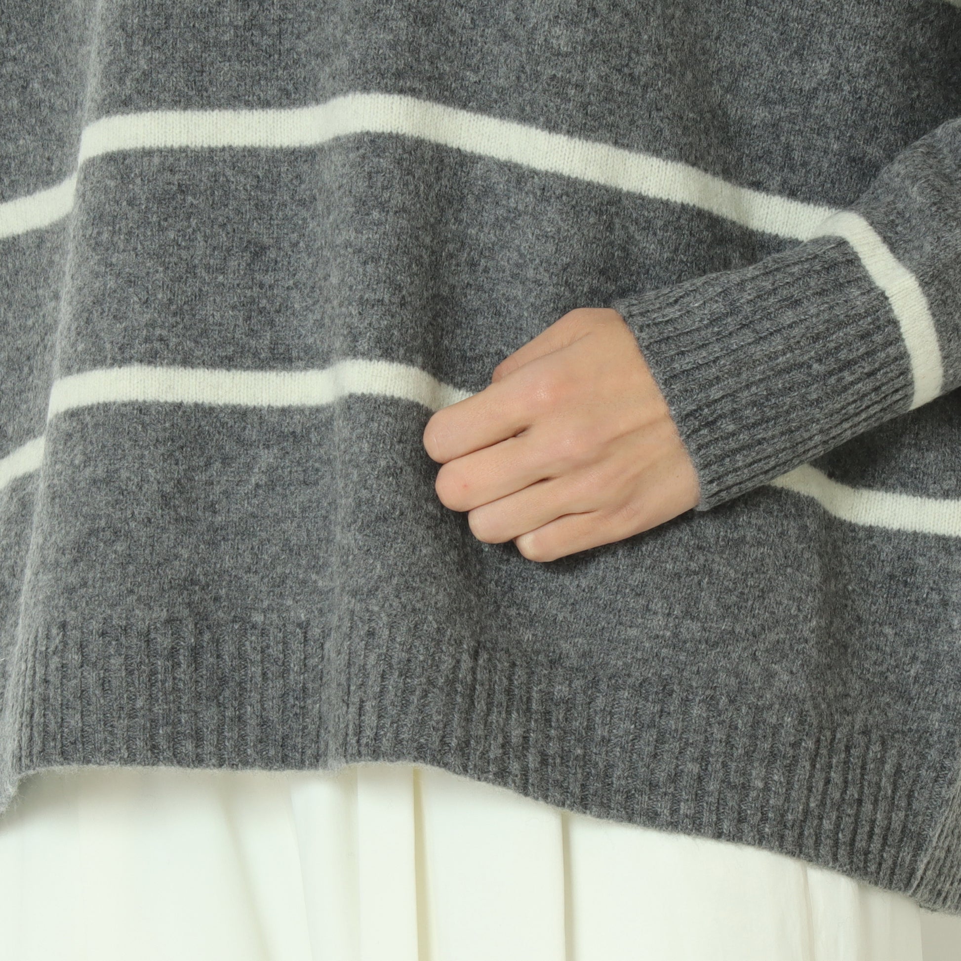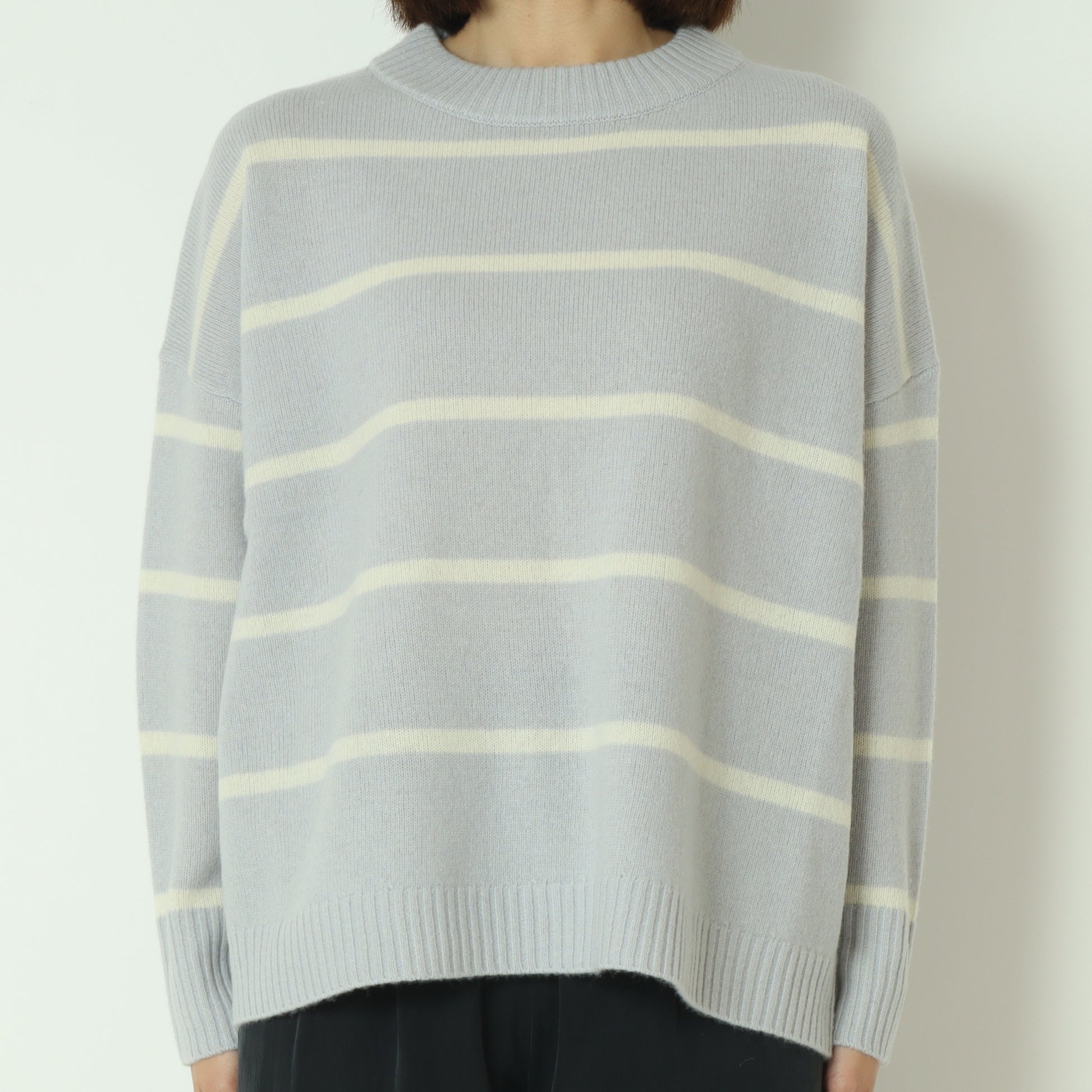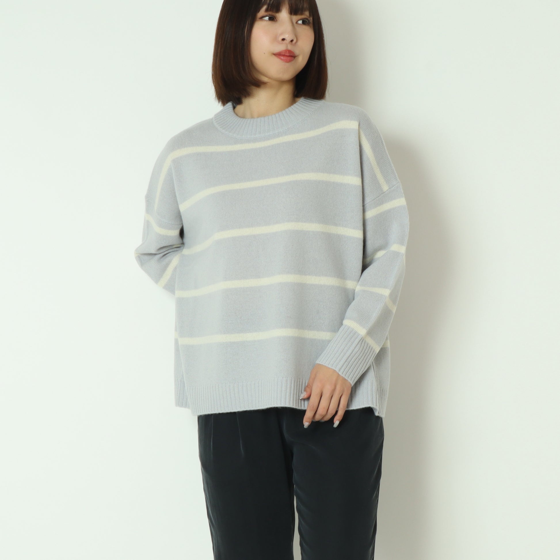 ふわっとしたウール素材のあたたかなボーダー柄ニット。
