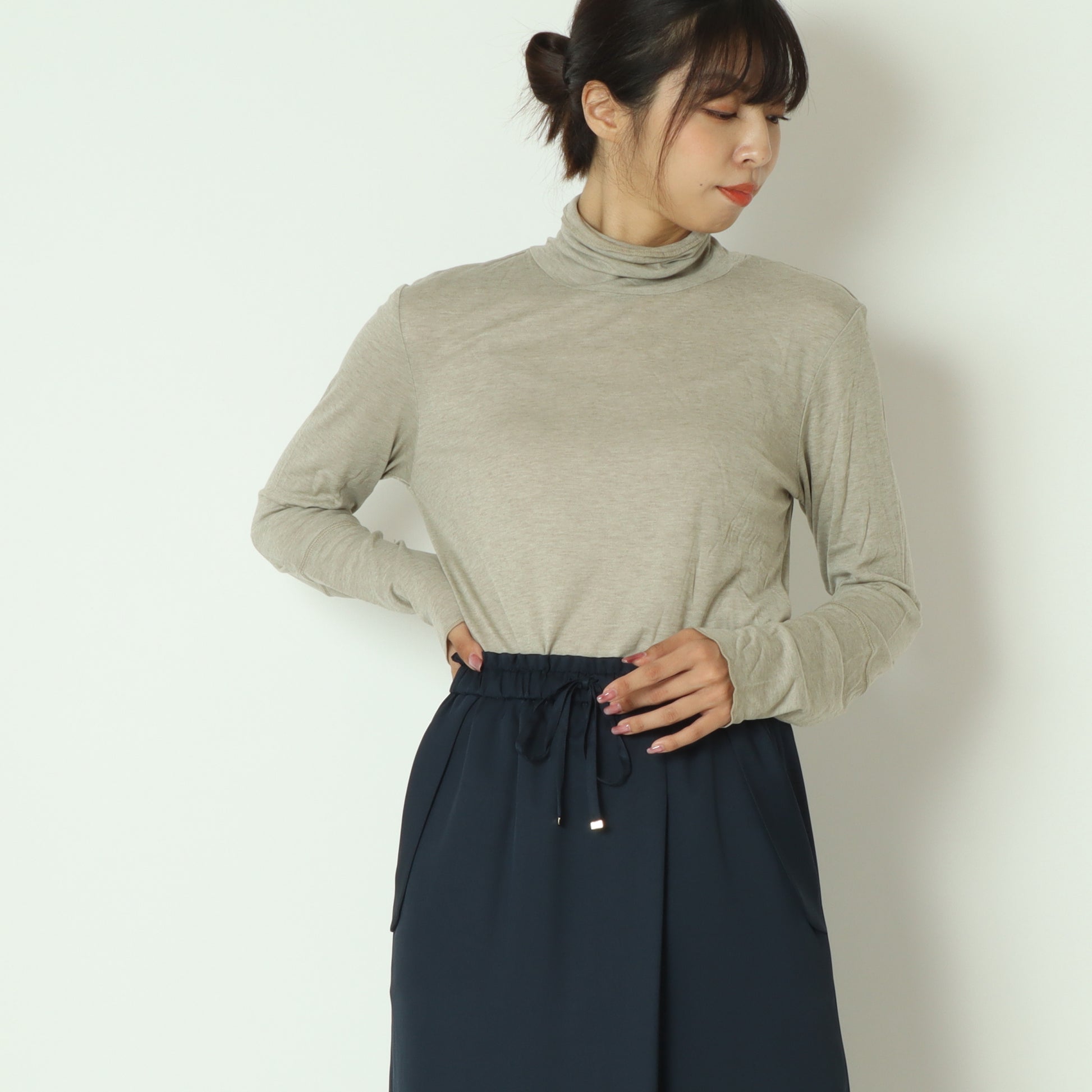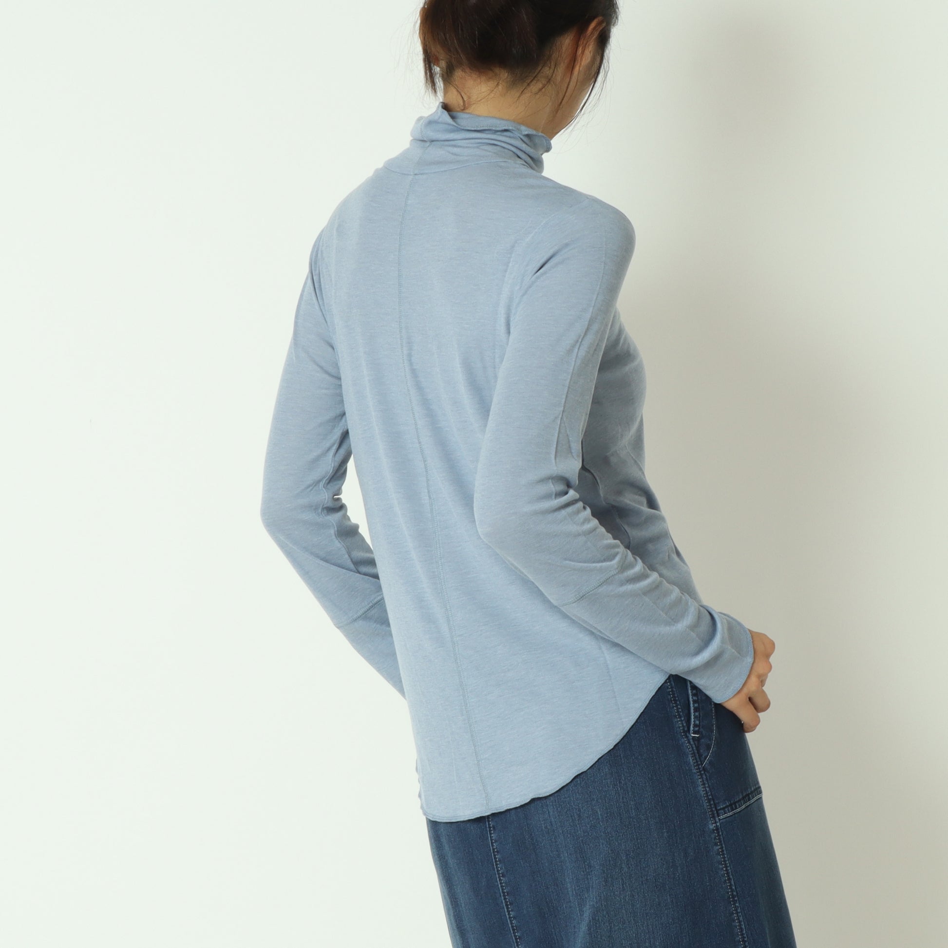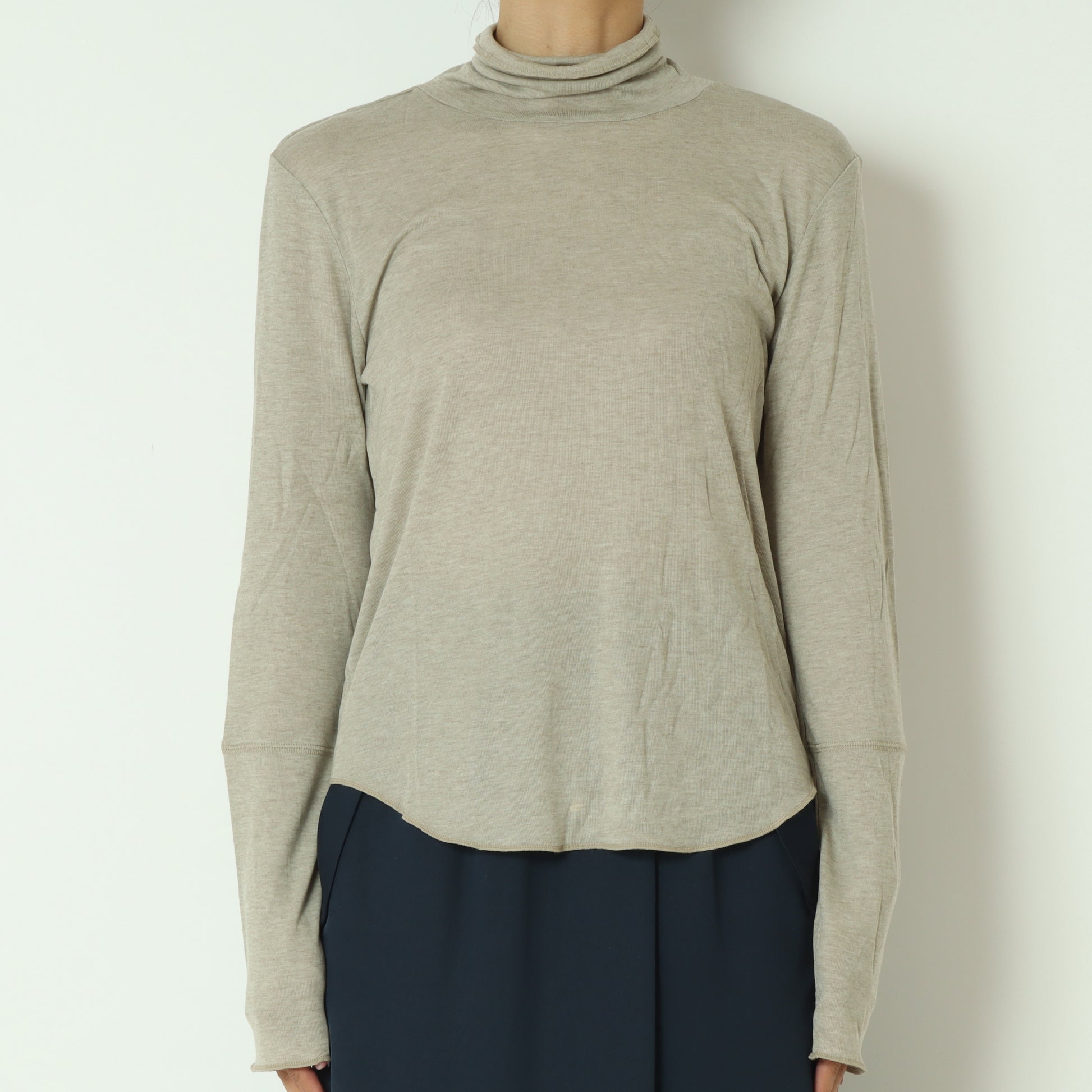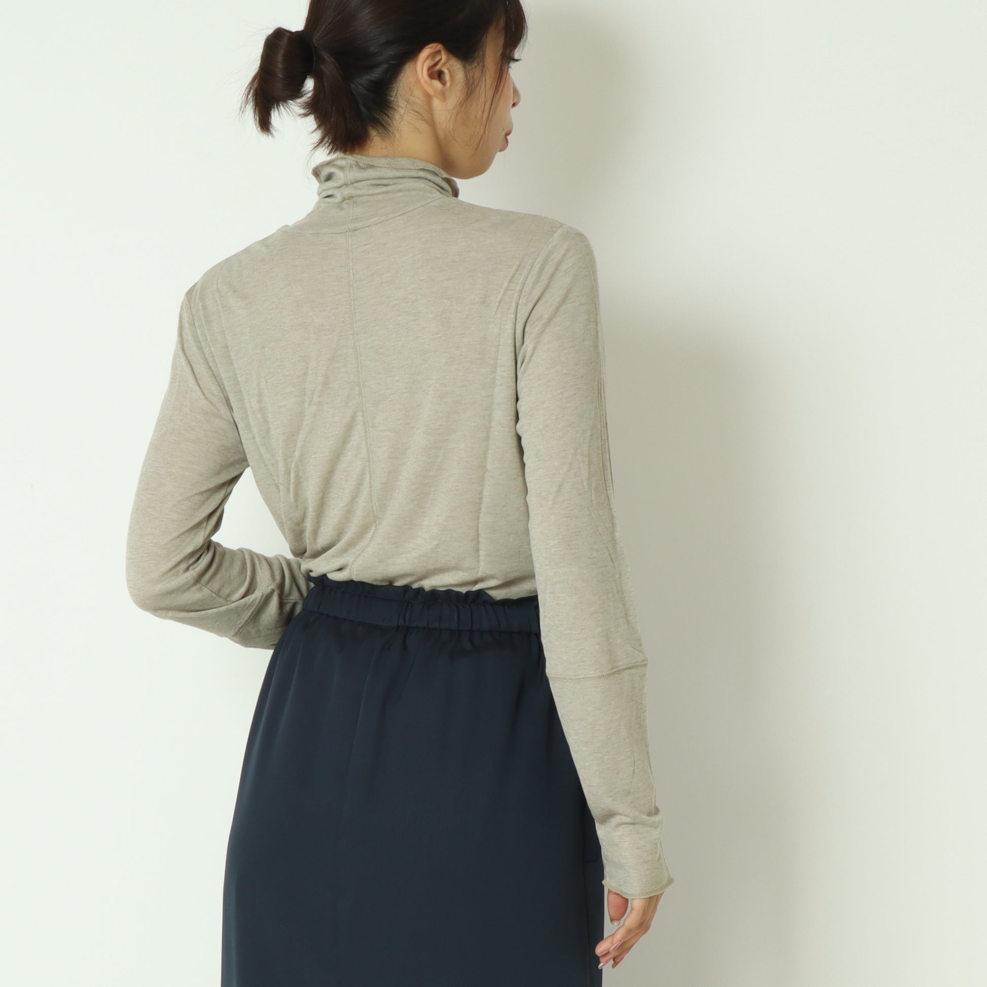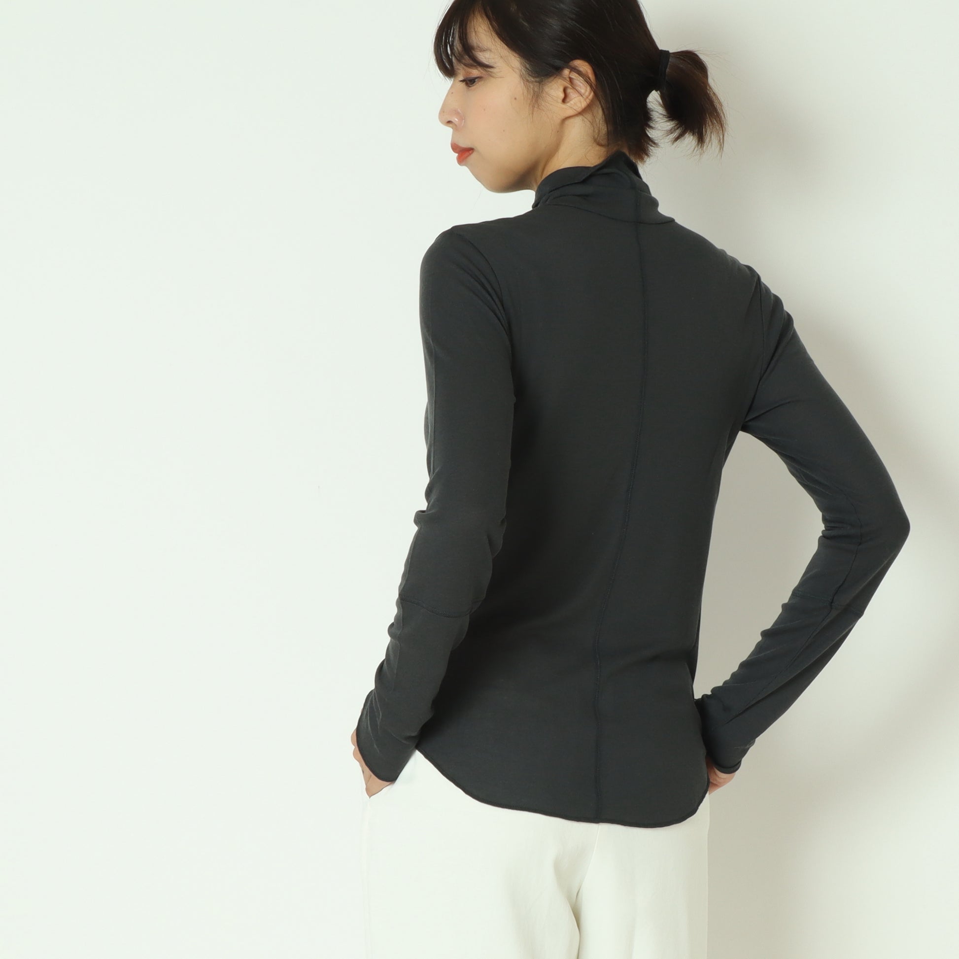 首周りに優しく添う、締め付け感のないハイネックです。