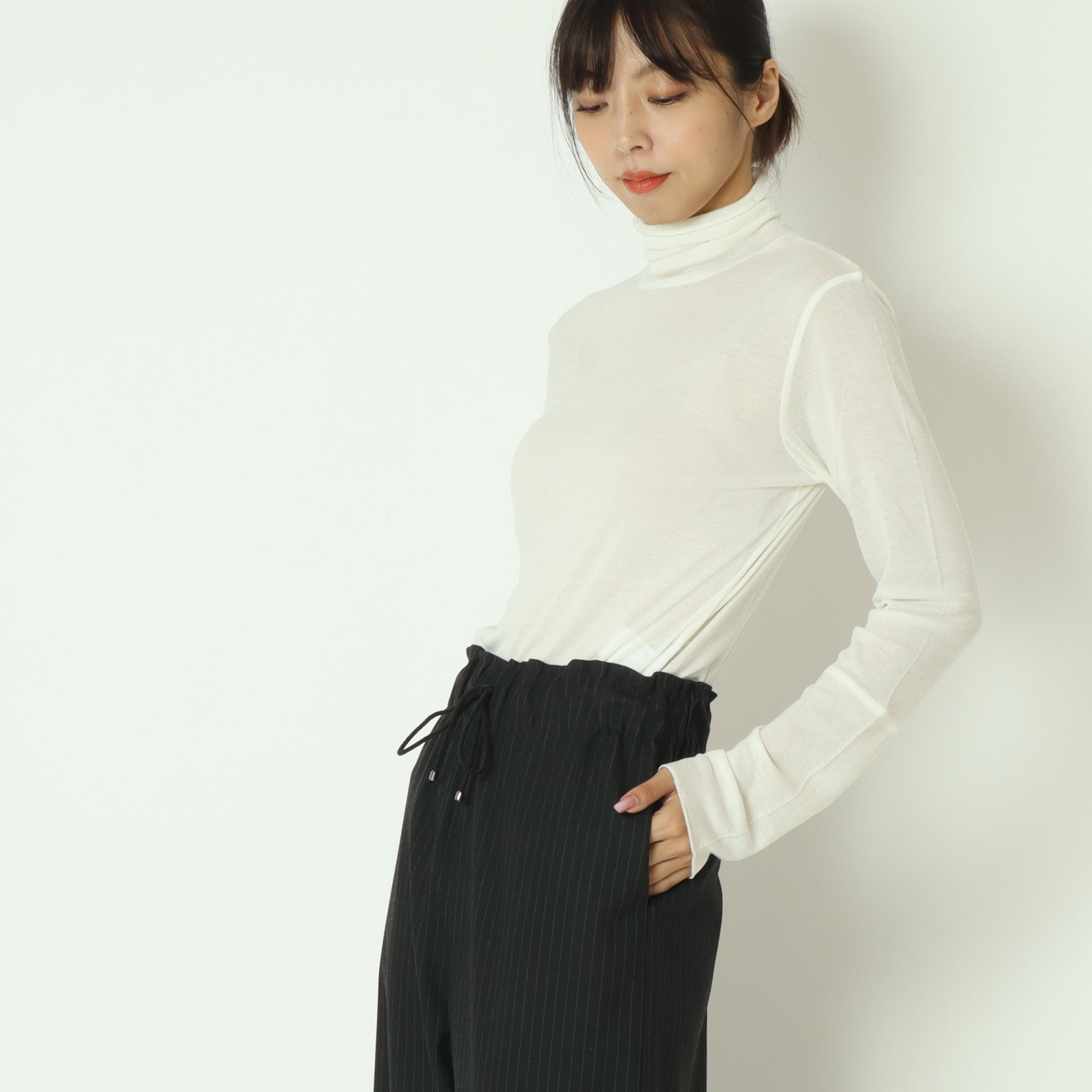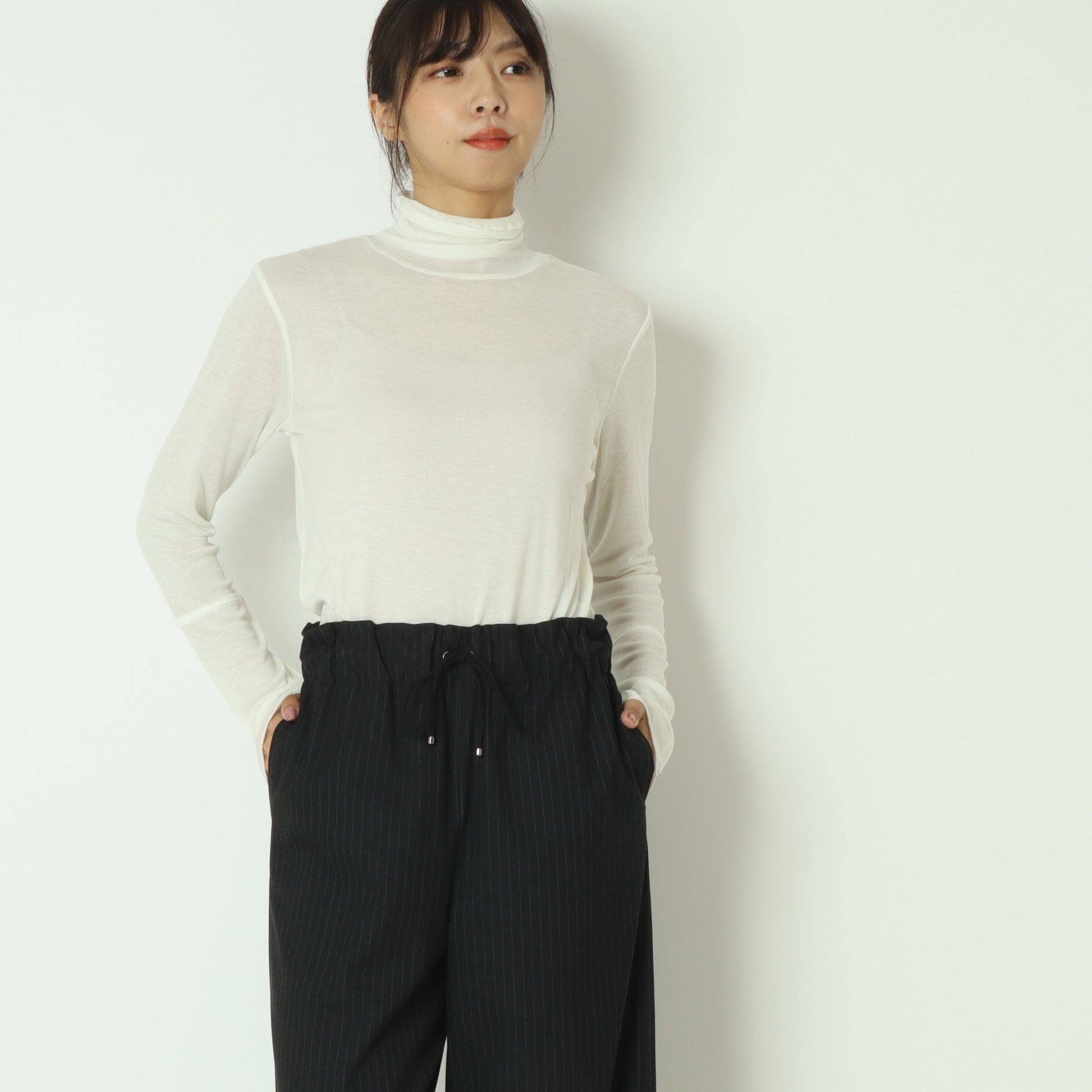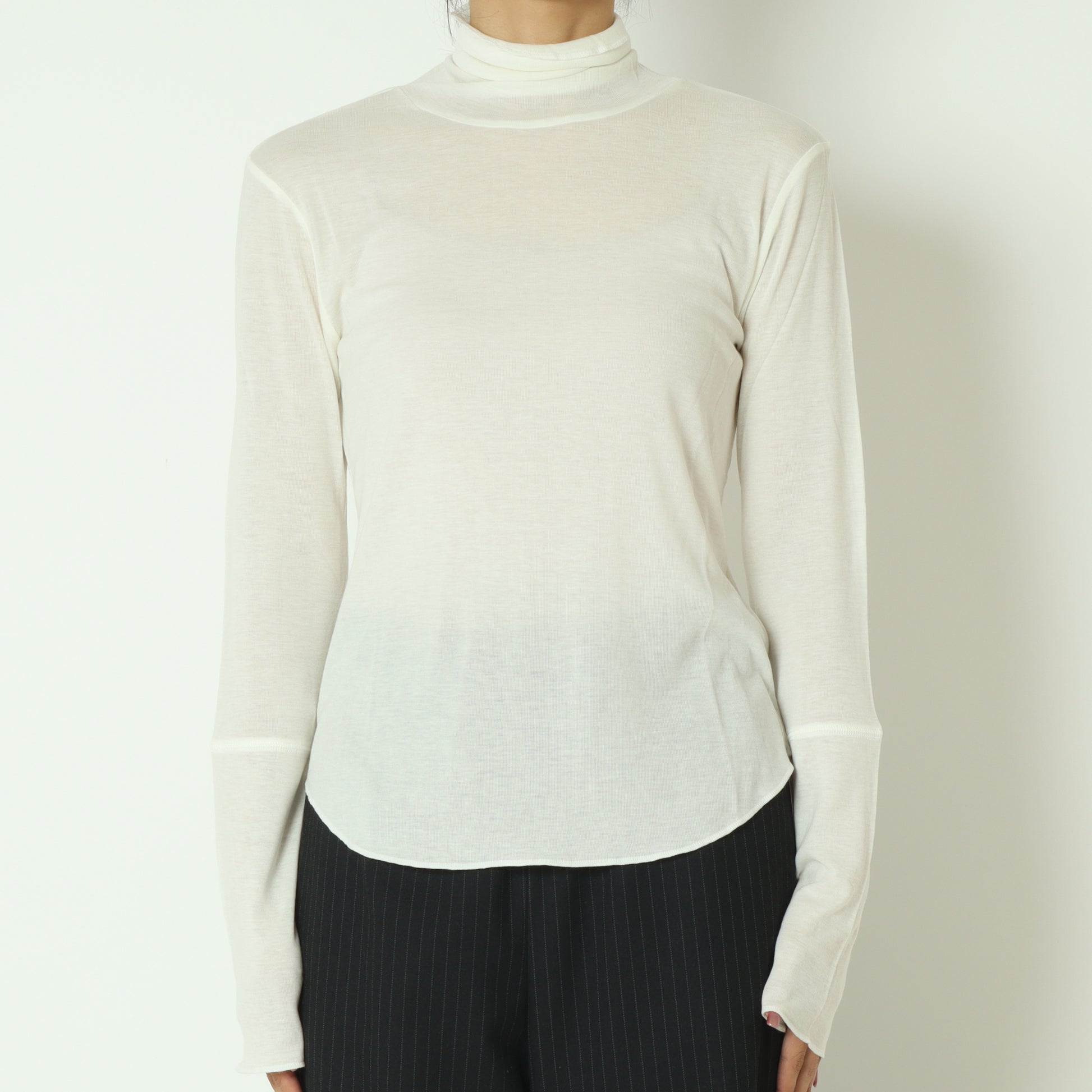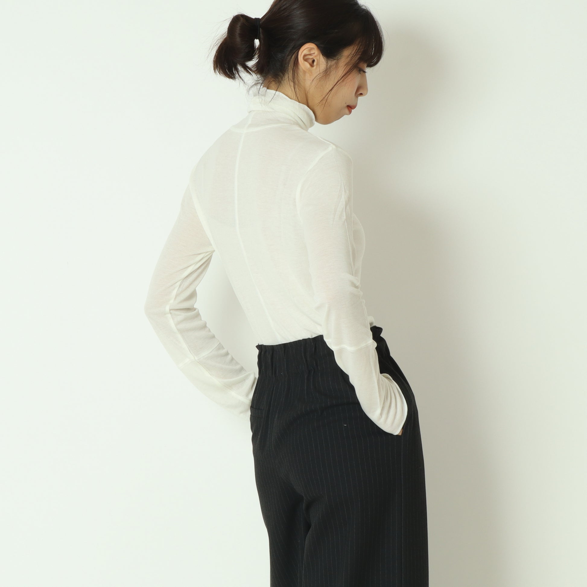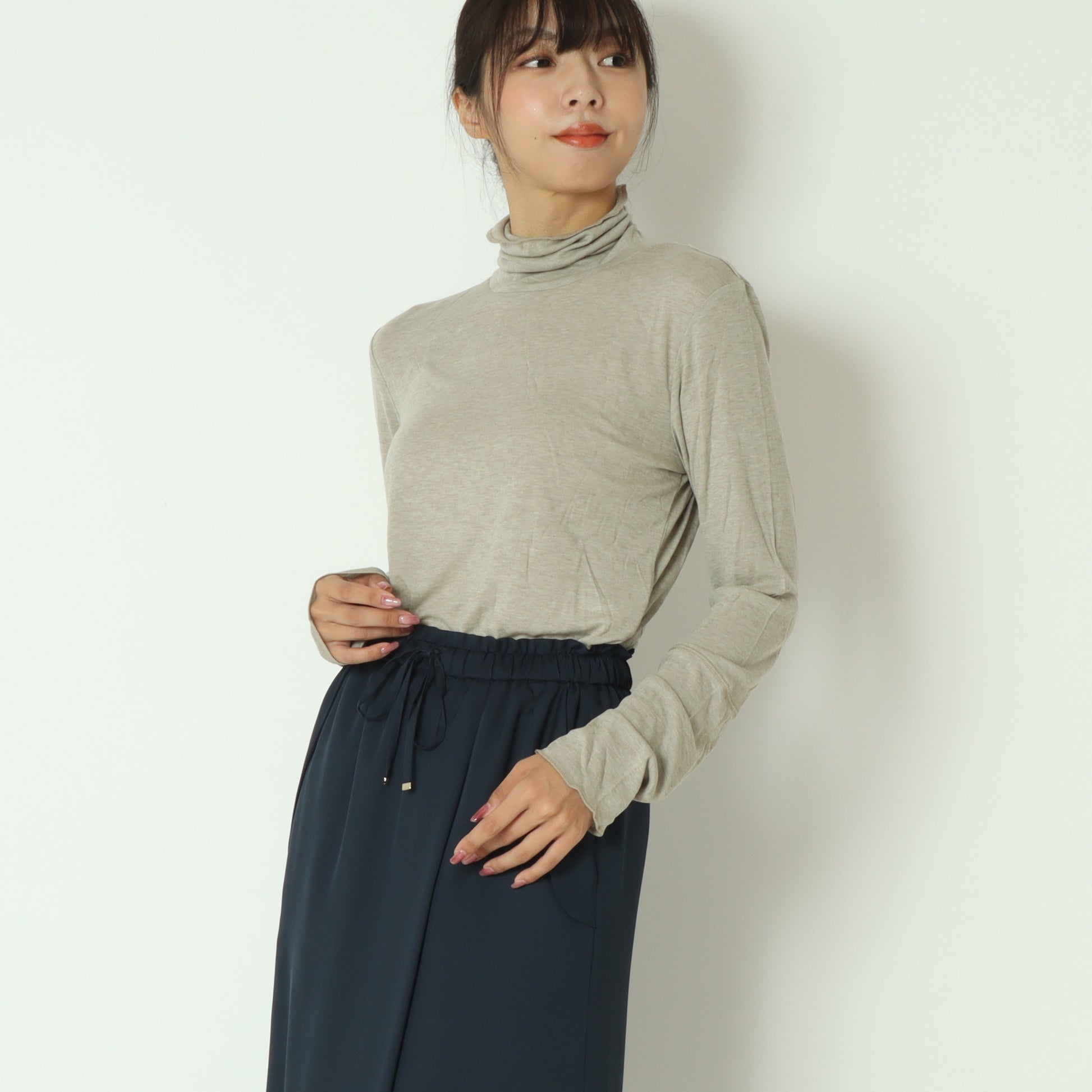 首周りに優しく添う、締め付け感のないハイネックです。