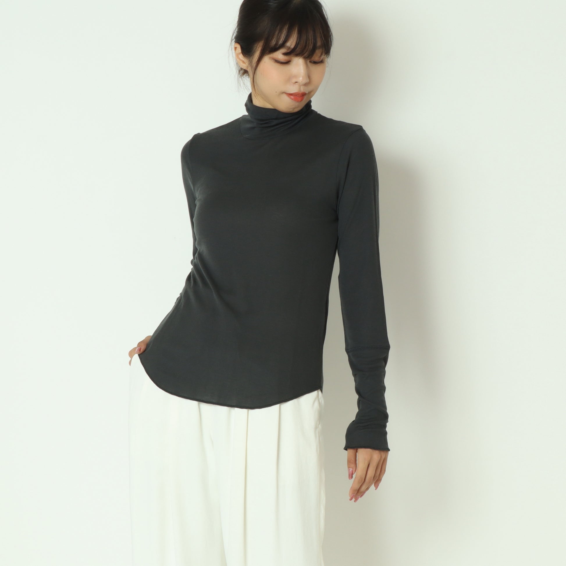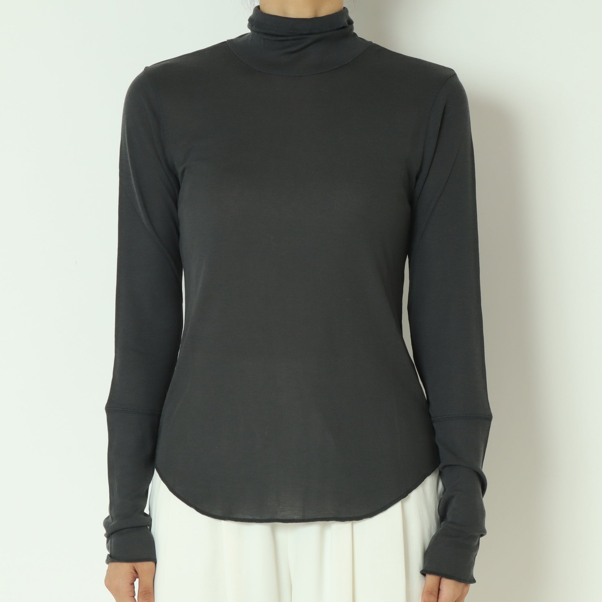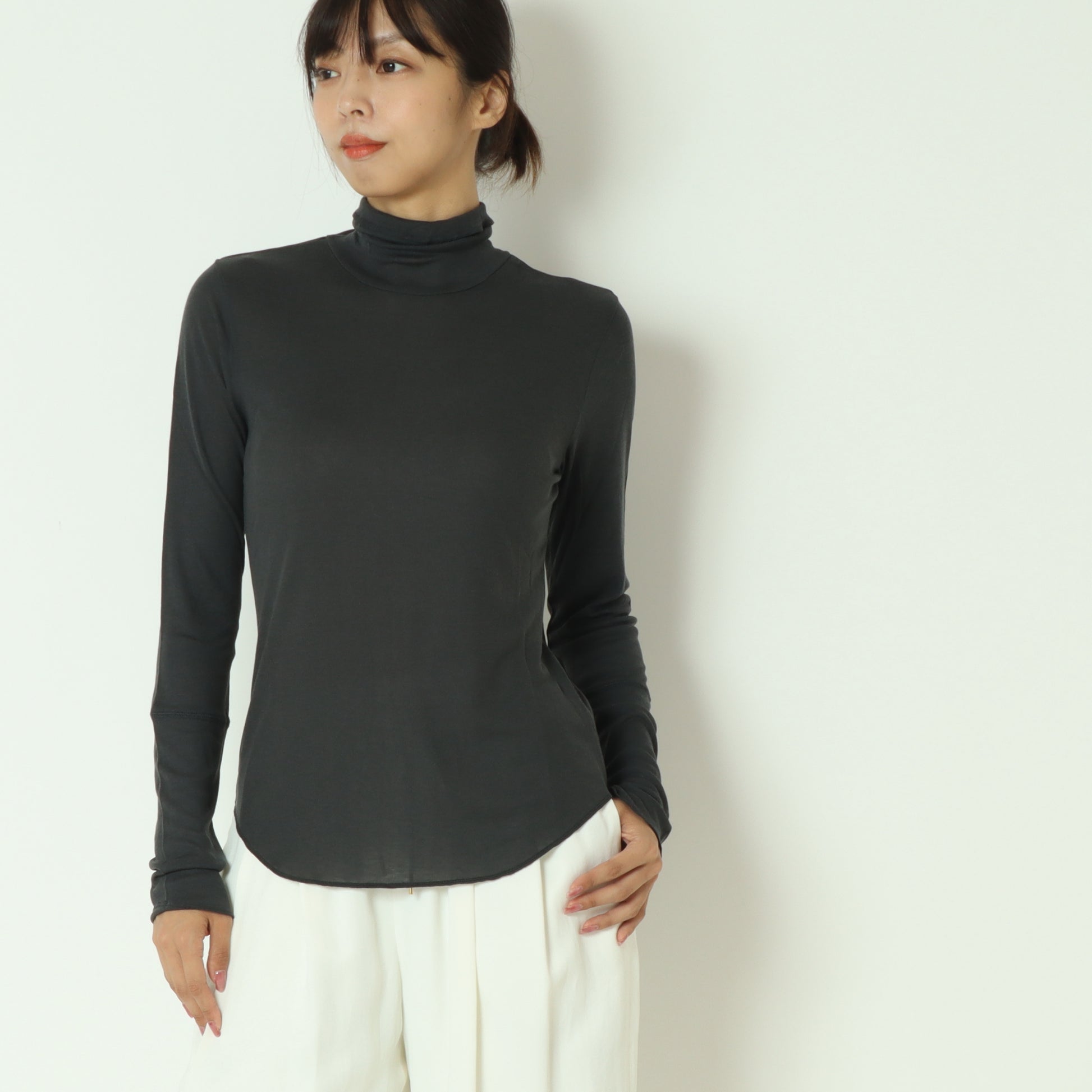 柔らかくなめらかな肌触りのタートルネックカットソー
