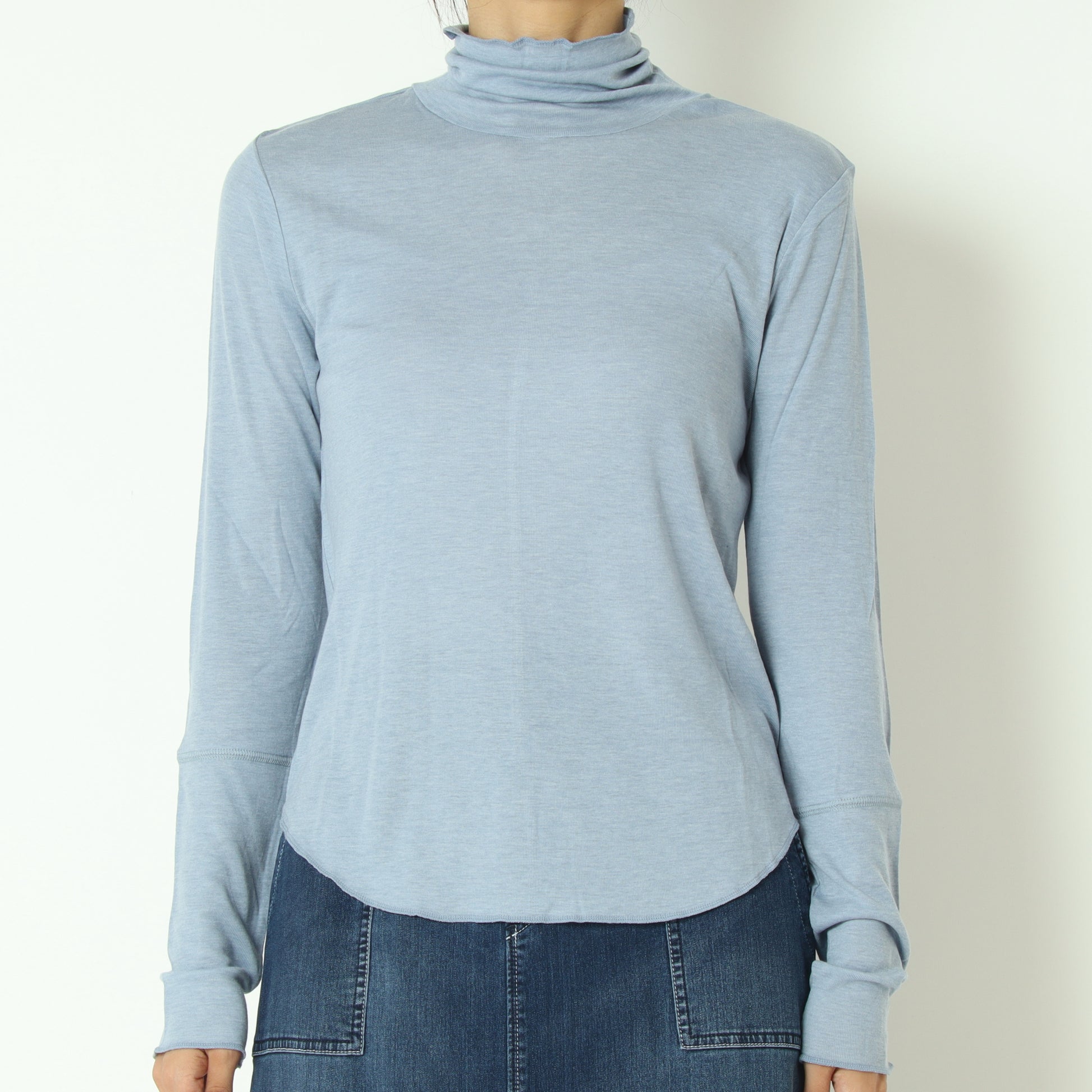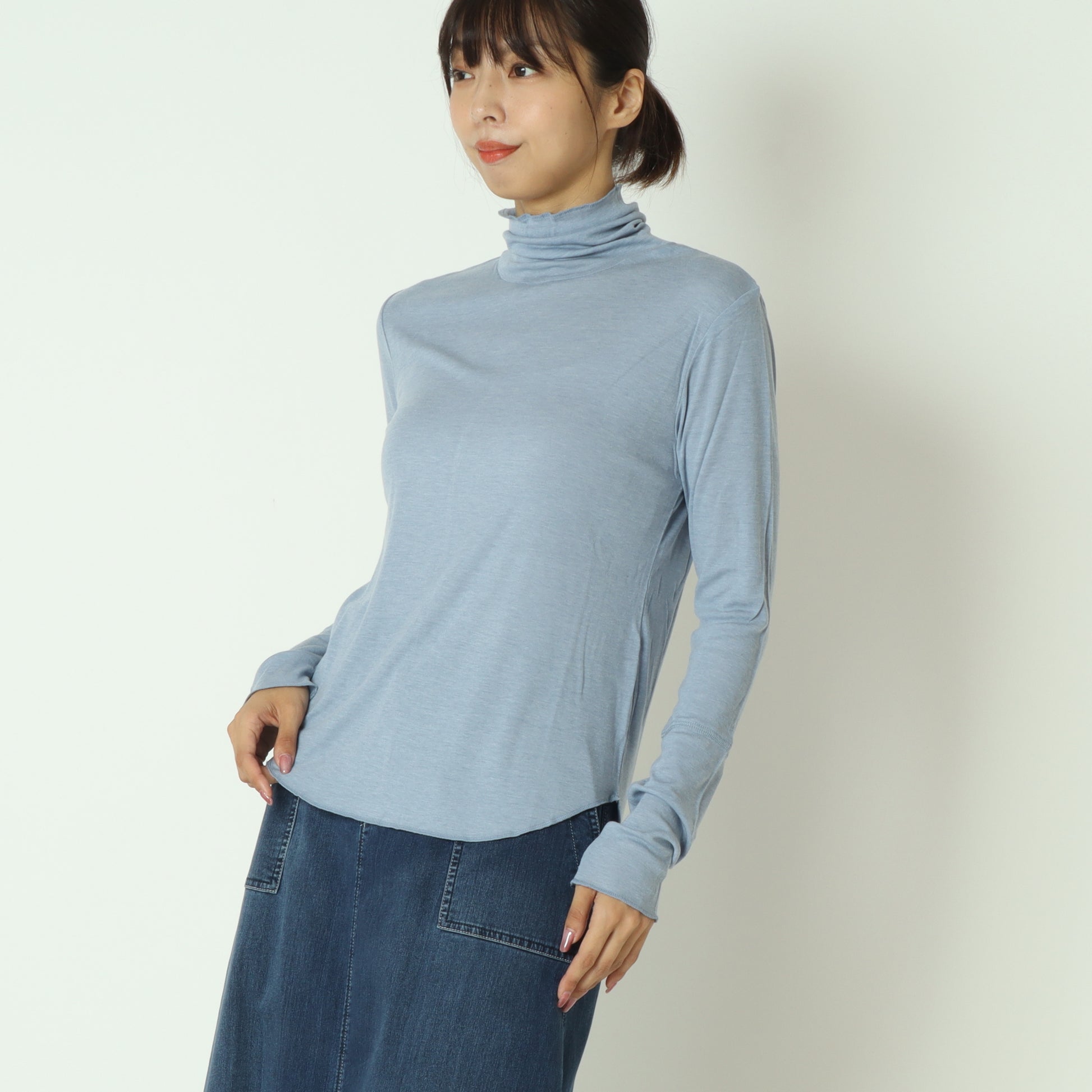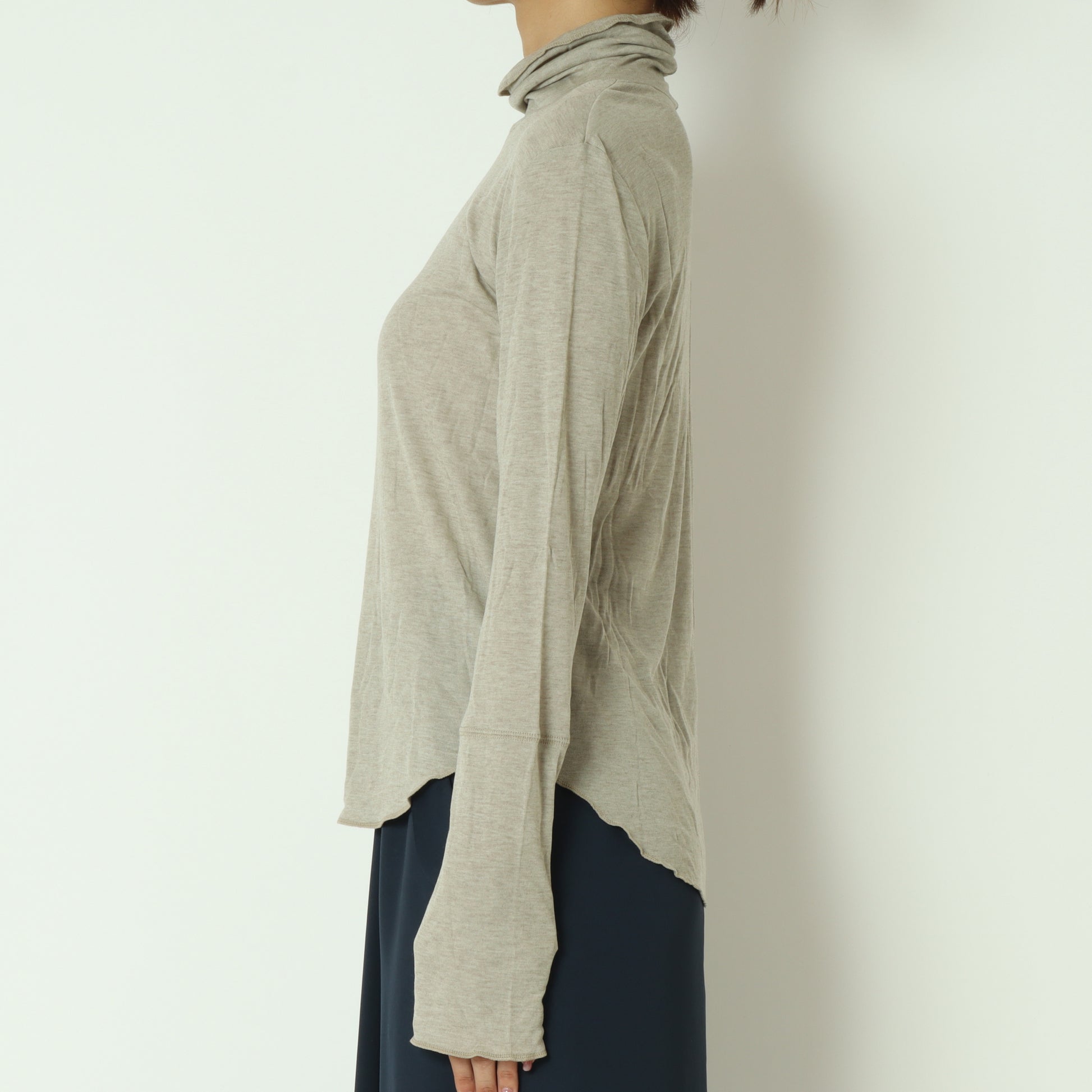 柔らかくなめらかな肌触りのタートルネックカットソー