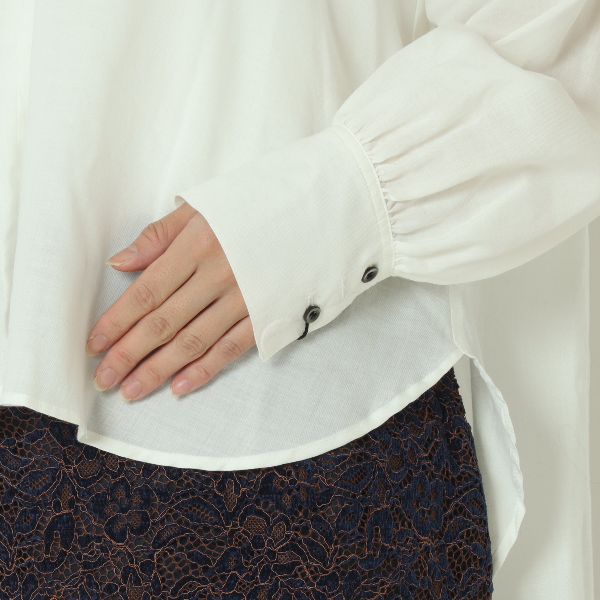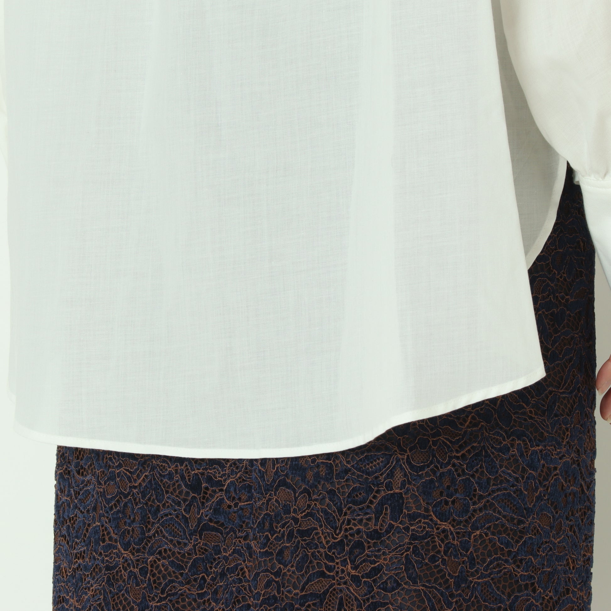 透け感のある生地はトレンド感があり、袖がキュッと絞られたボリュームスリーブは大人可愛い印象に◎