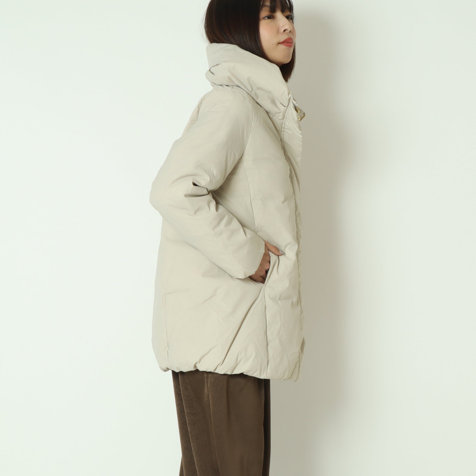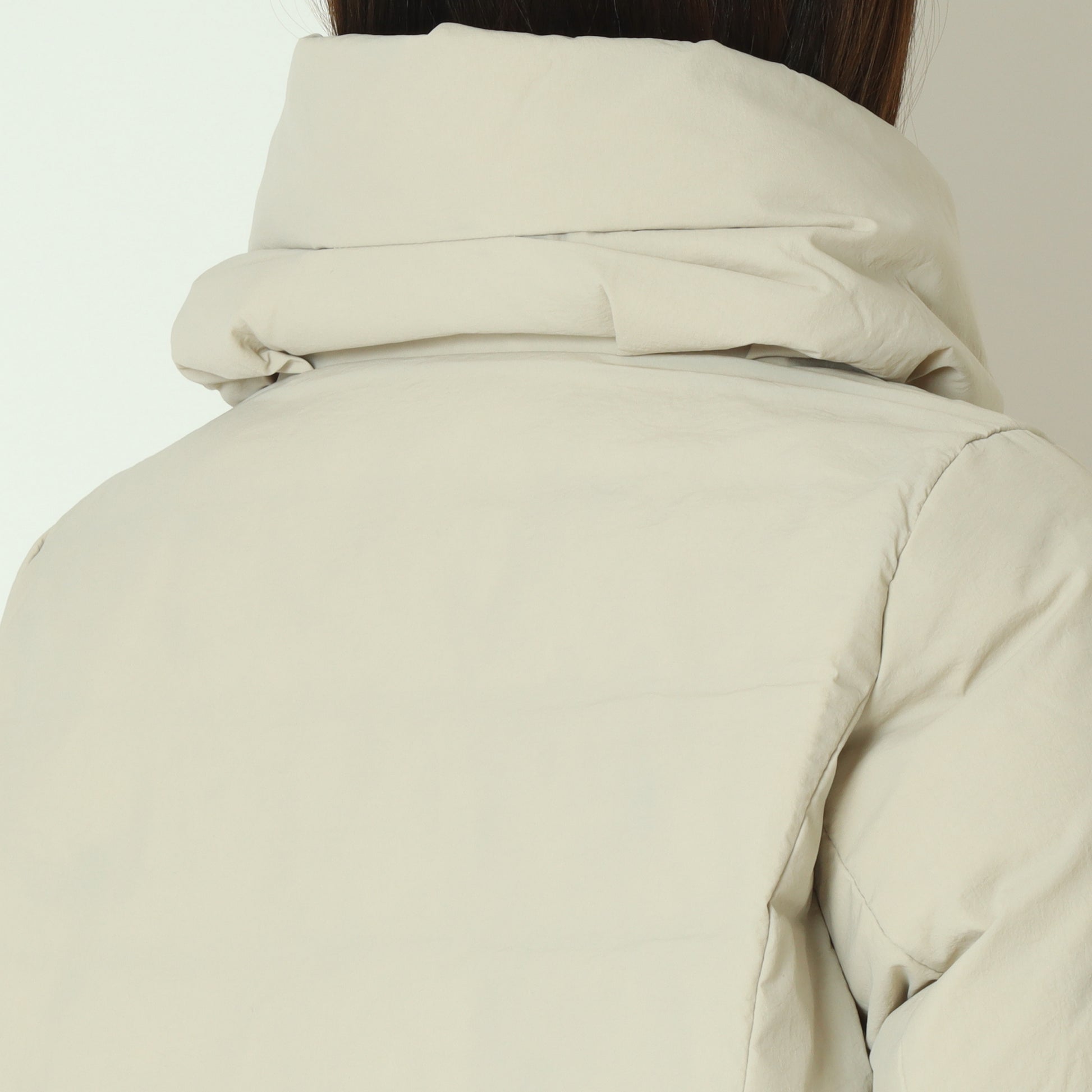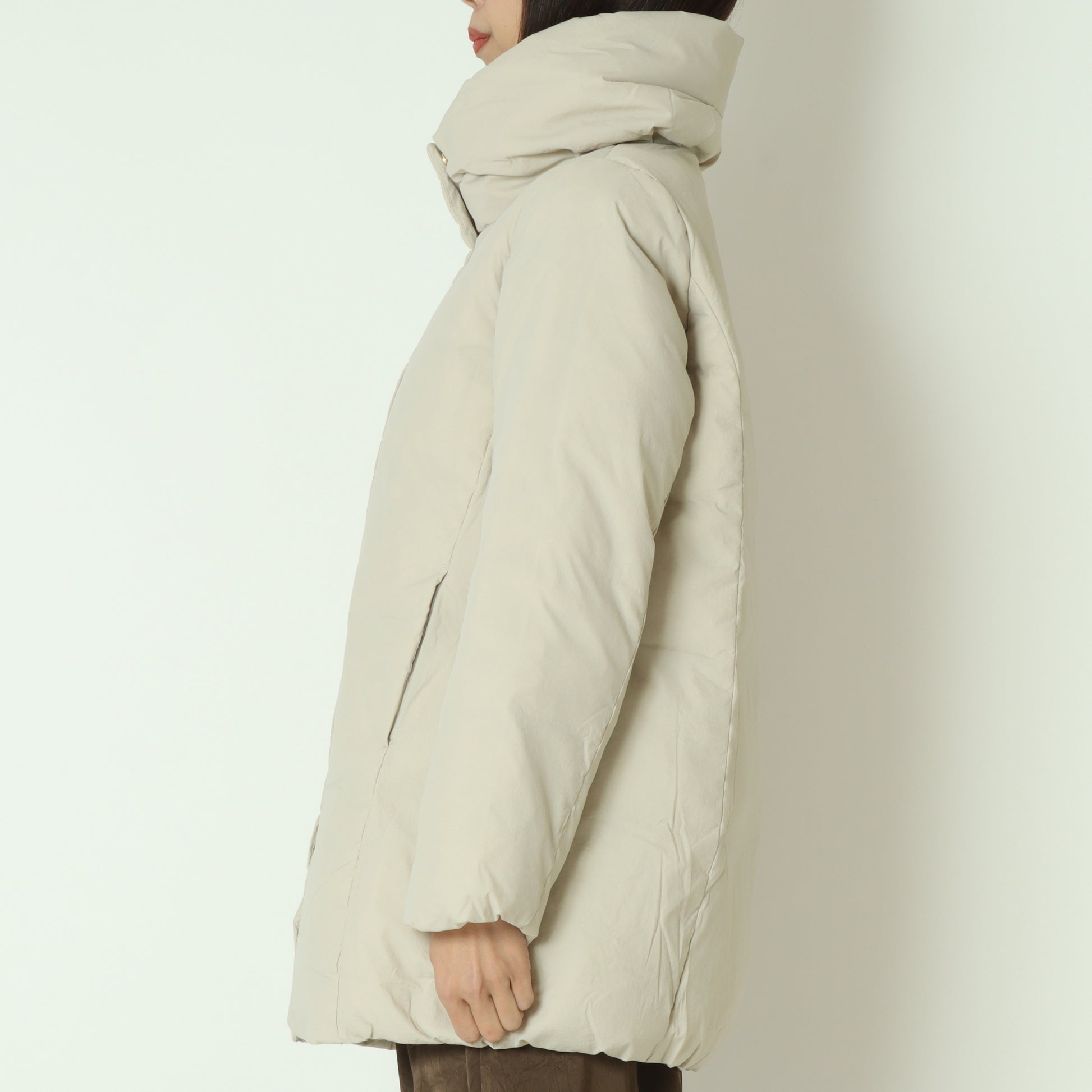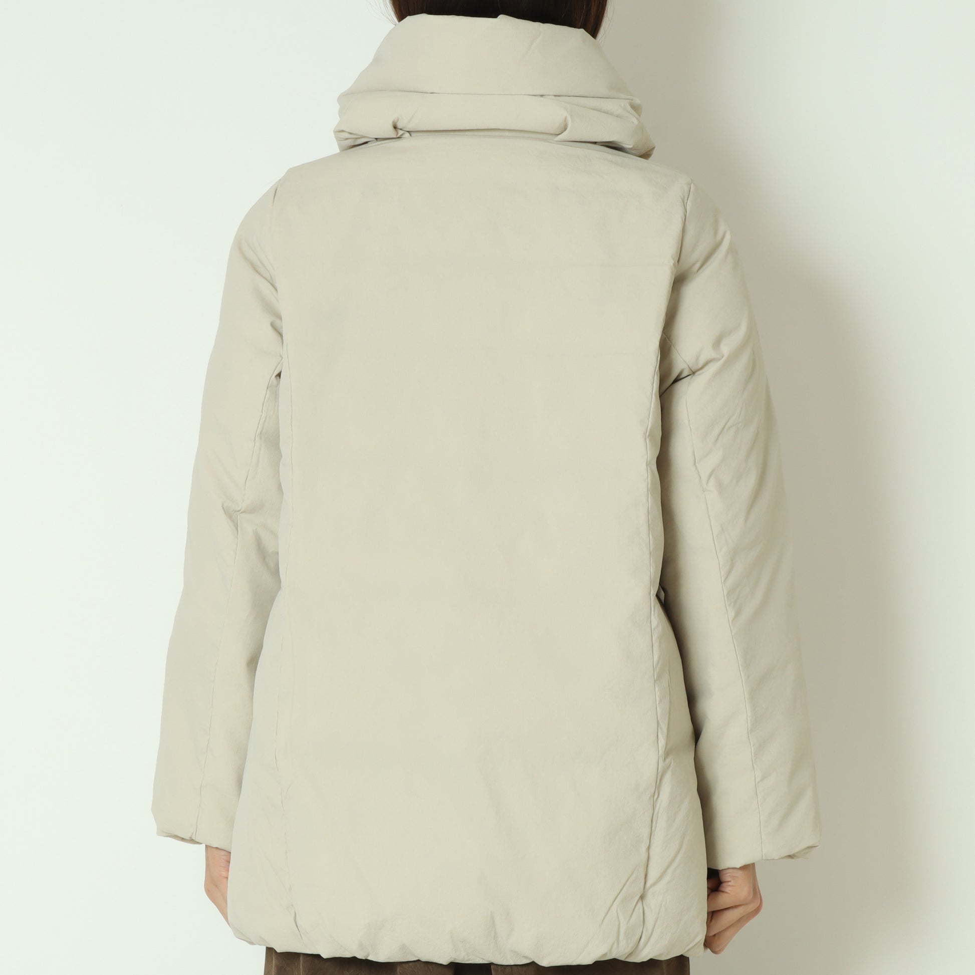ボリュームのあるスタンドカラーが特徴的な比翼仕立てのダウンジャケット。
