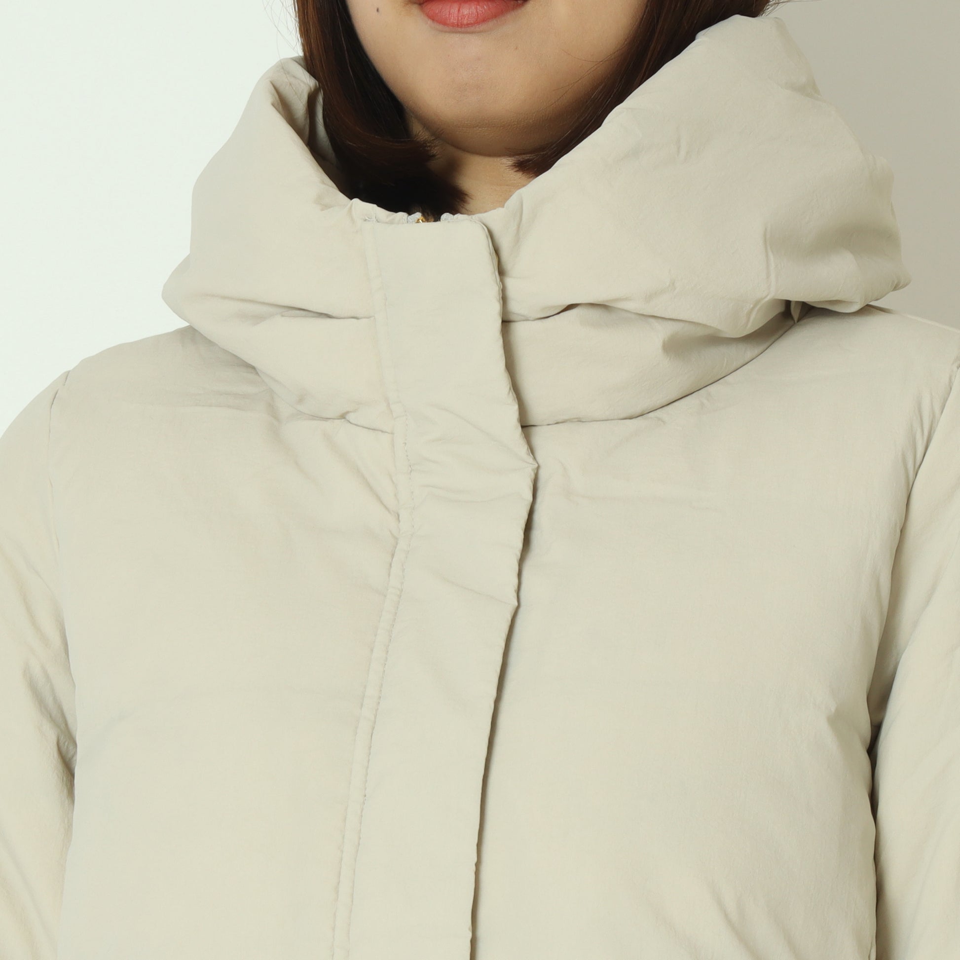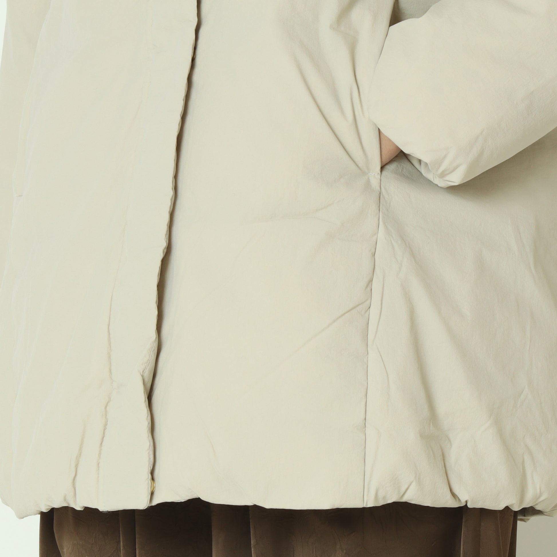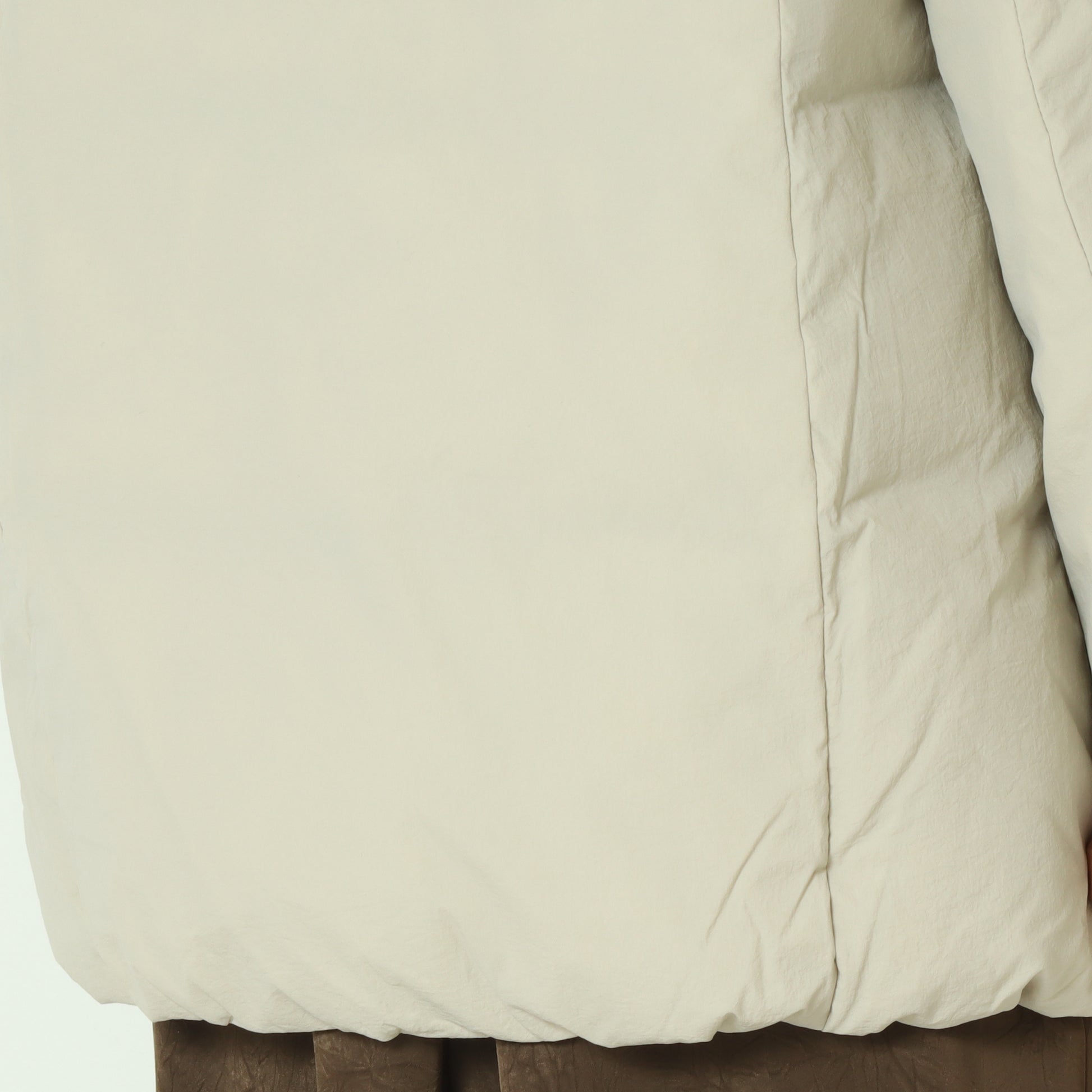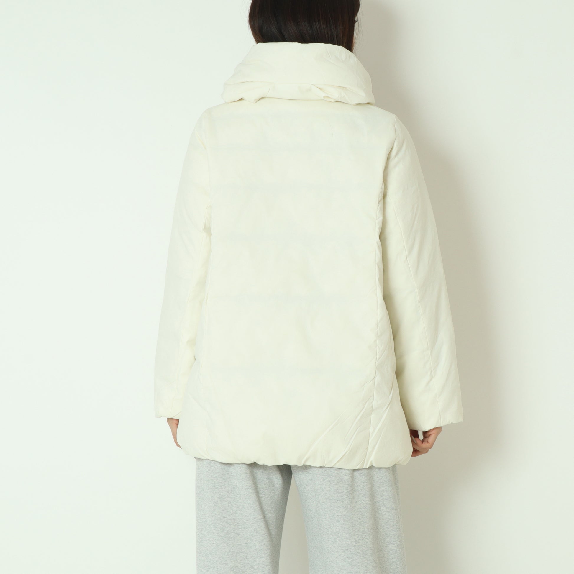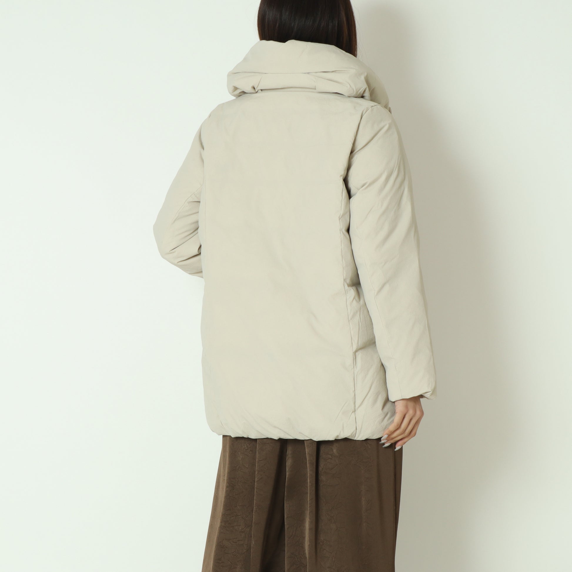 ボリュームのあるスタンドカラーが特徴的な比翼仕立てのダウンジャケット。