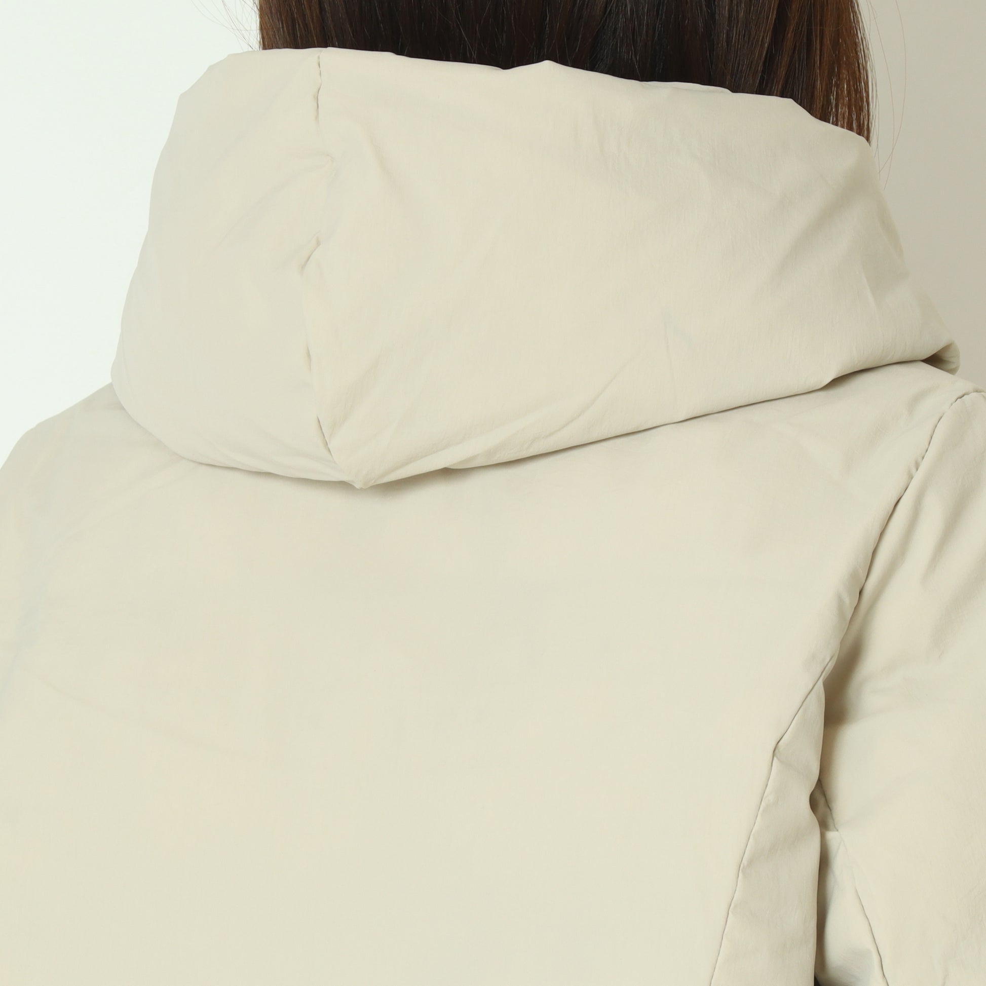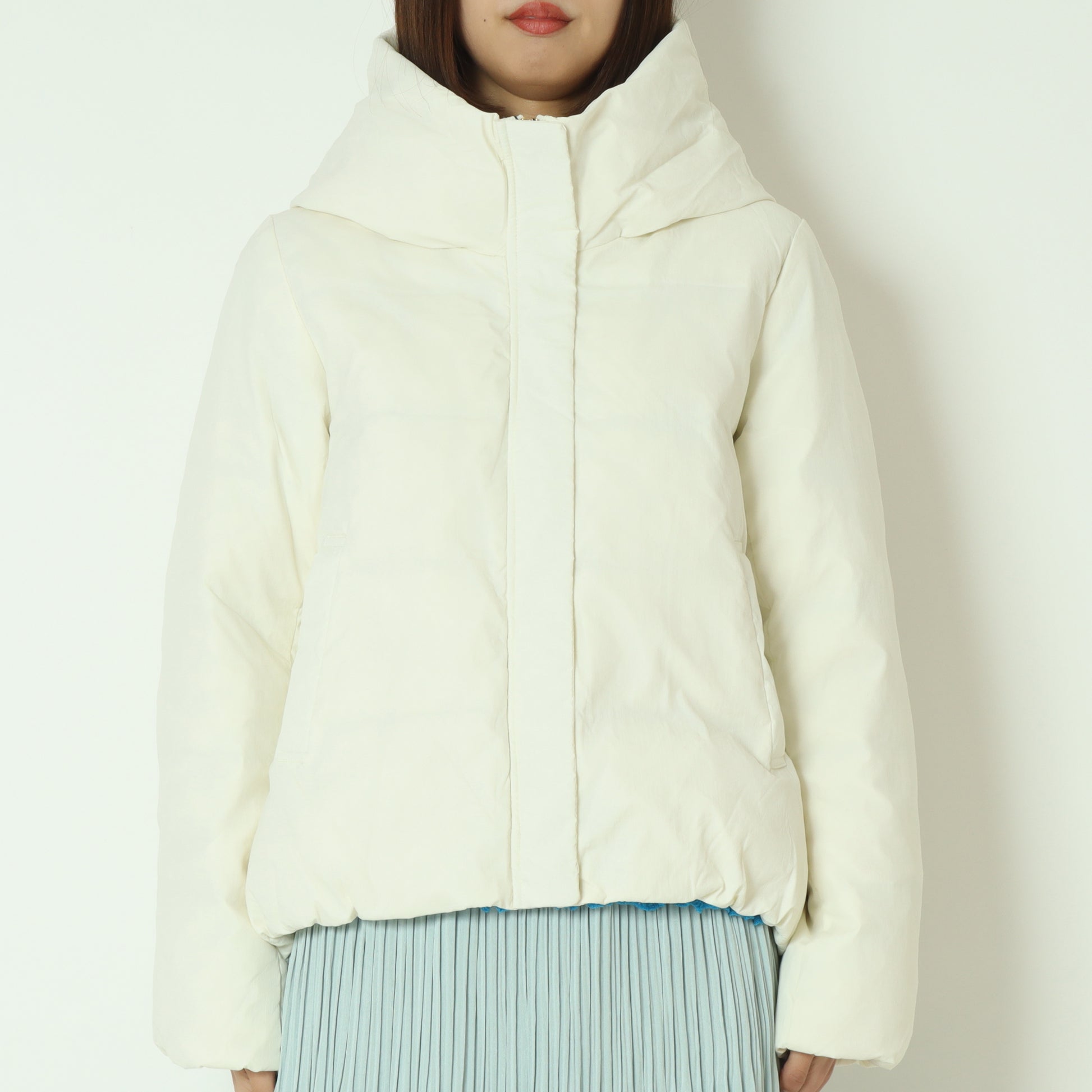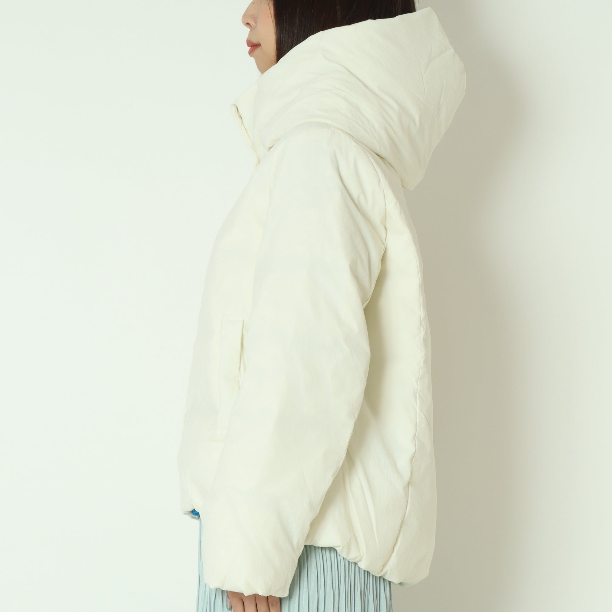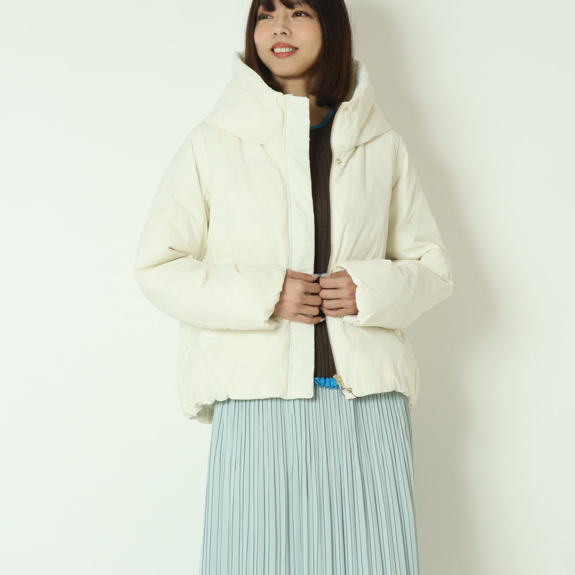 スタンドカラーで首元も暖かく、フード付きなのも嬉しいポイント◎