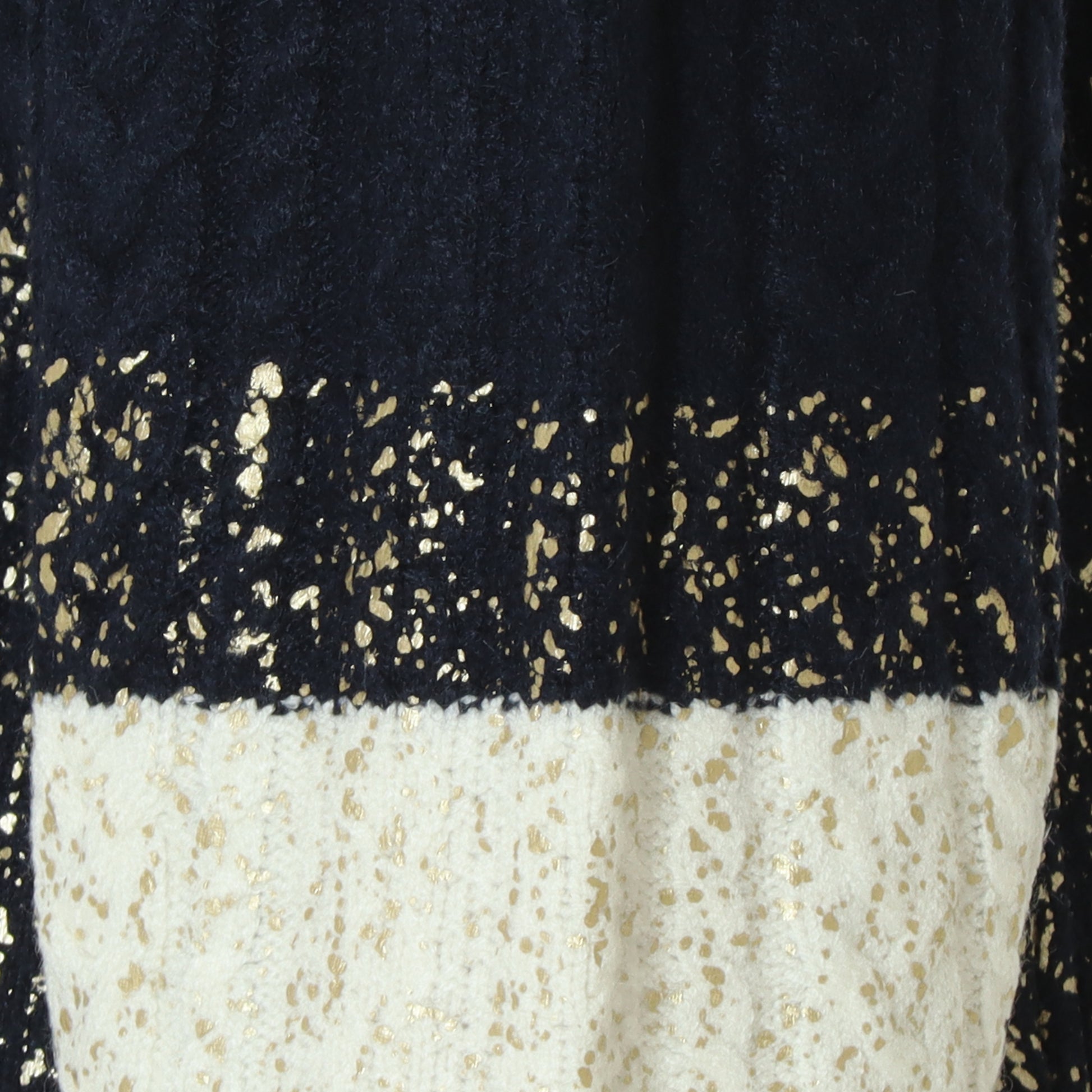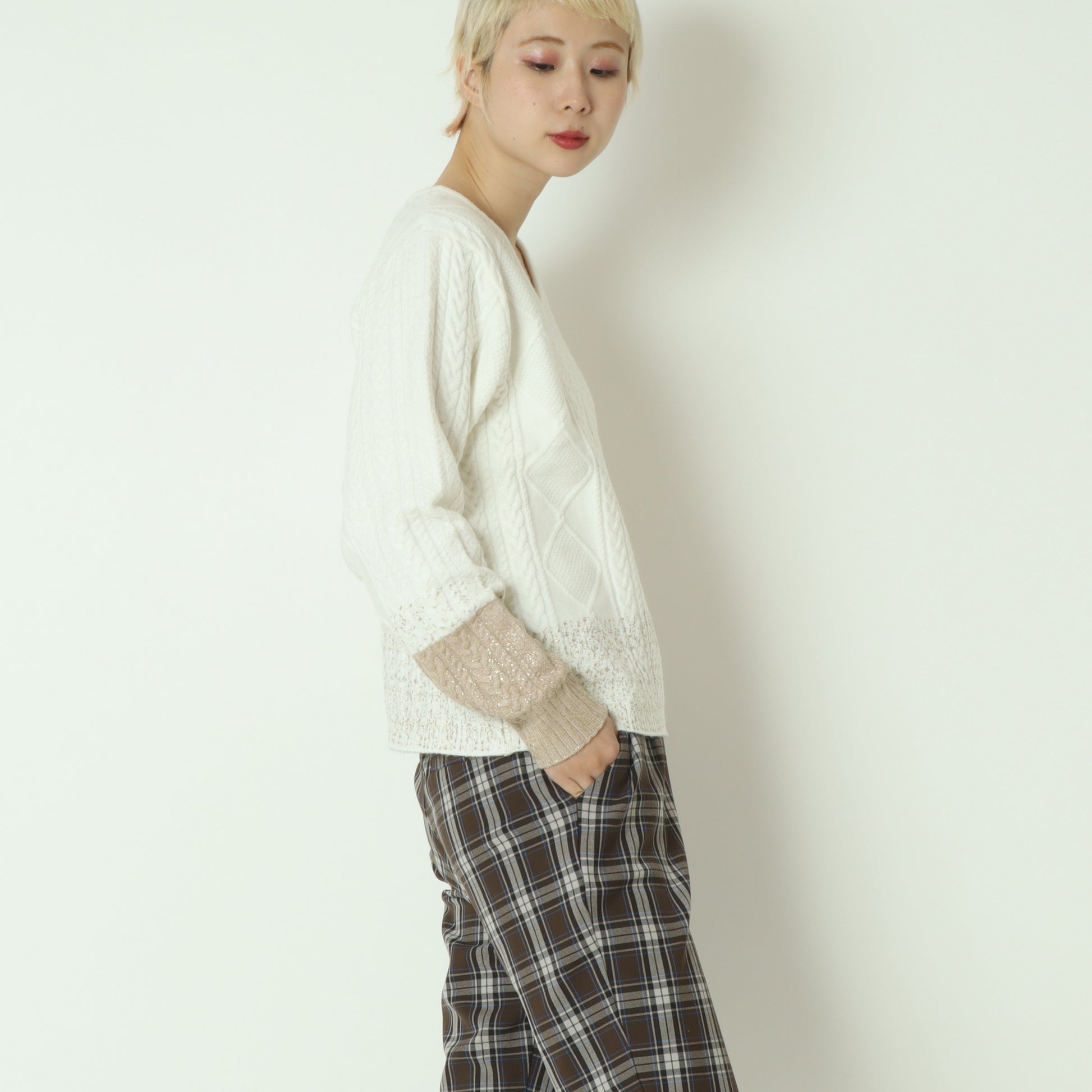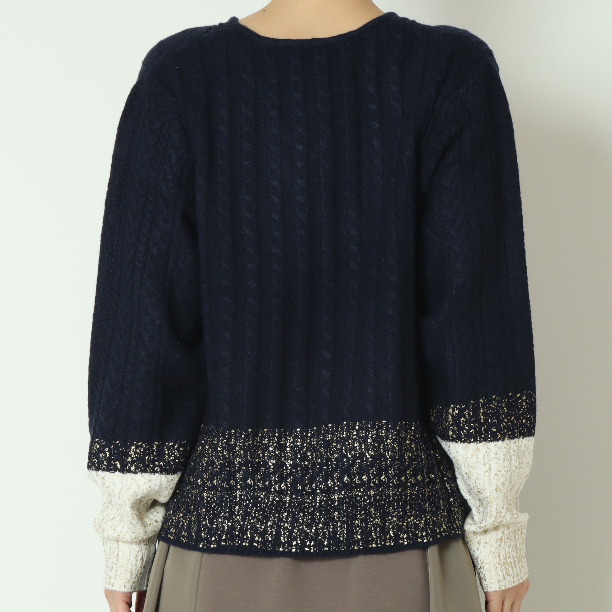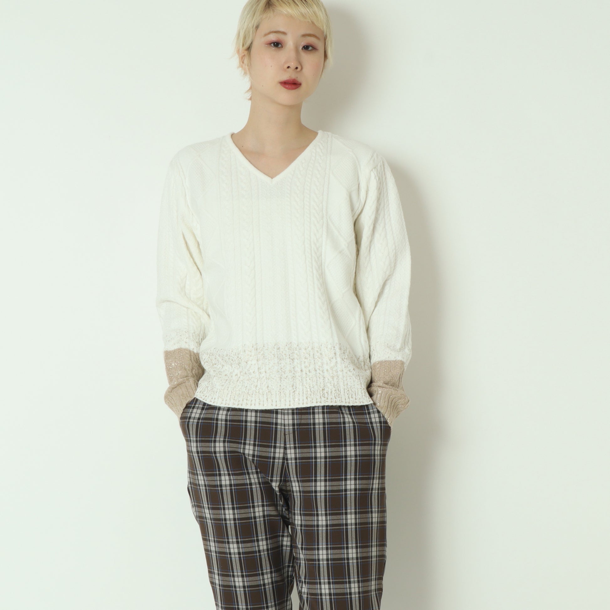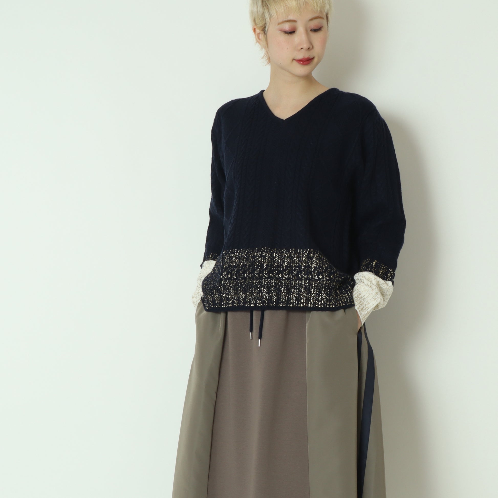 裾と袖に箔コーティングを施したデザイン性のあるVネックプルオーバー。