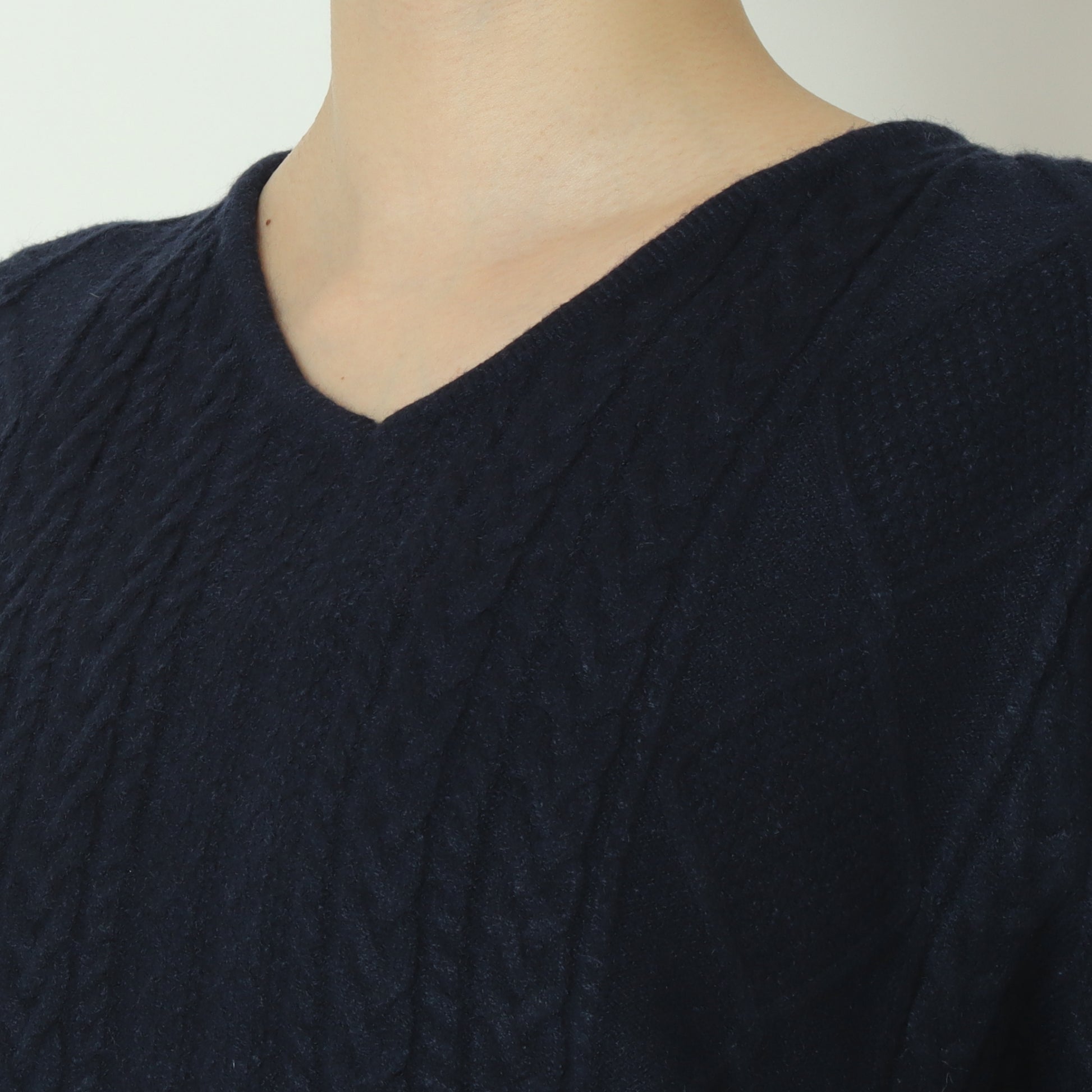 Vネックは顔周りをすっきりと見せてくれて、軽やかな着心地でデイリーに着回しやすい一枚です。