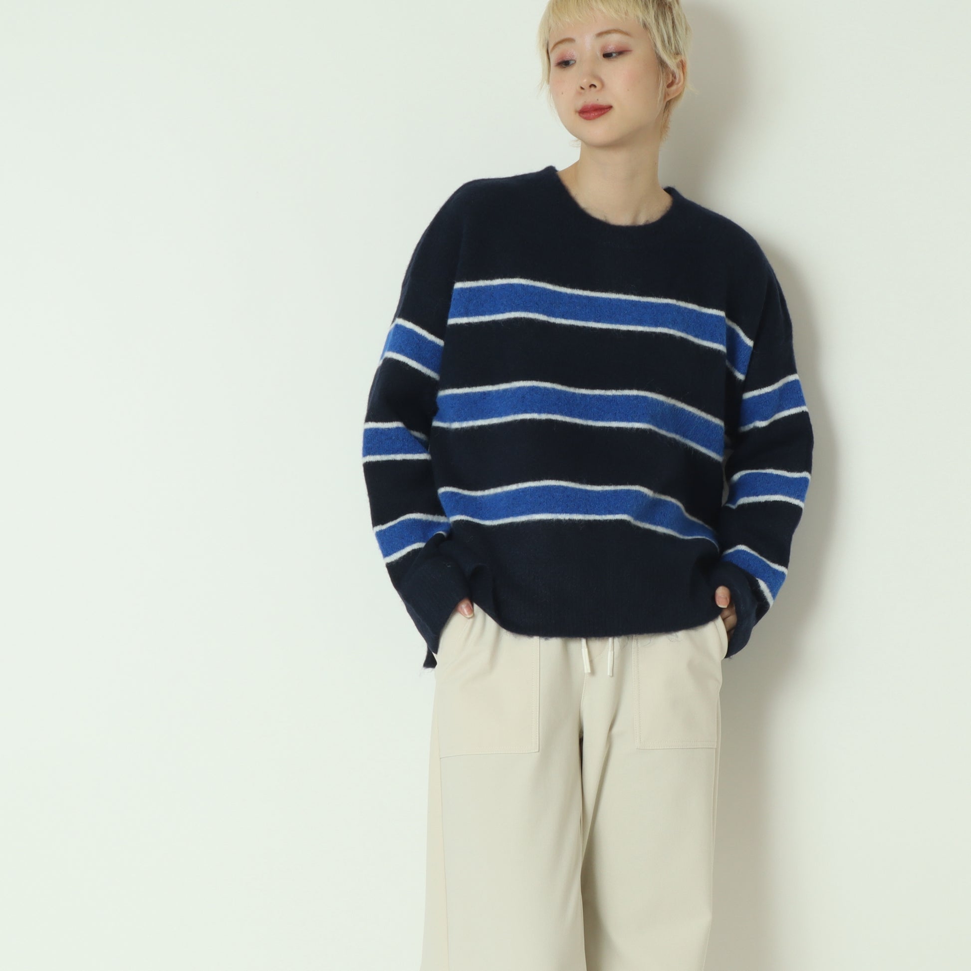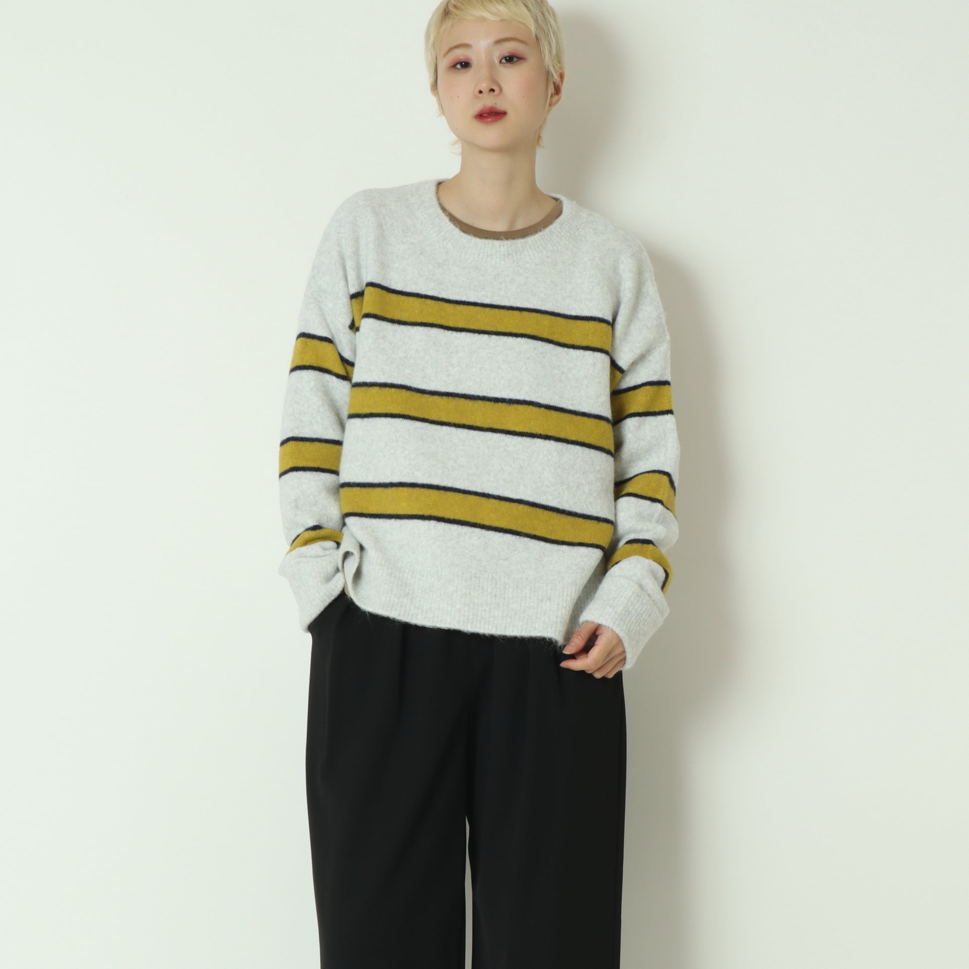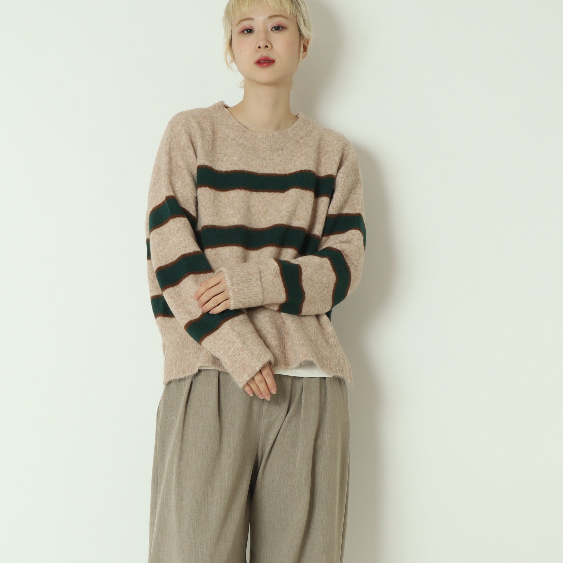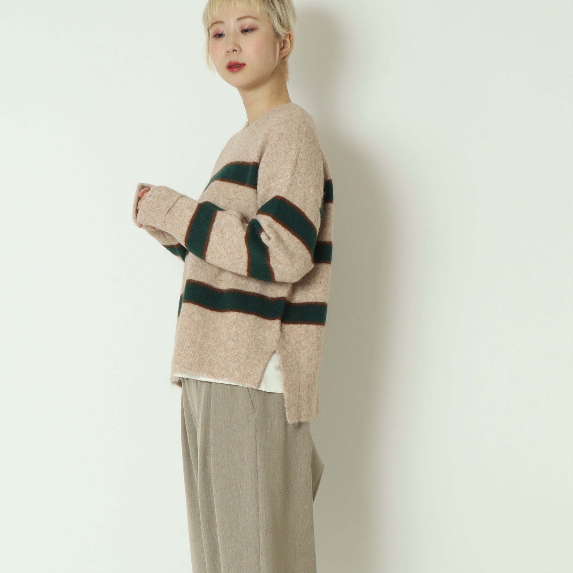 肌触りの良いウール混素材のボーダーニットプルオーバー。