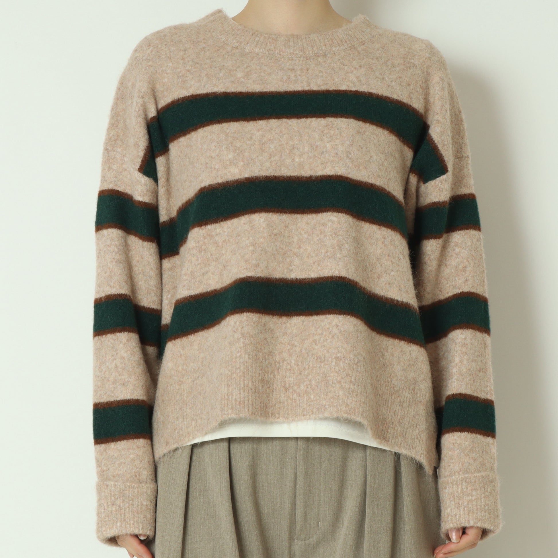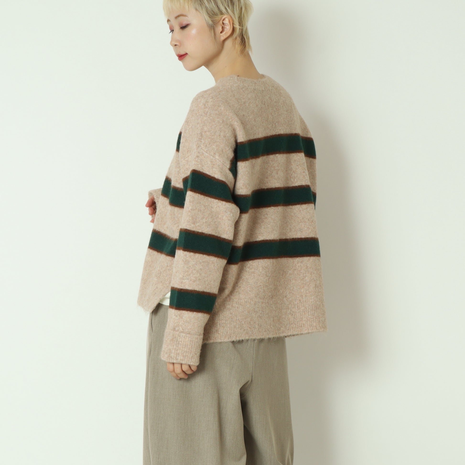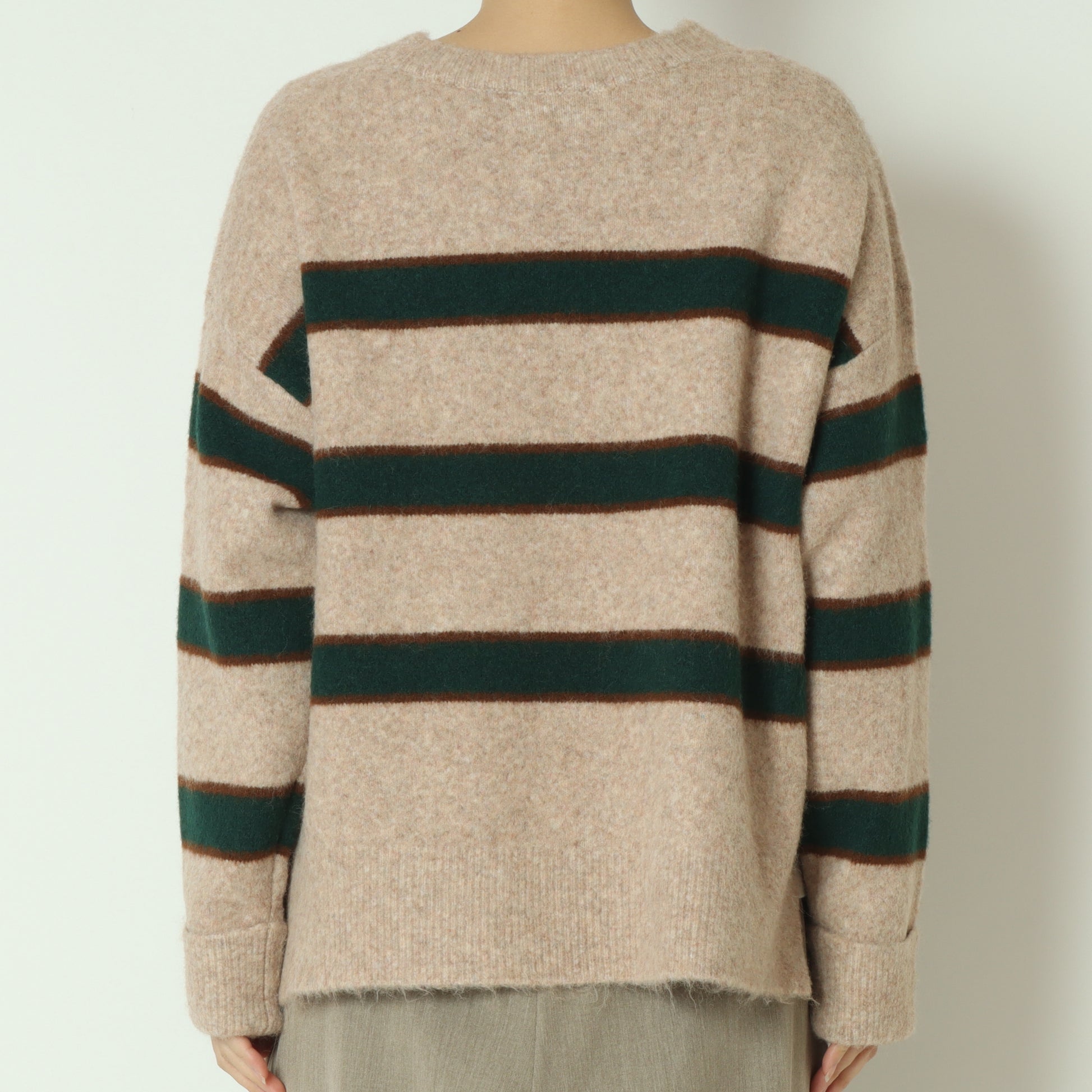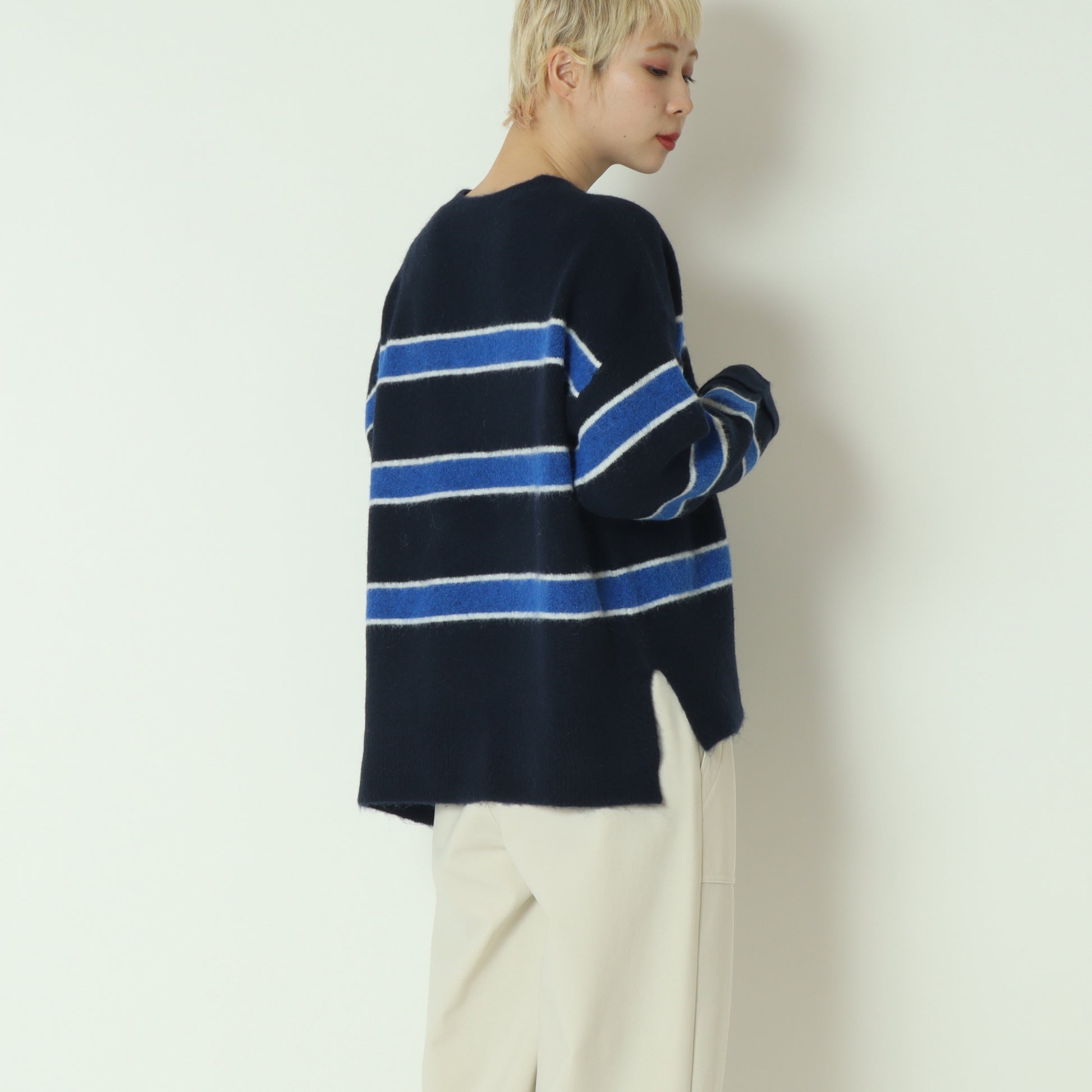 肌触りの良いウール混素材のボーダーニットプルオーバー。