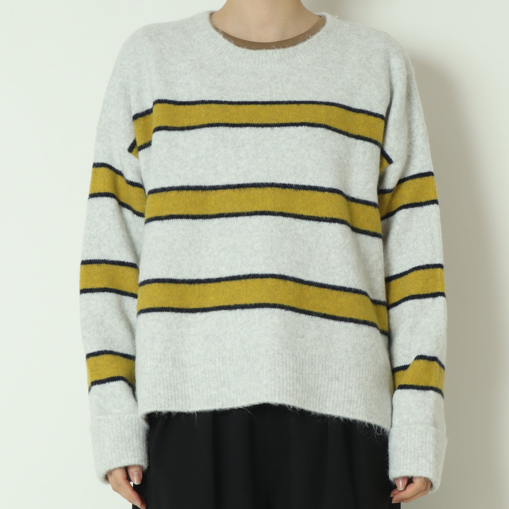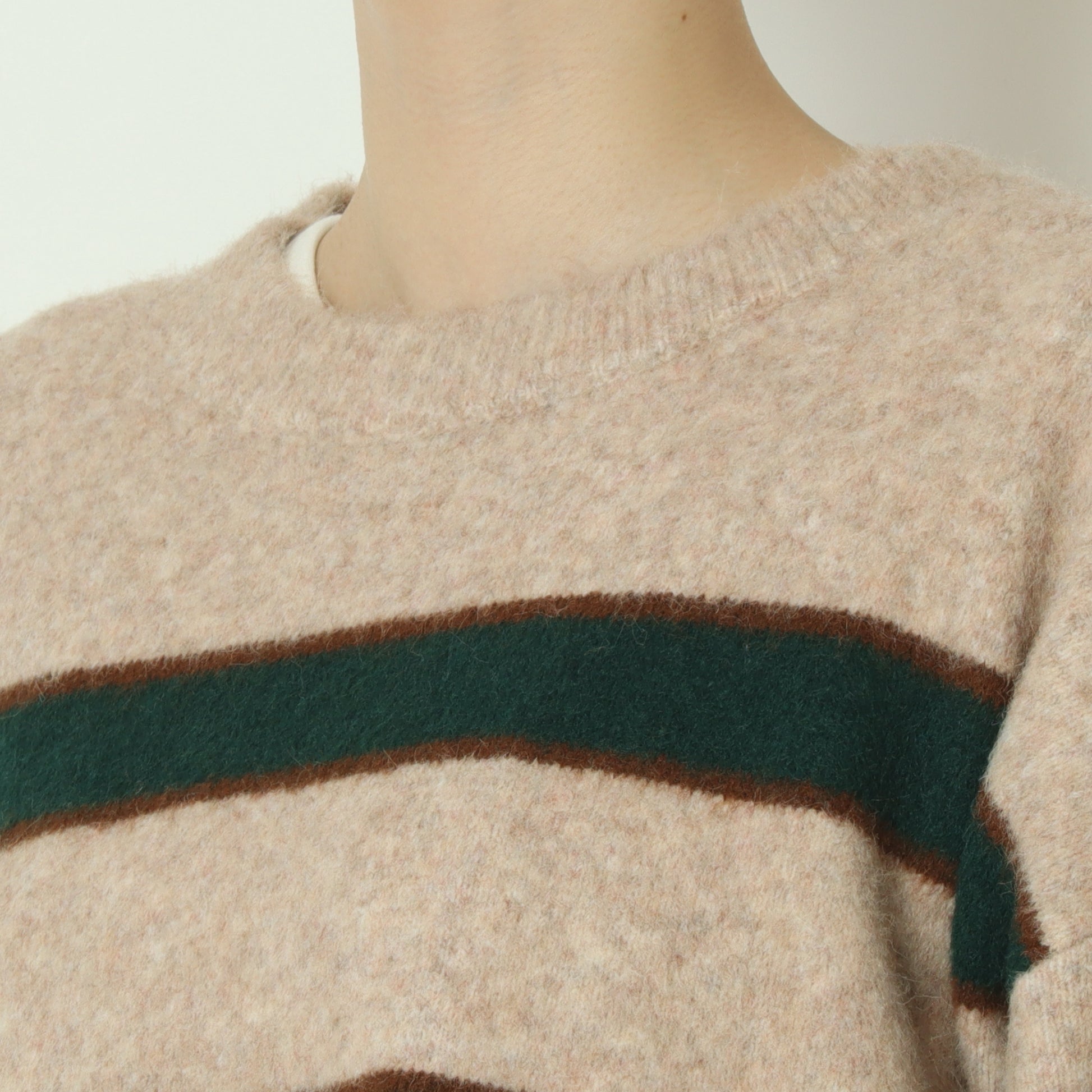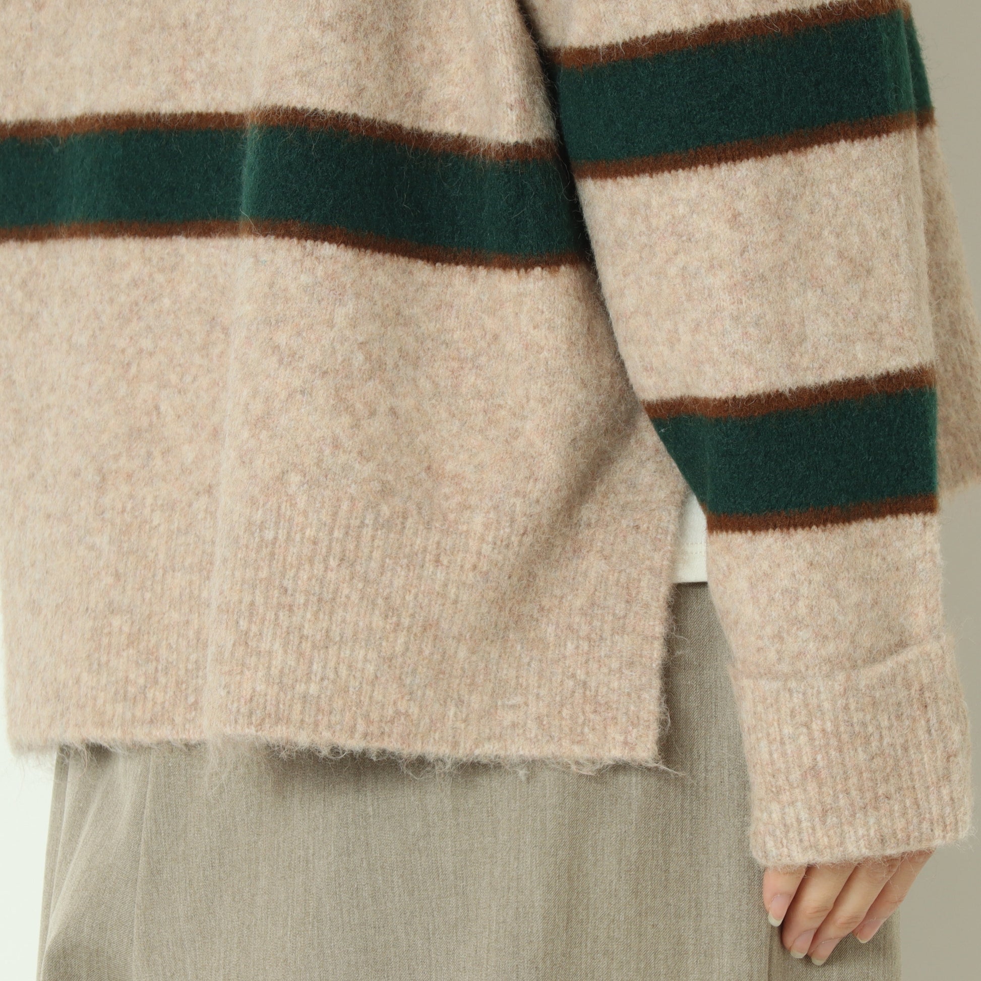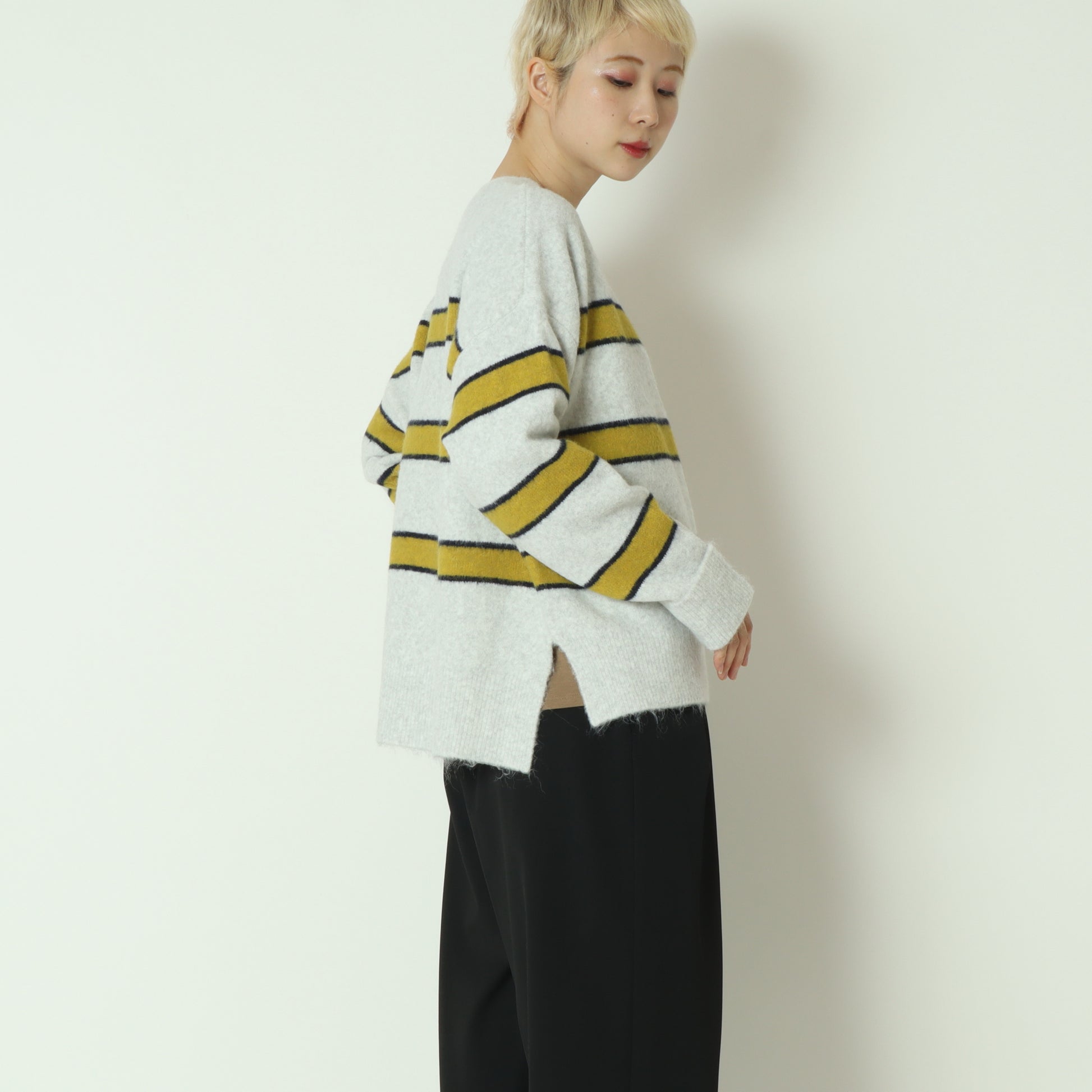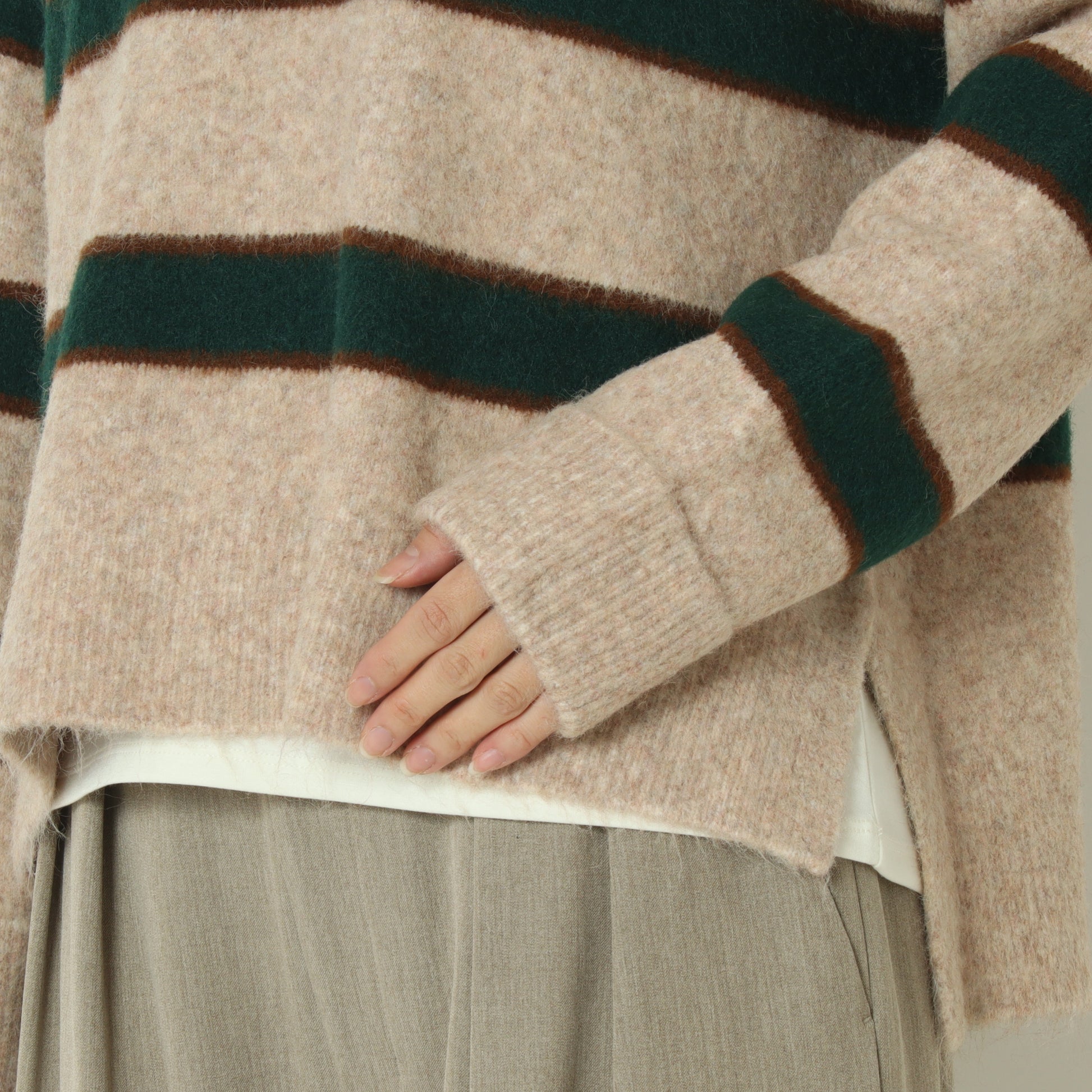 肌触りの良いウール混素材のボーダーニットプルオーバー。