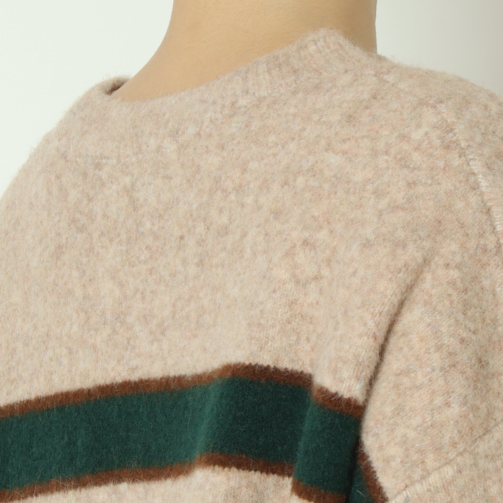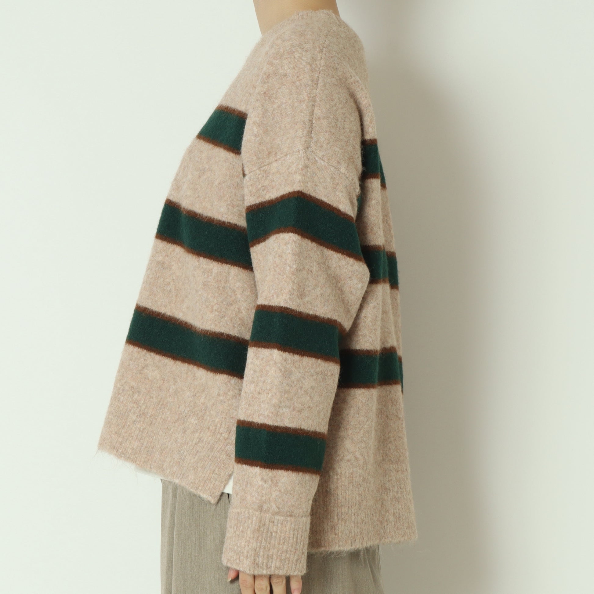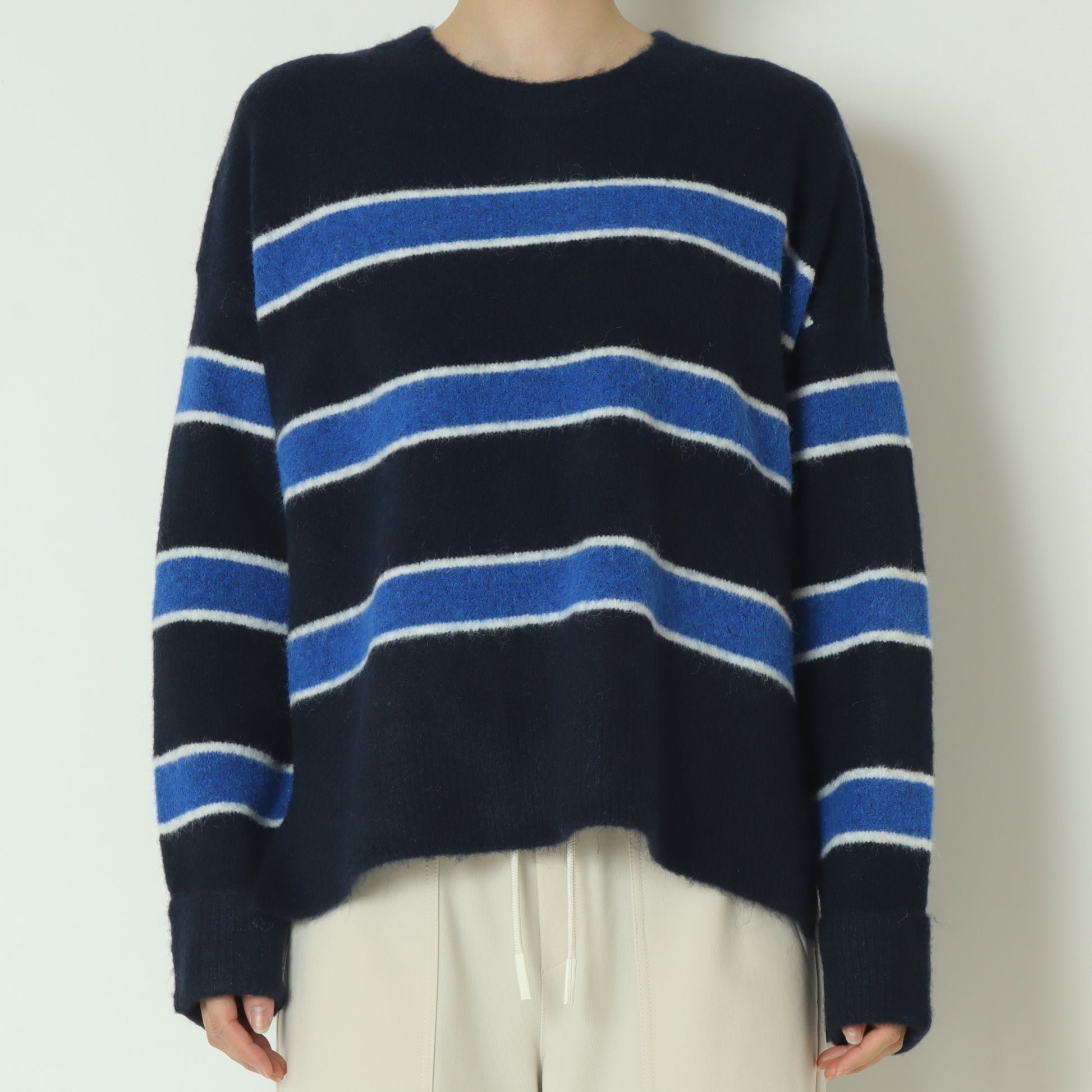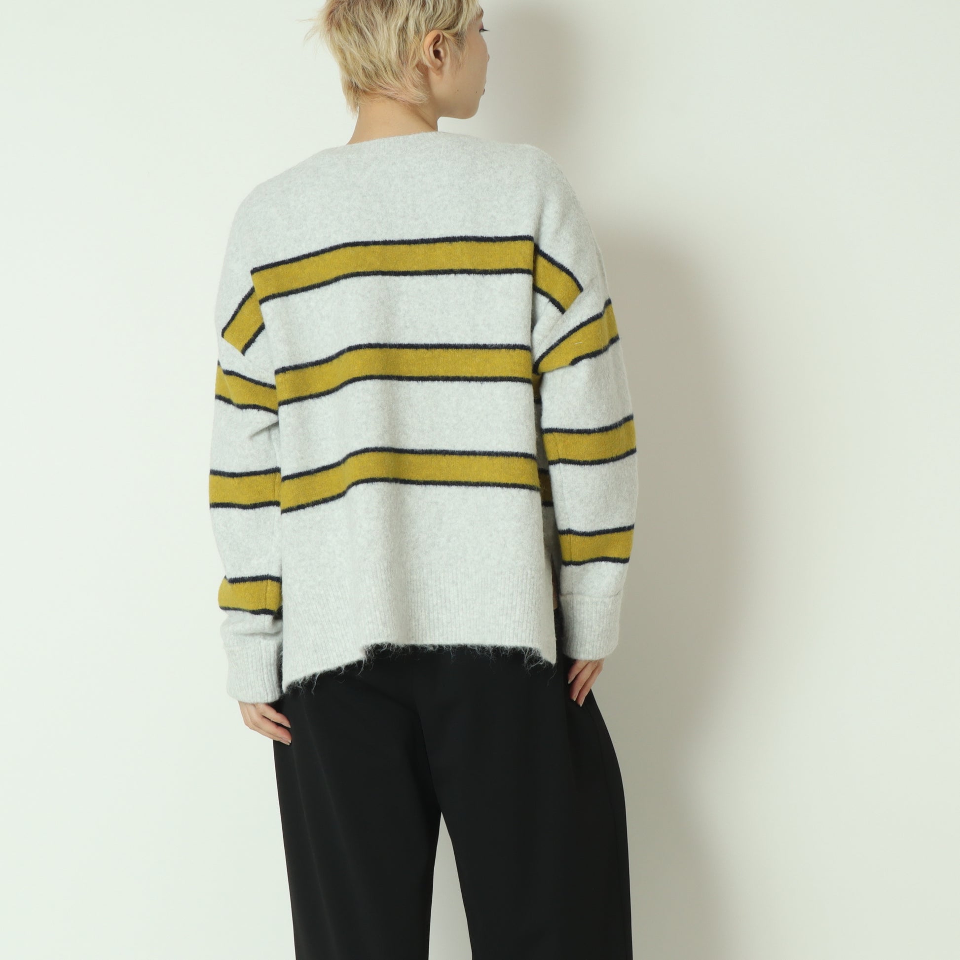 肌触りの良いウール混素材のボーダーニットプルオーバー。