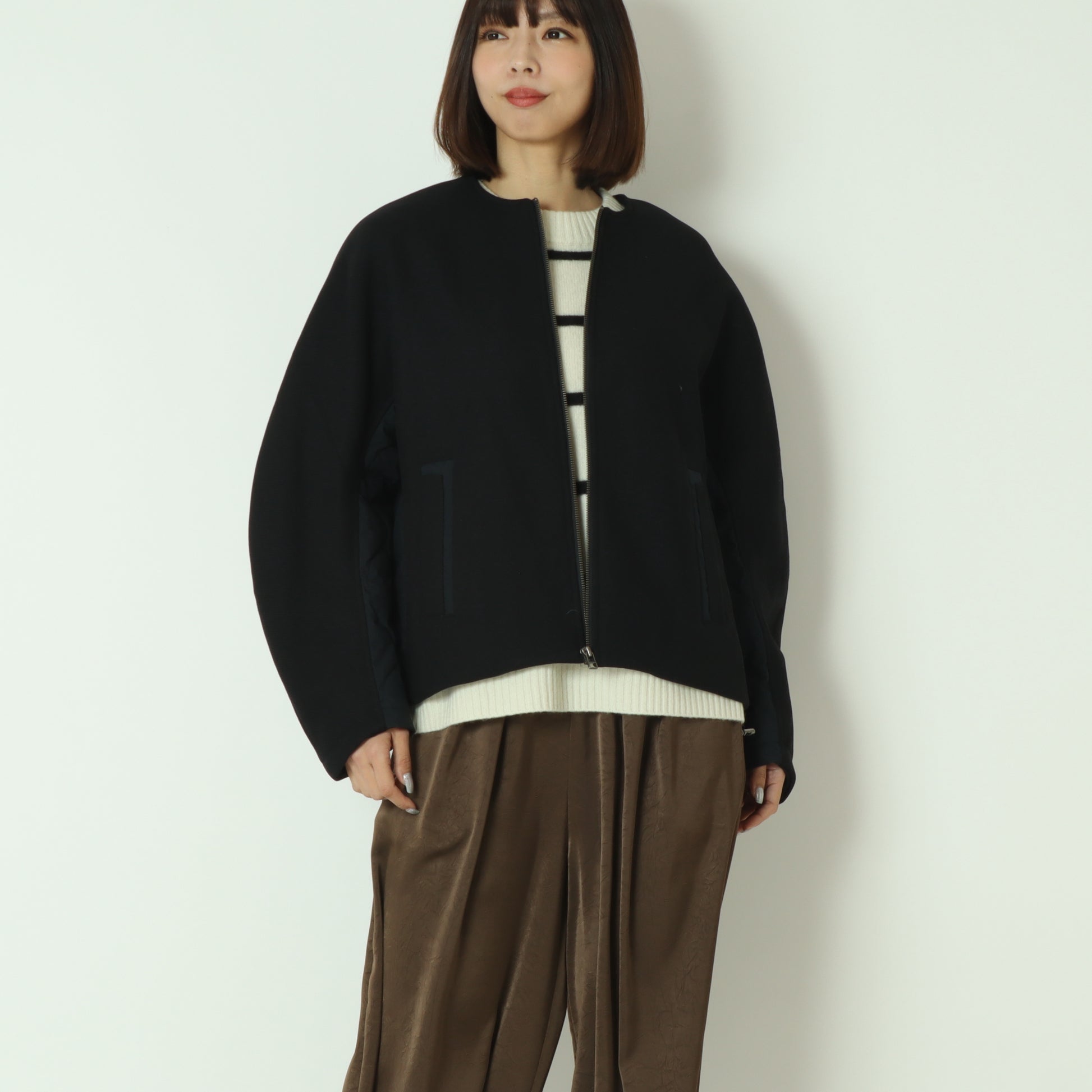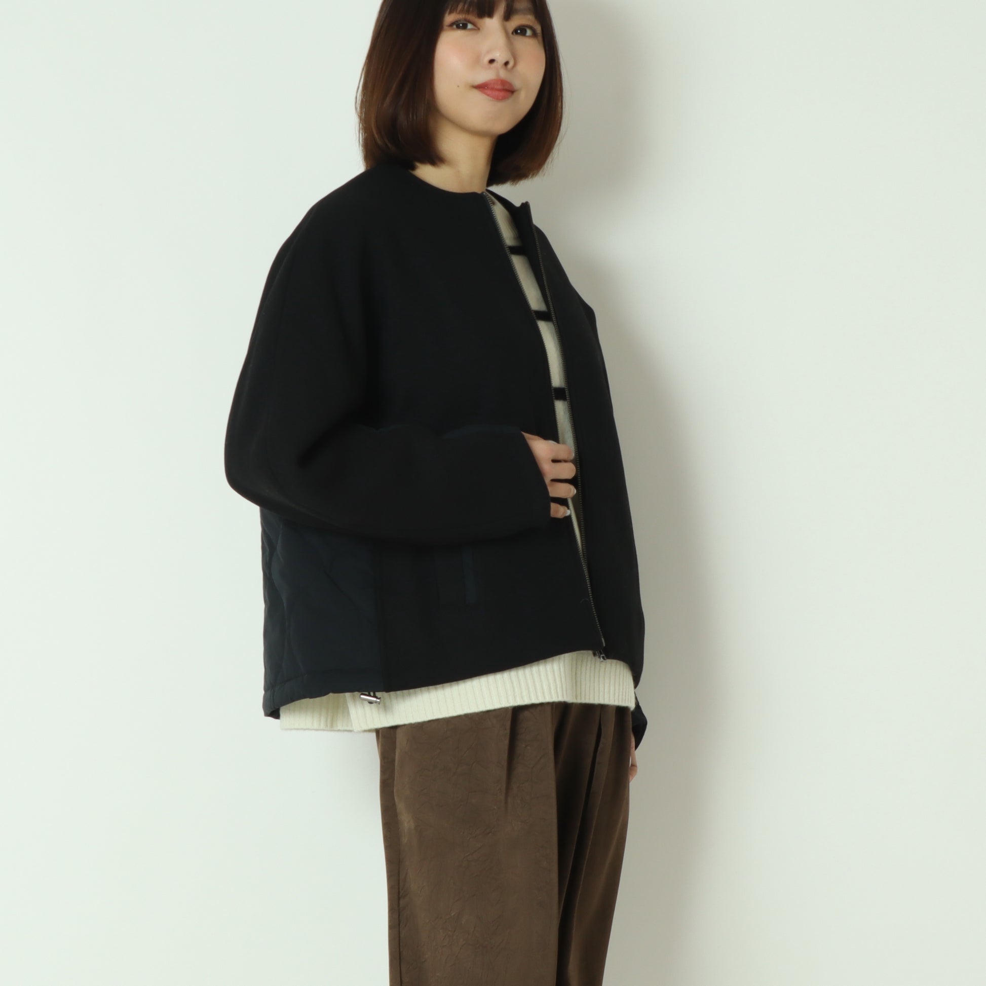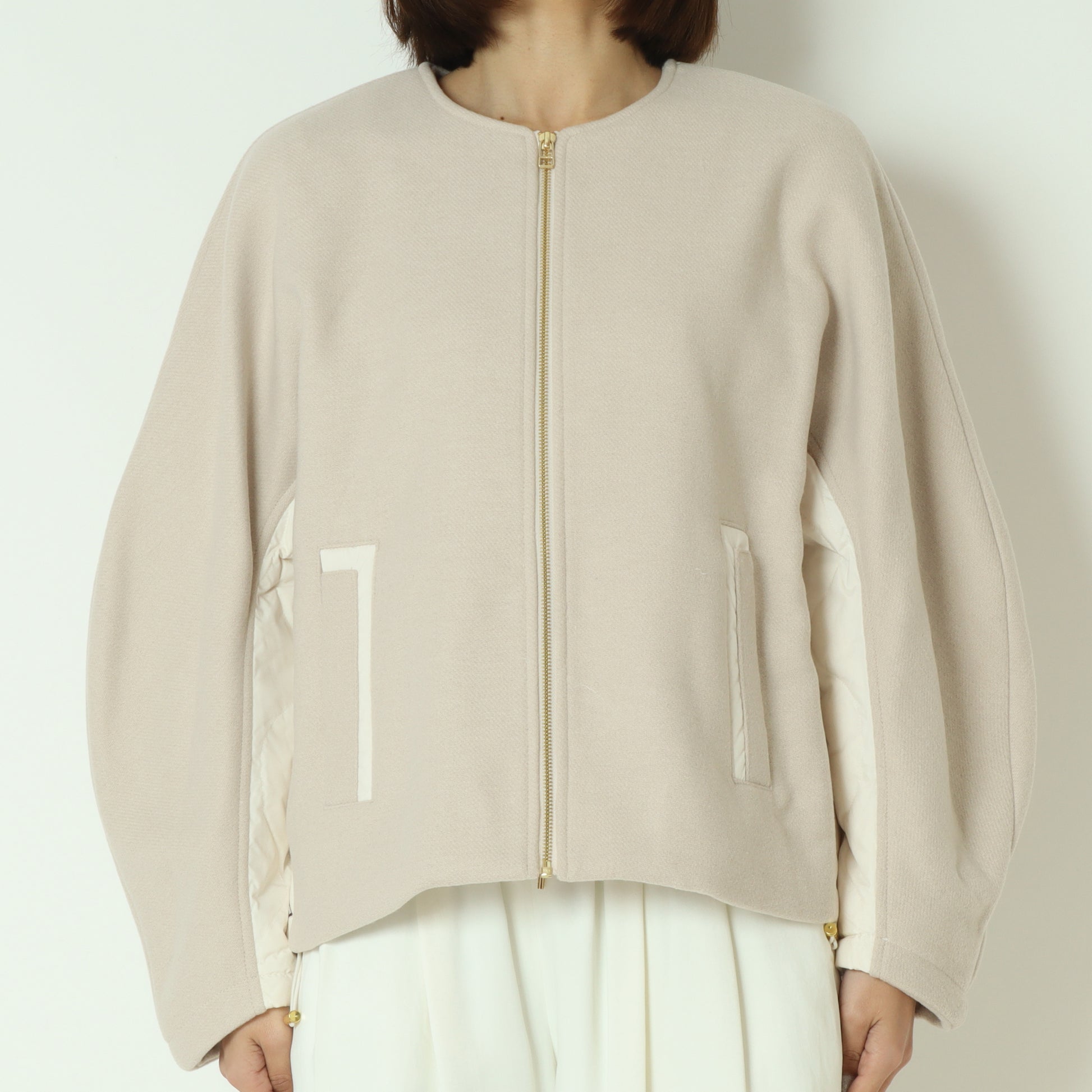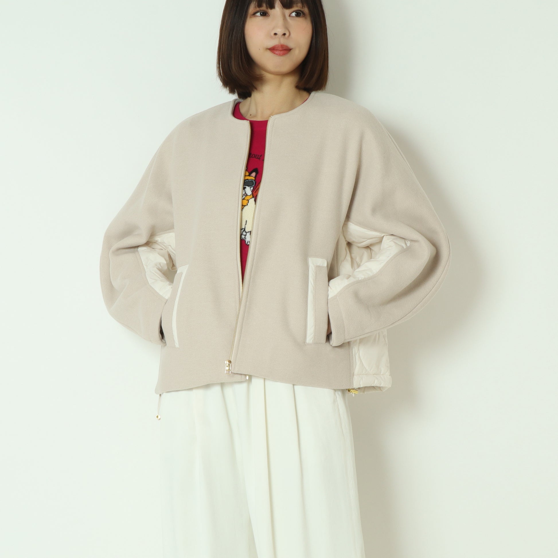 ウール×ピュアダウンノーカラージャケット DR252-006