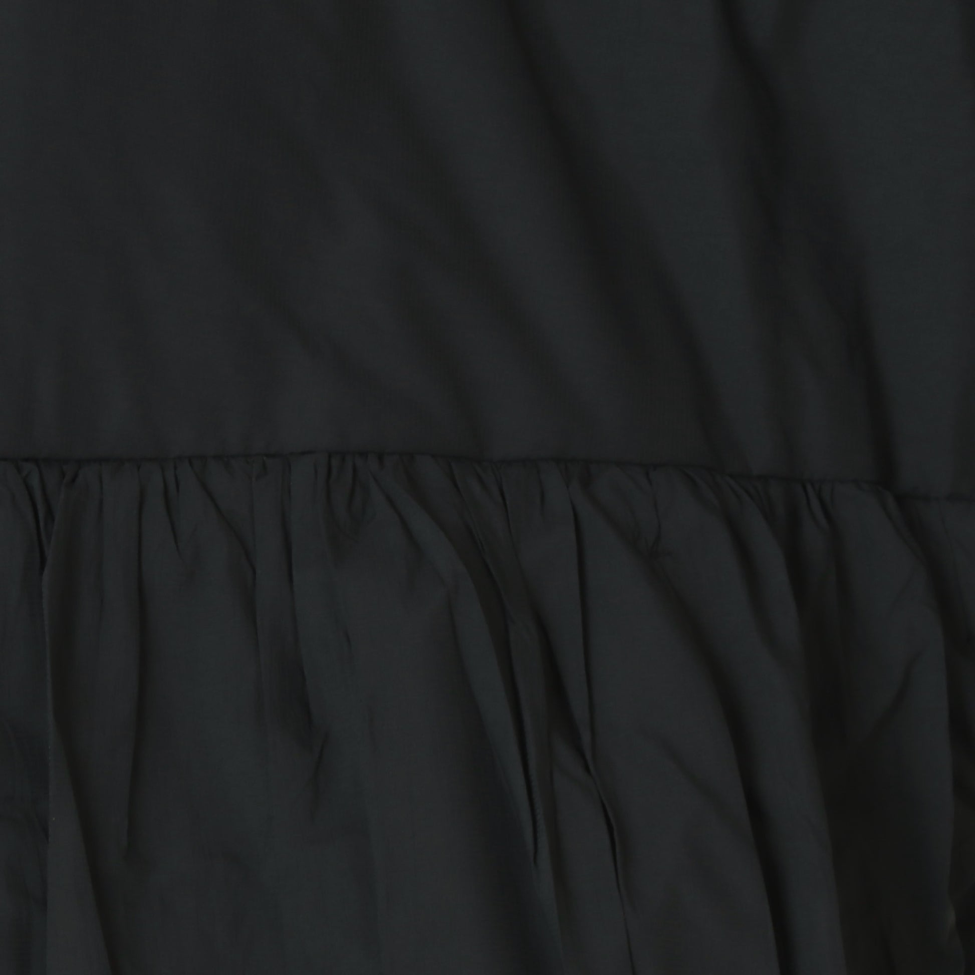 ティアード切替と背面から袖口まで施した繊細なギャザーが特徴的です。
