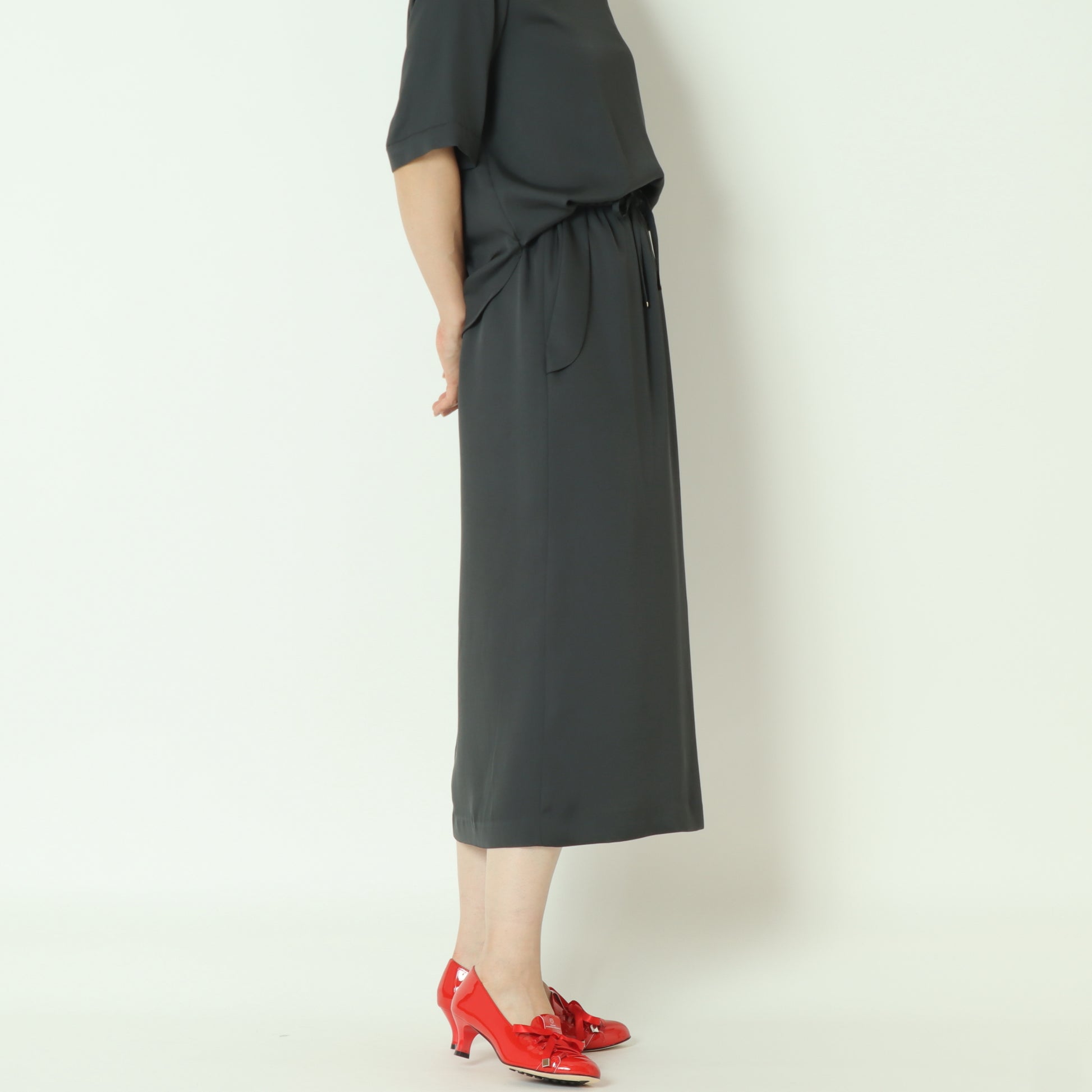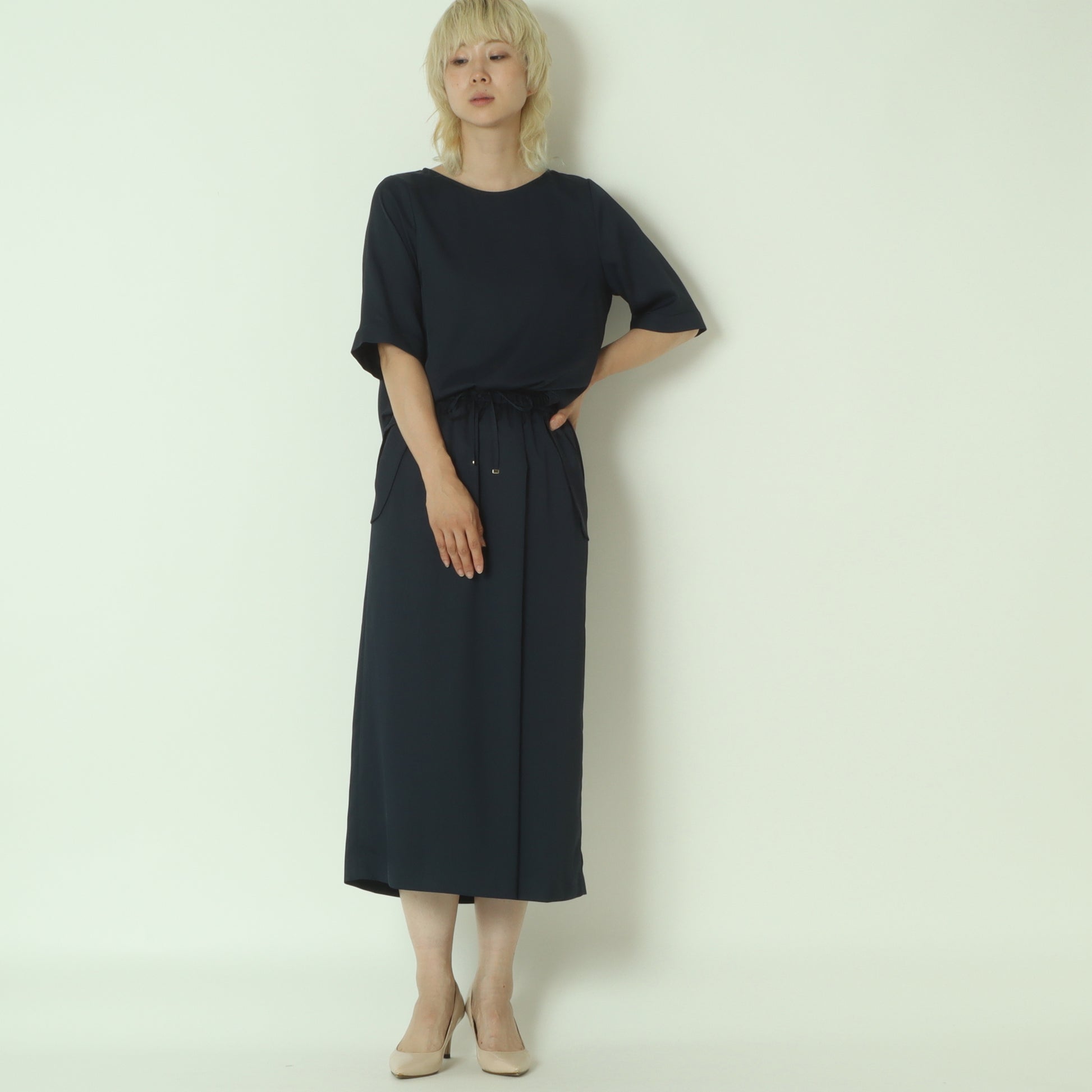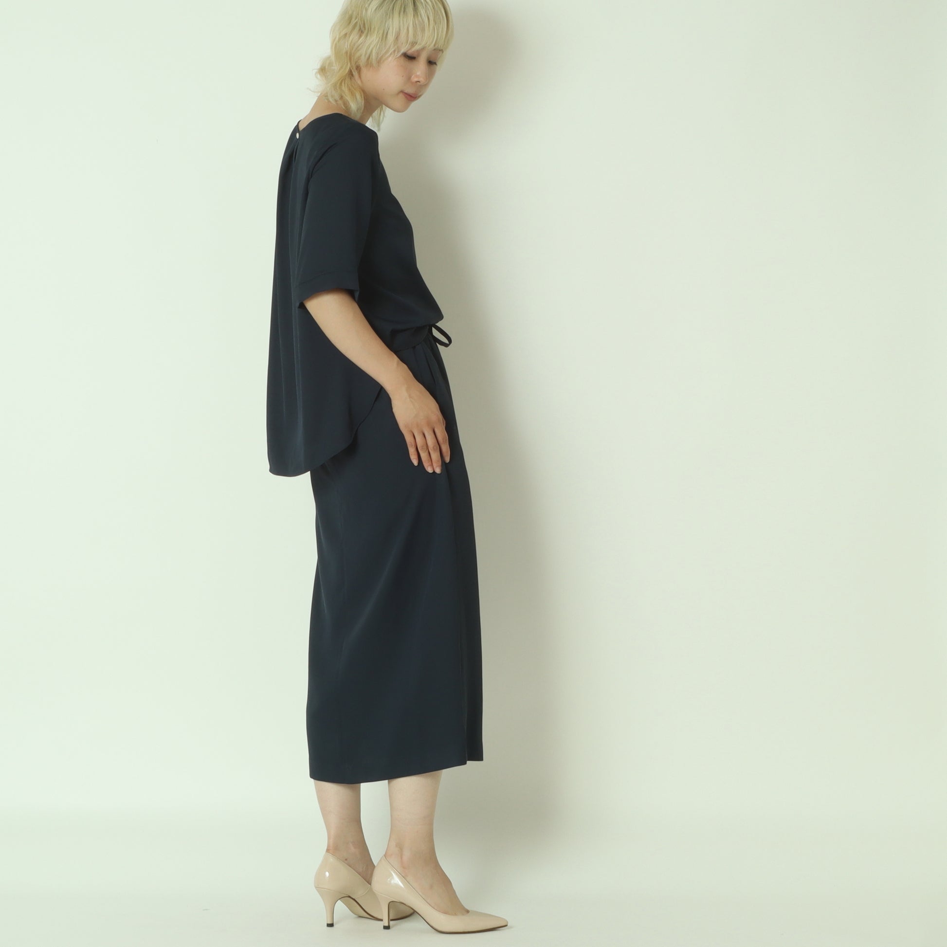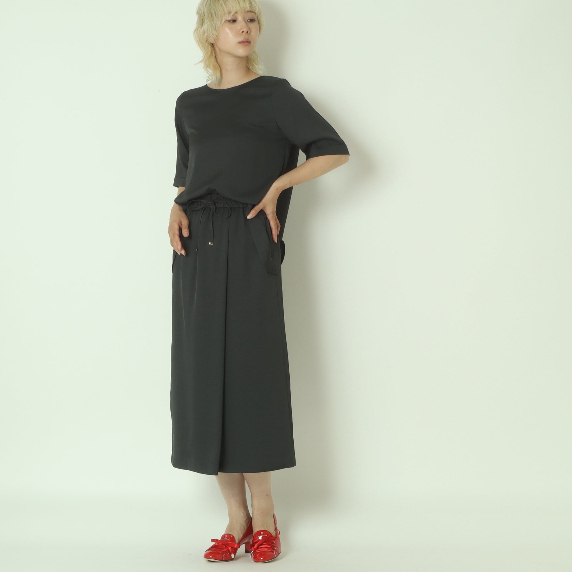 フロントの重ねたようなタックデザインとタイトなシルエットが大人っぽい上品な雰囲気を演出。
