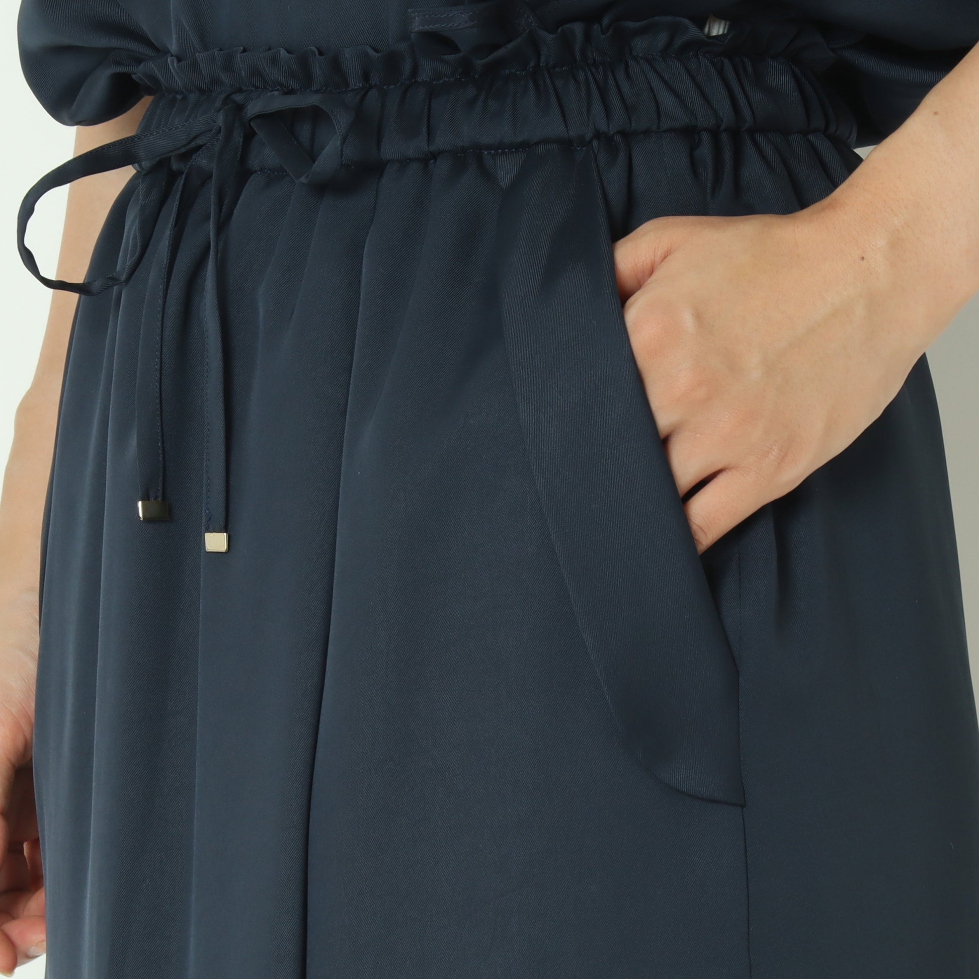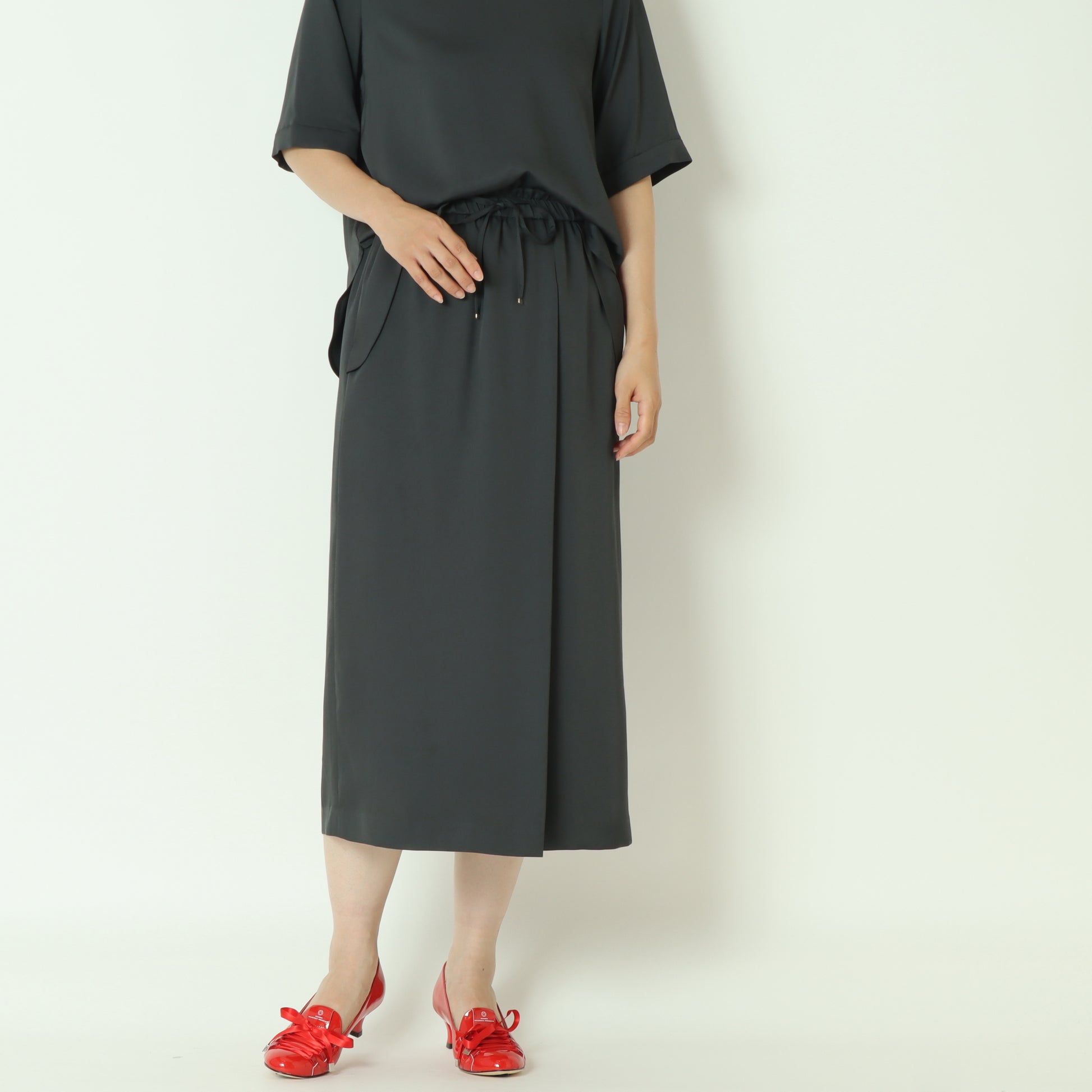 滑らかな絹のように光沢のあるサテン素材を使用したスカート。