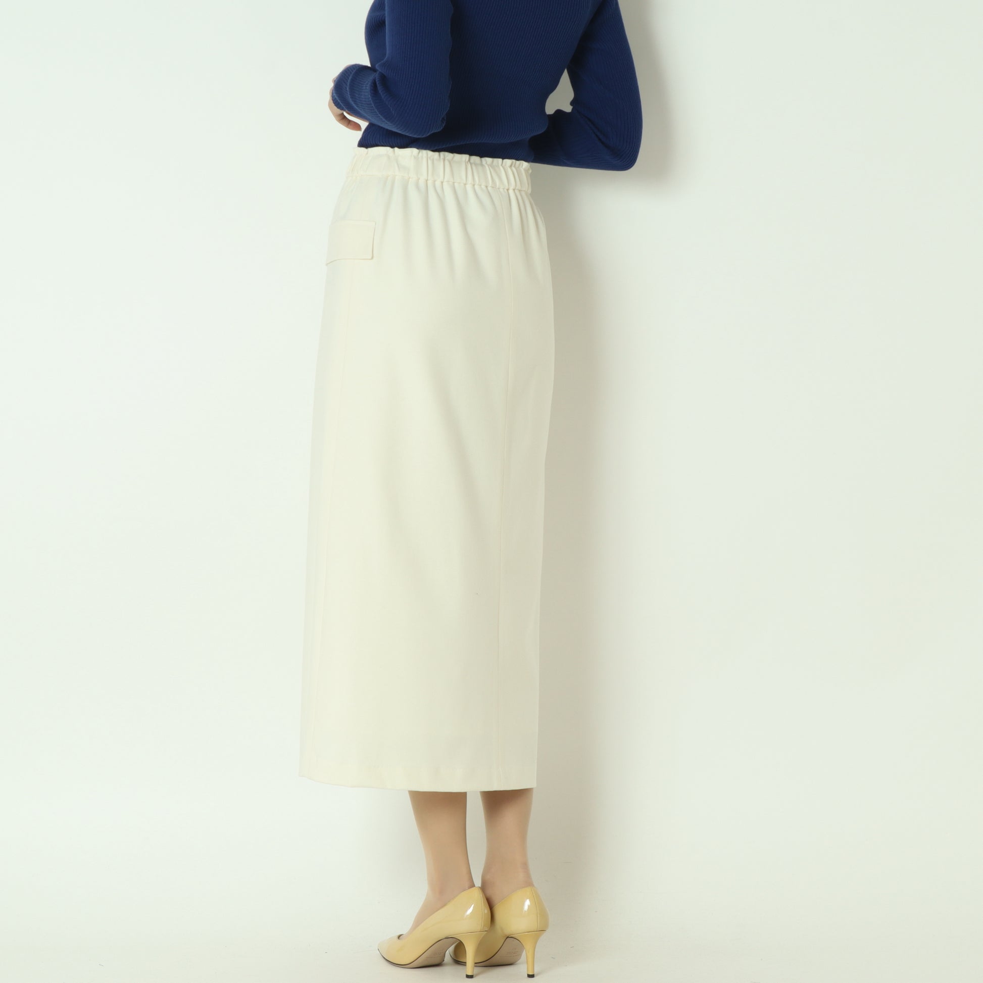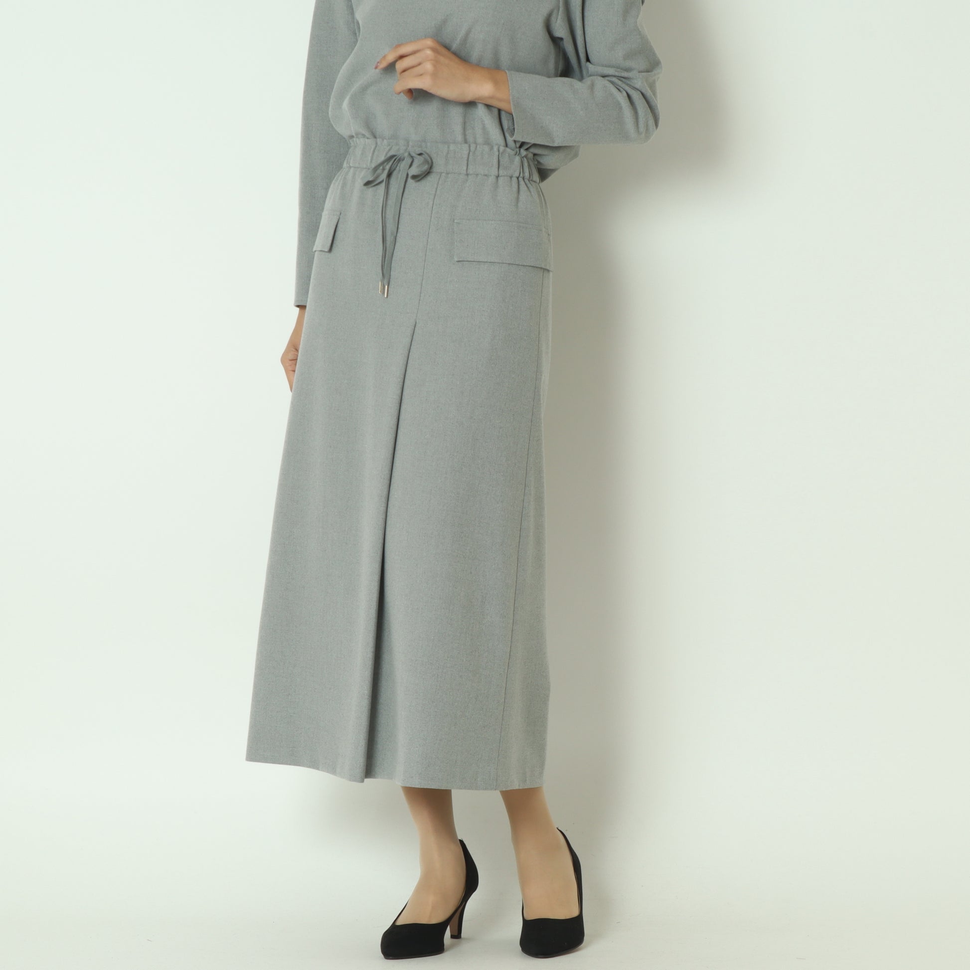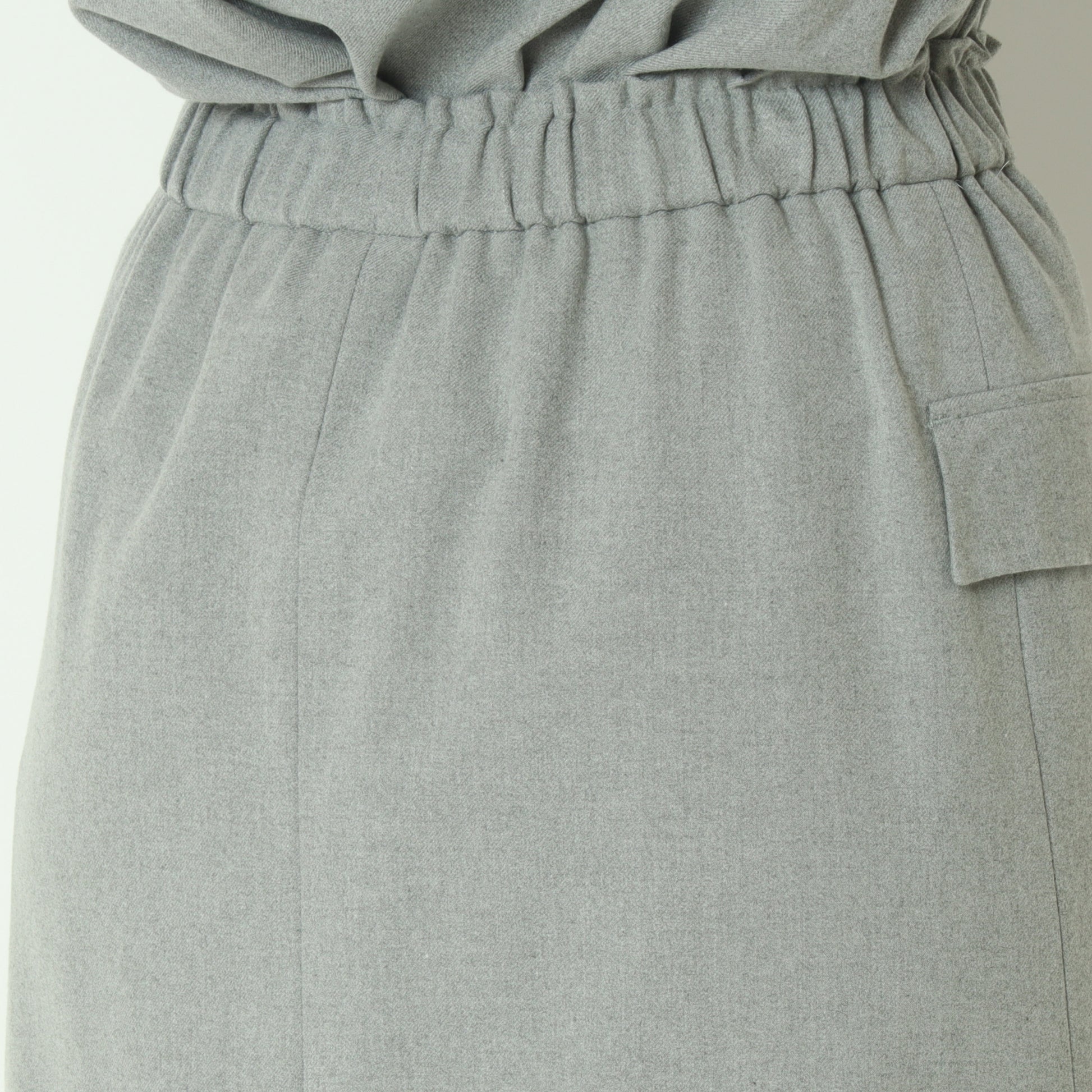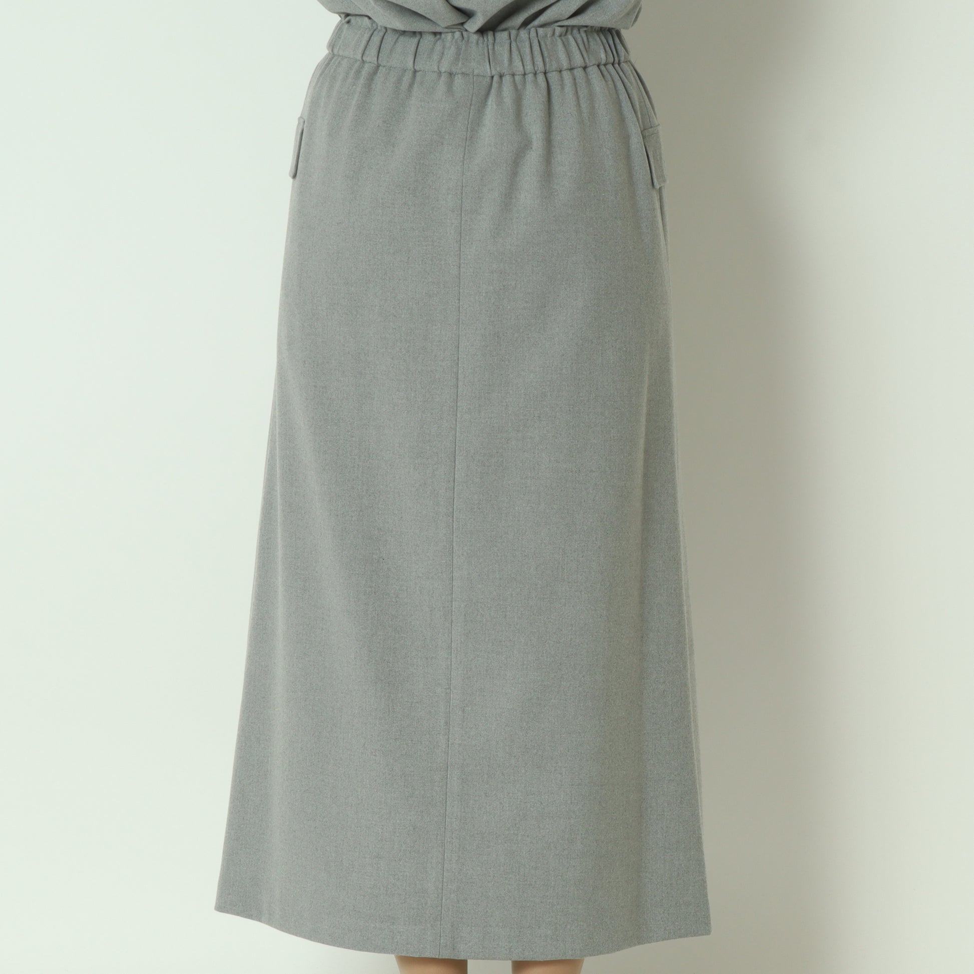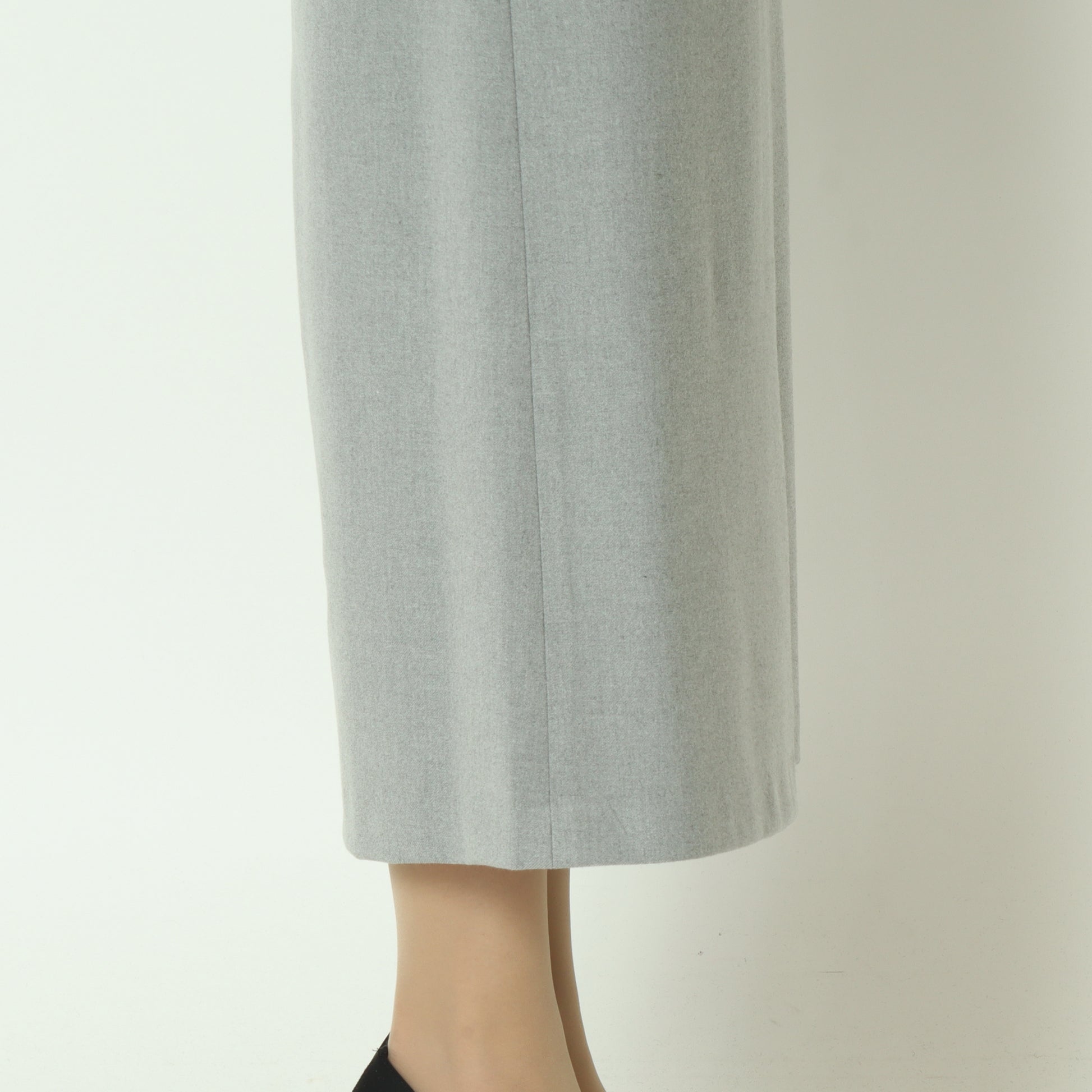 両面微起毛のなめらかな素材を使用したフラップ付きタイトスカート。