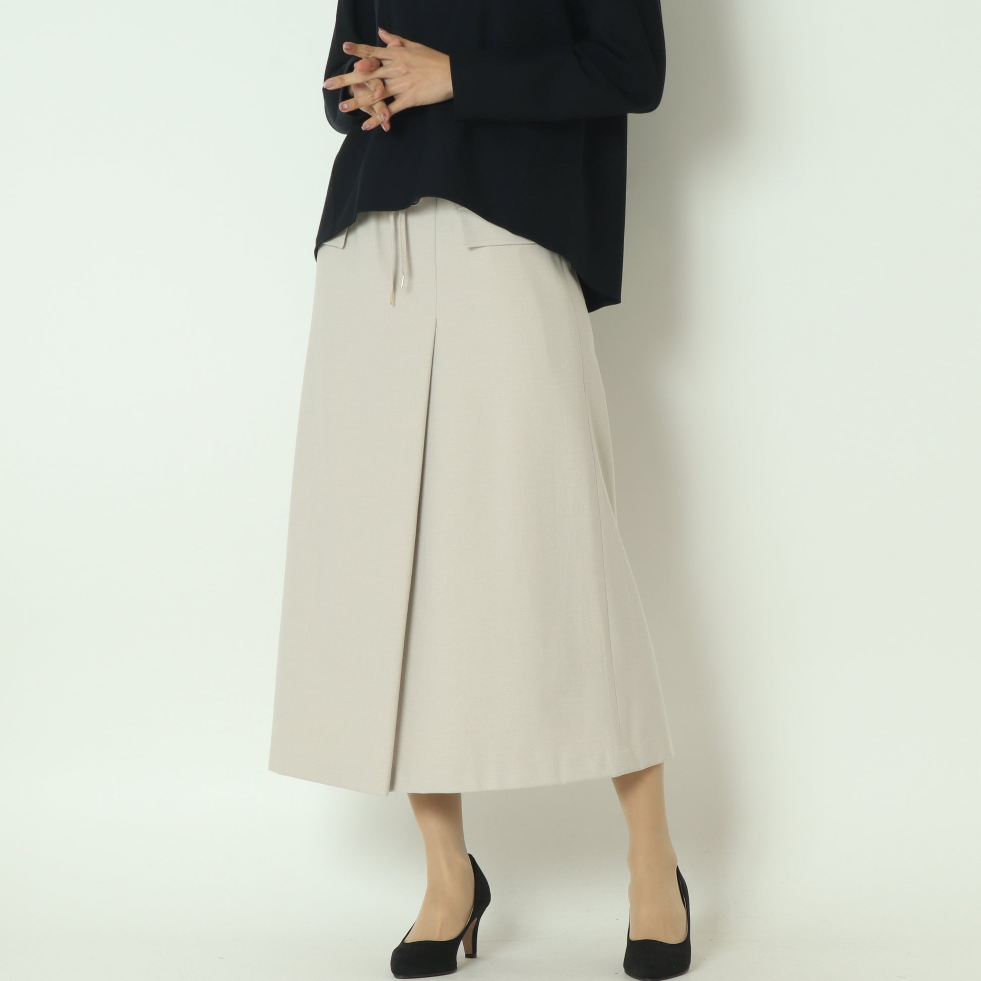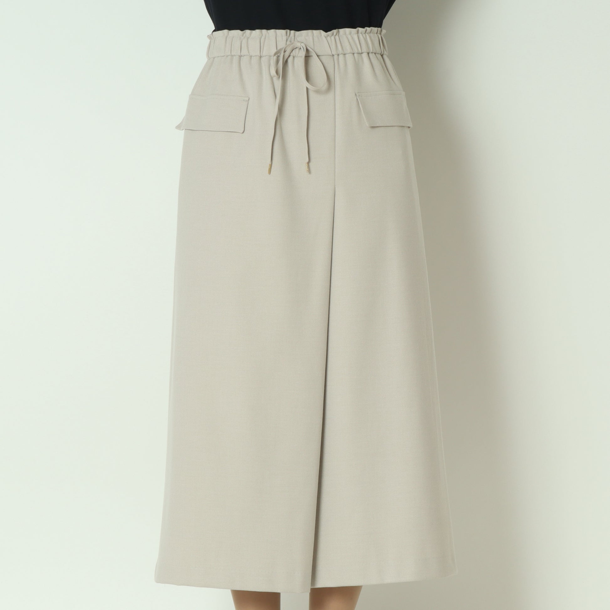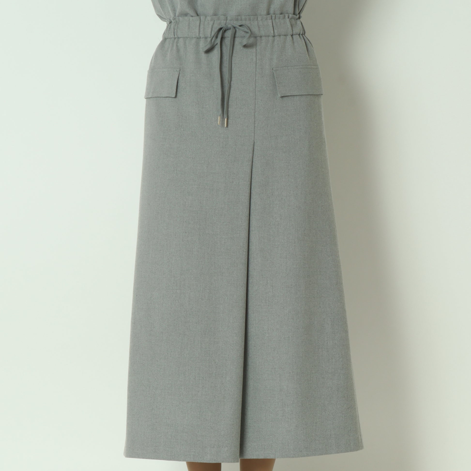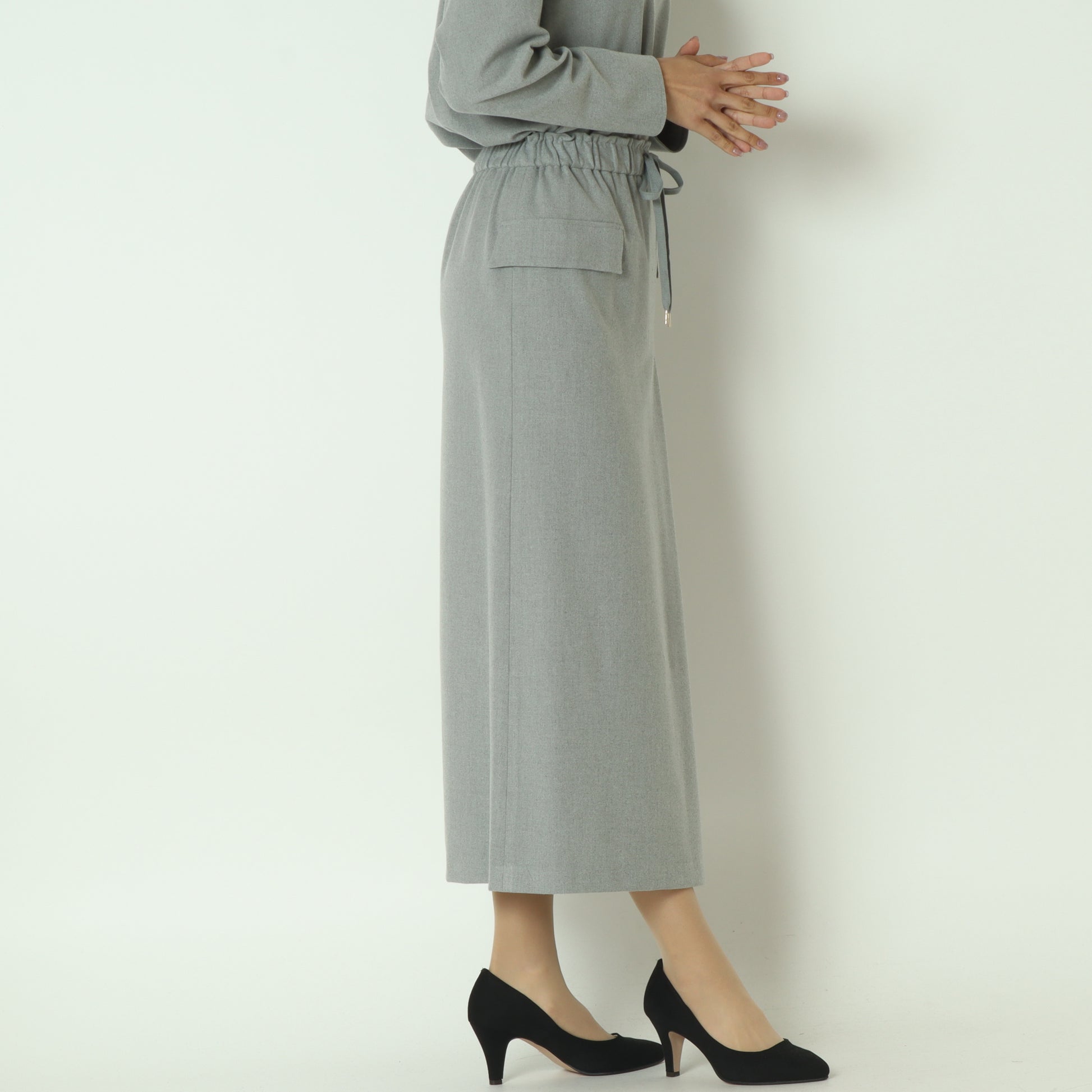 両面微起毛のなめらかな素材を使用したフラップ付きタイトスカート。