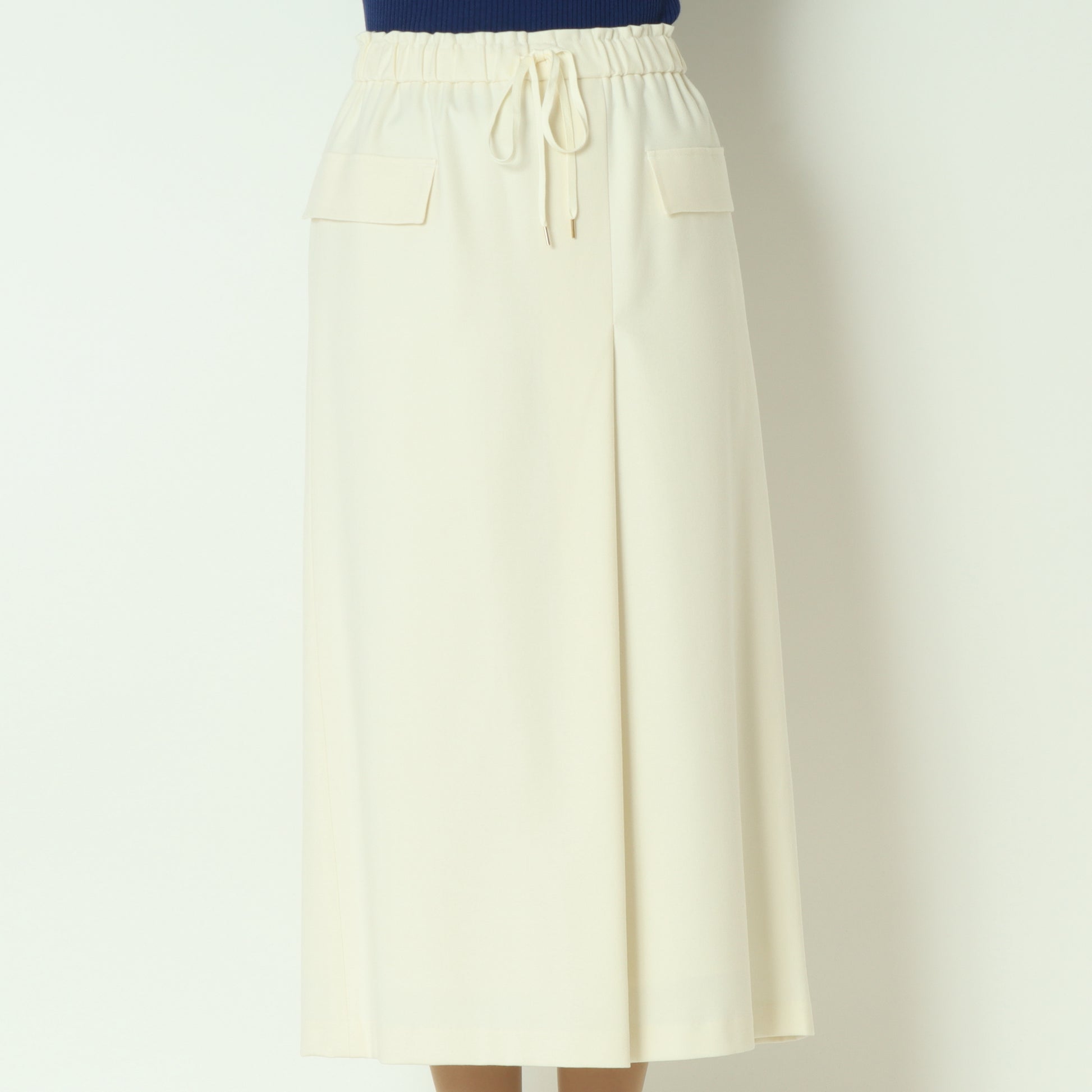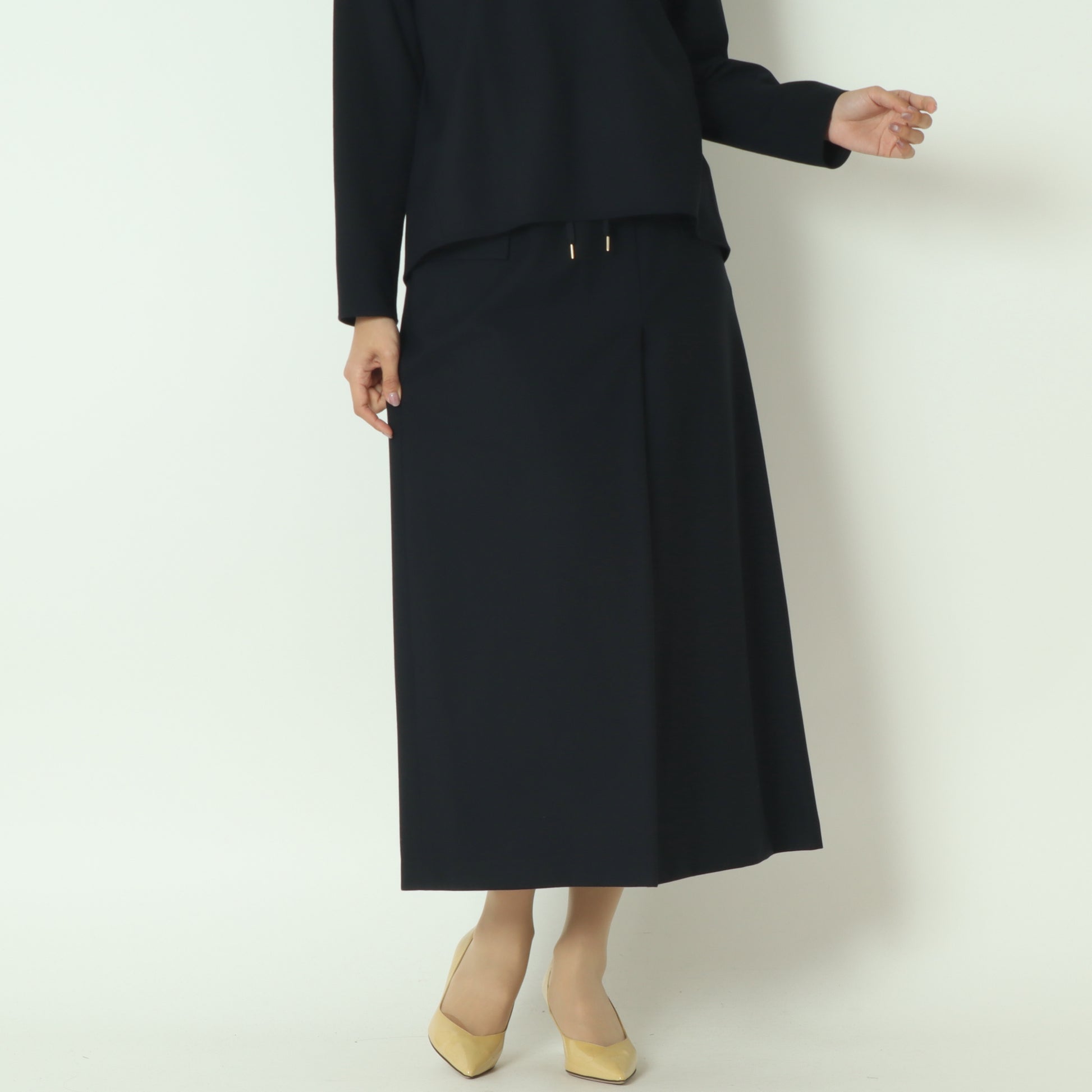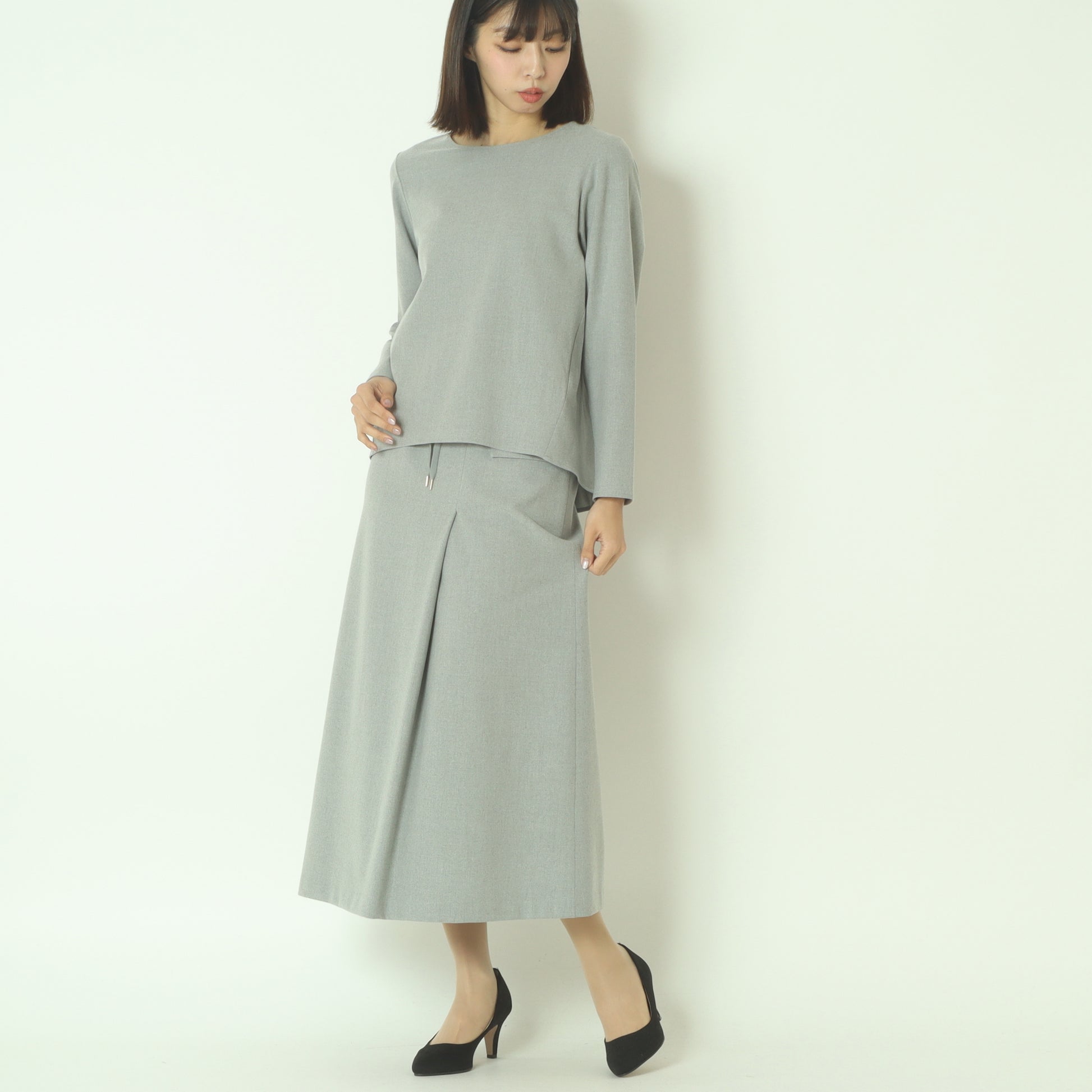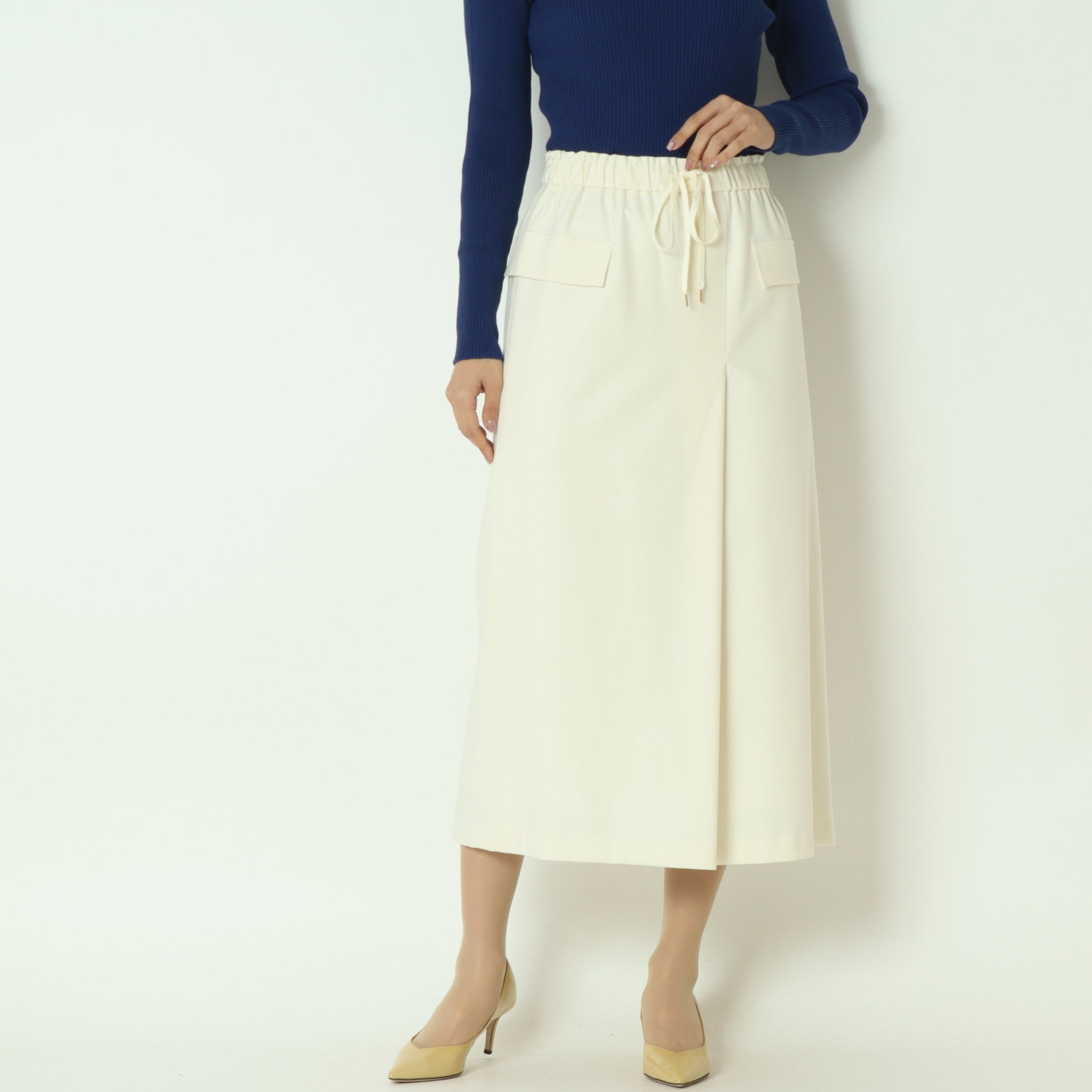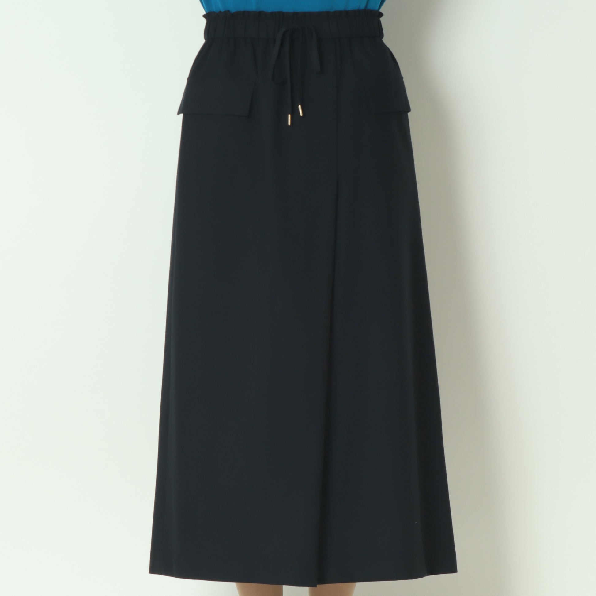 両面微起毛のなめらかな素材を使用したフラップ付きタイトスカート。
