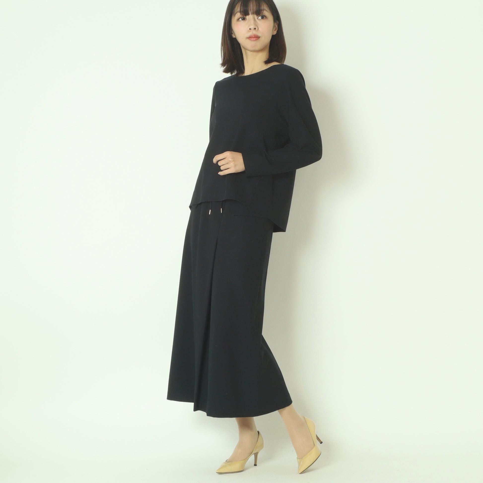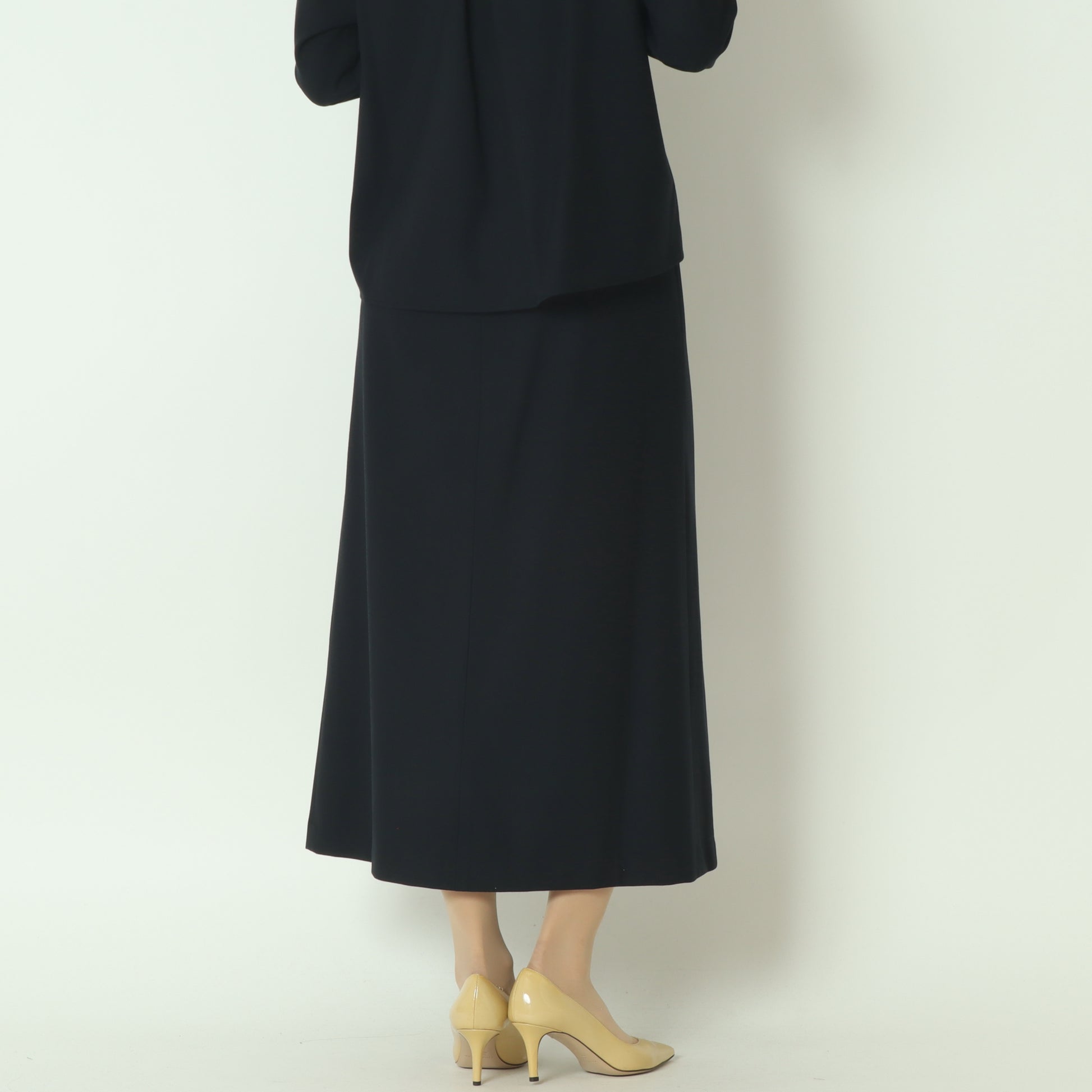 ヒップラインを拾いすぎないタイトシルエットは後ろ姿も美しく、上品に着ていただけます。