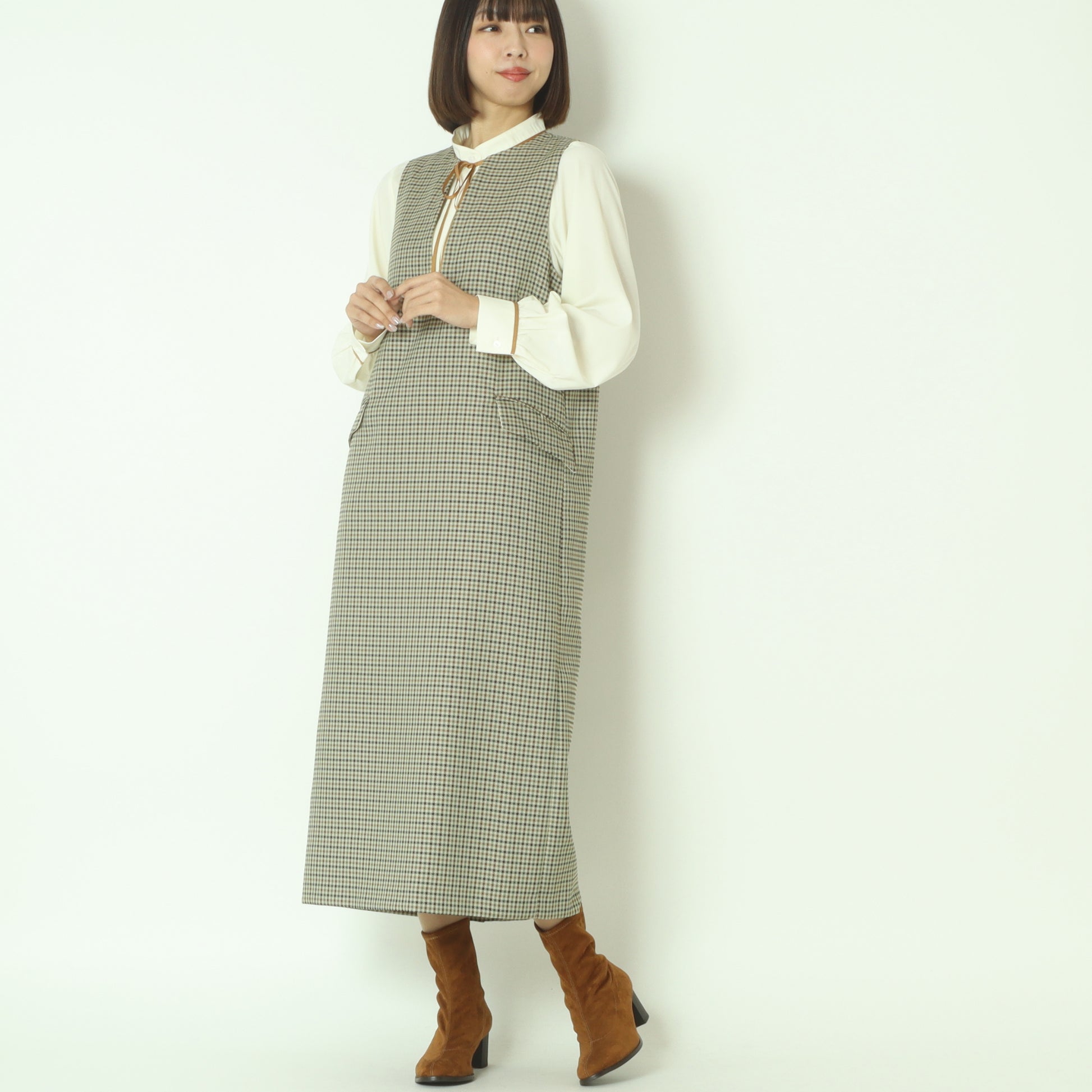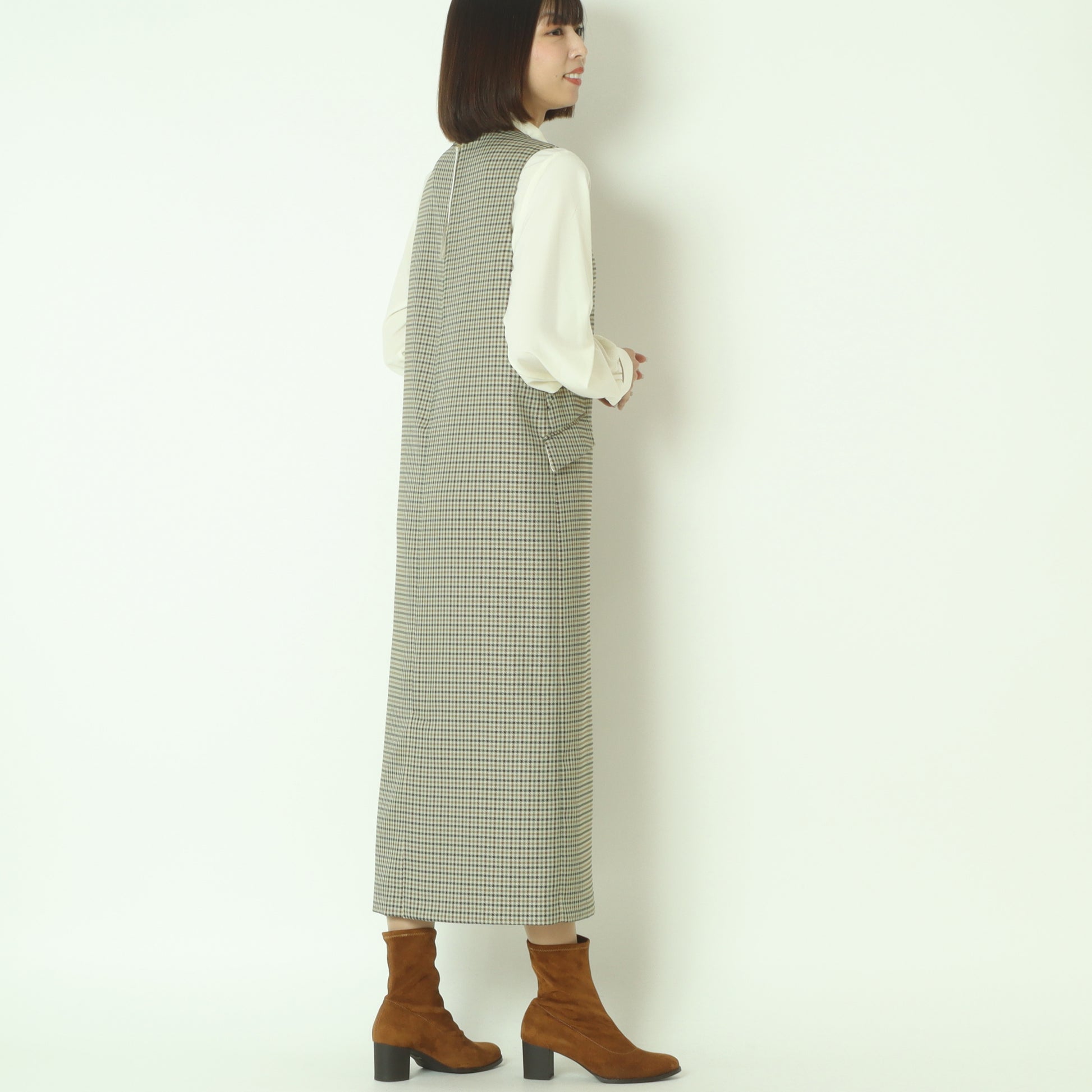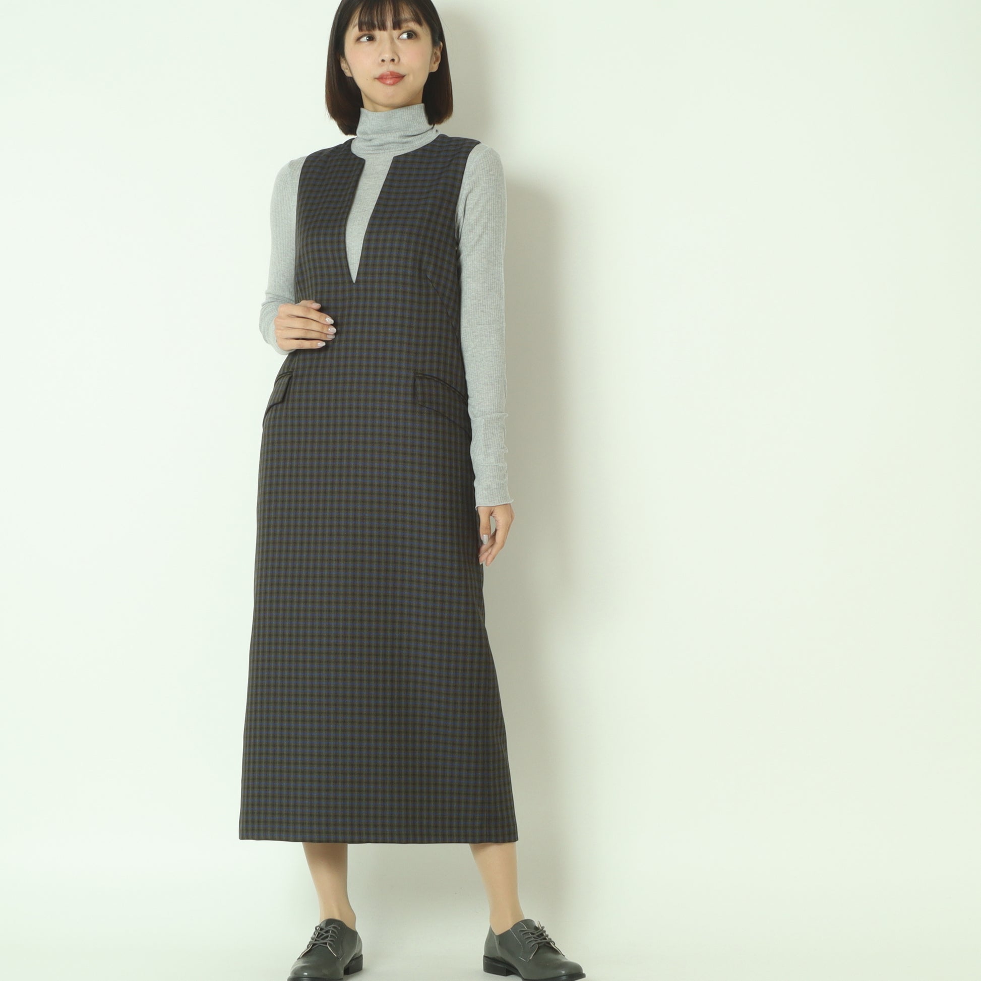 大人可愛い雰囲気のチェック柄ジャンパースカート。