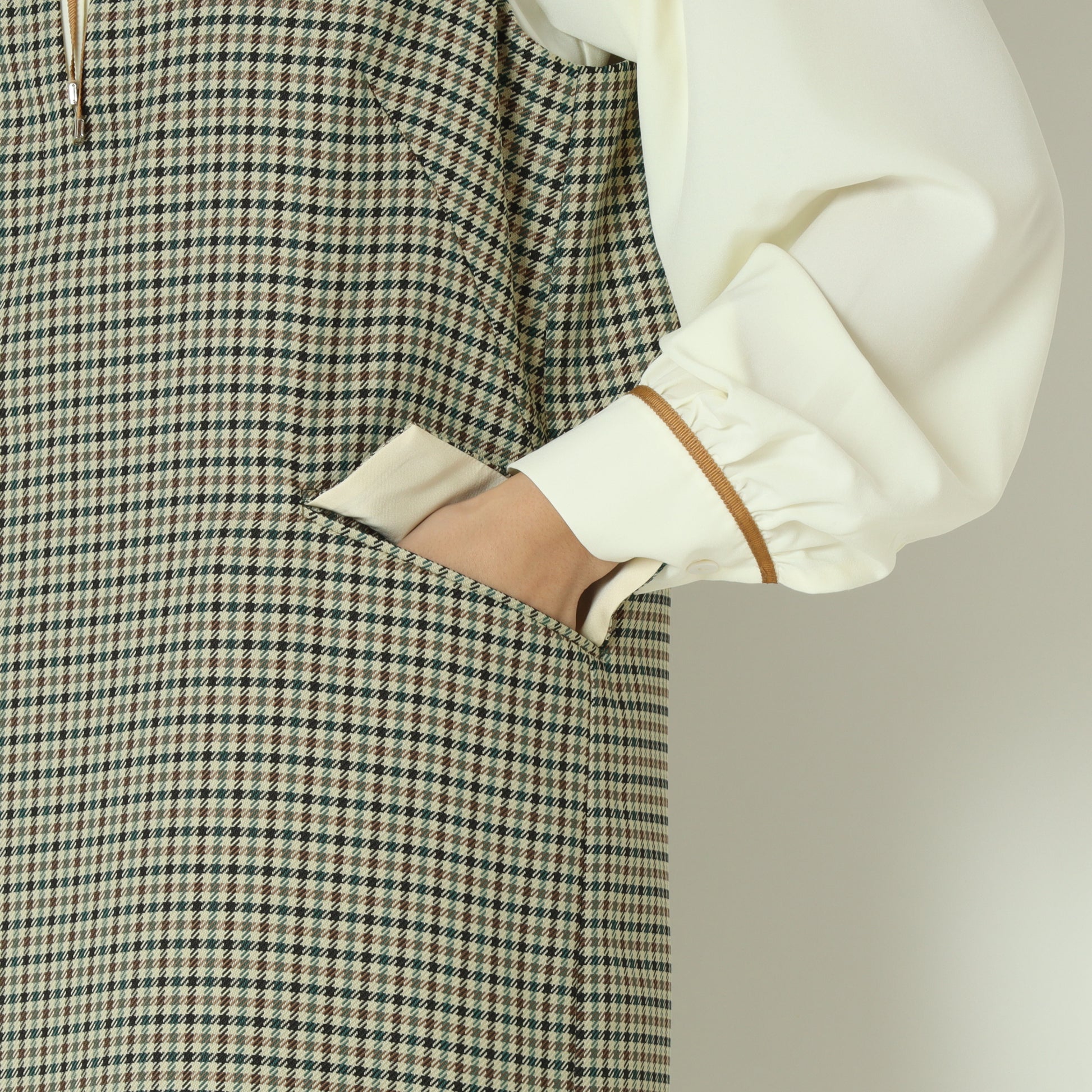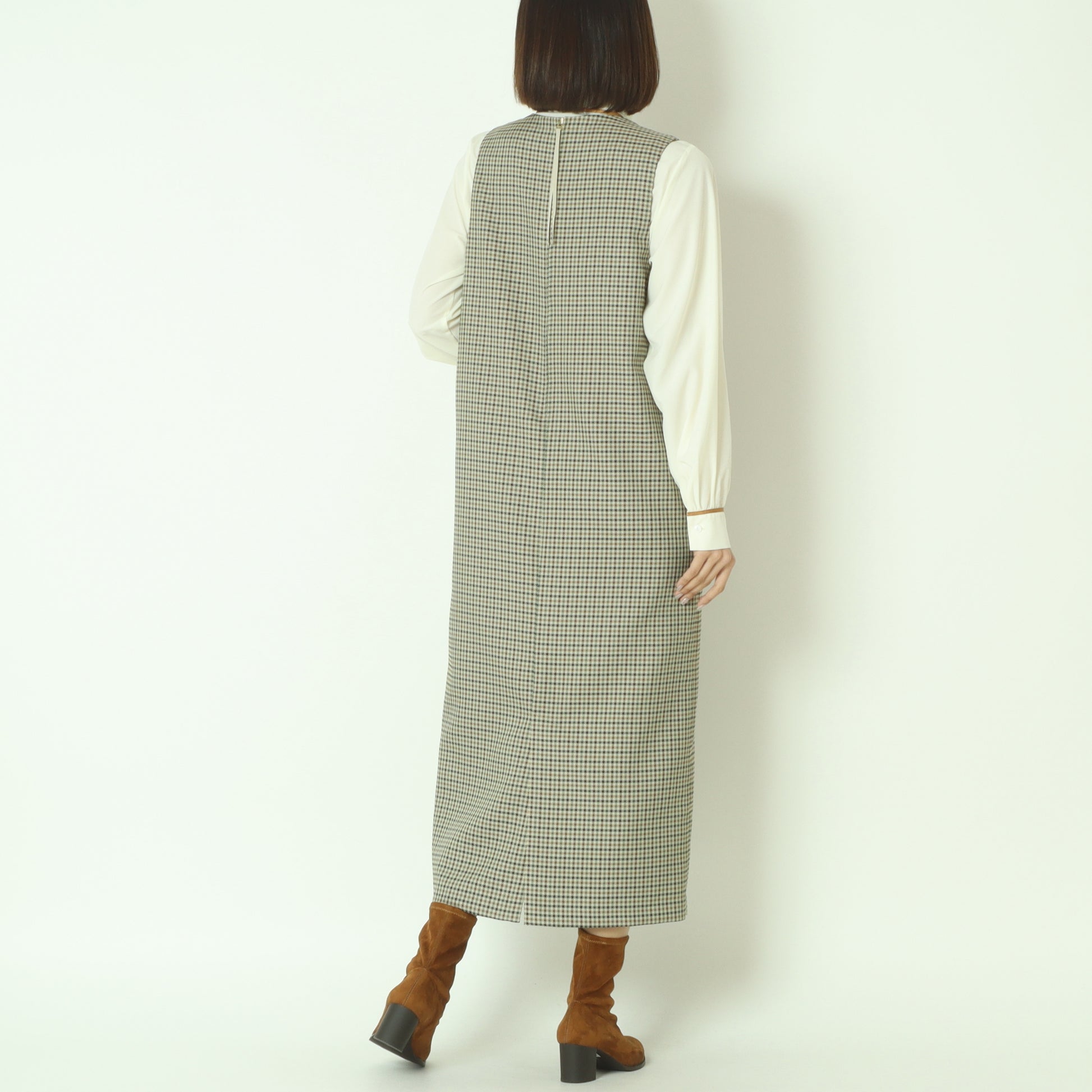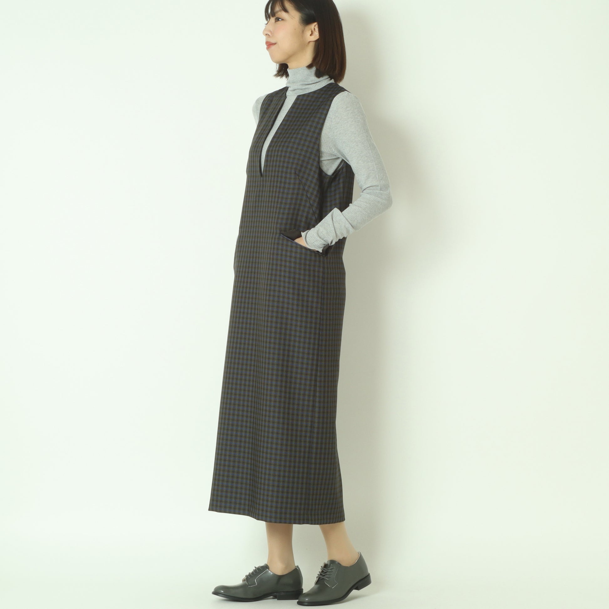 大人可愛い雰囲気のチェック柄ジャンパースカート。