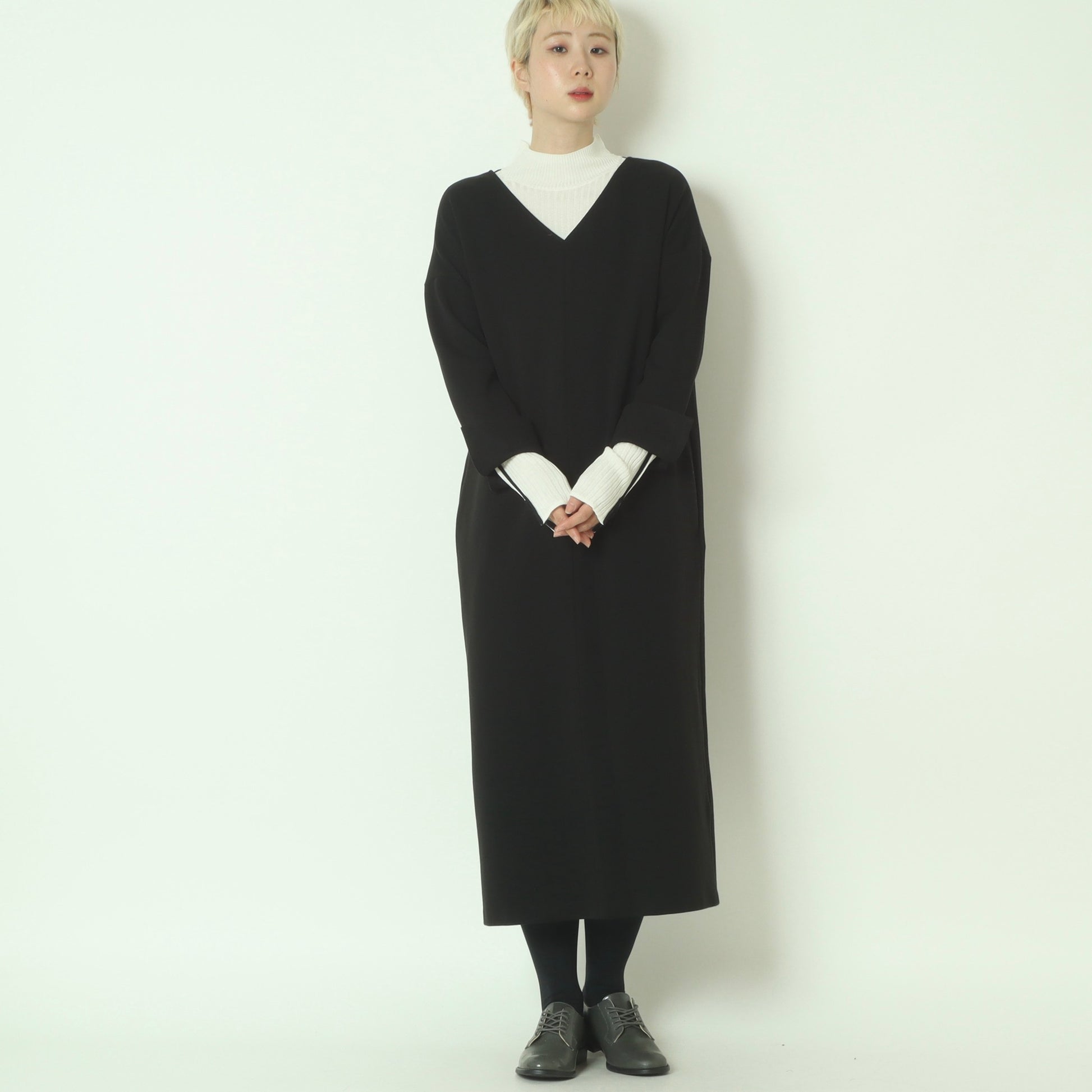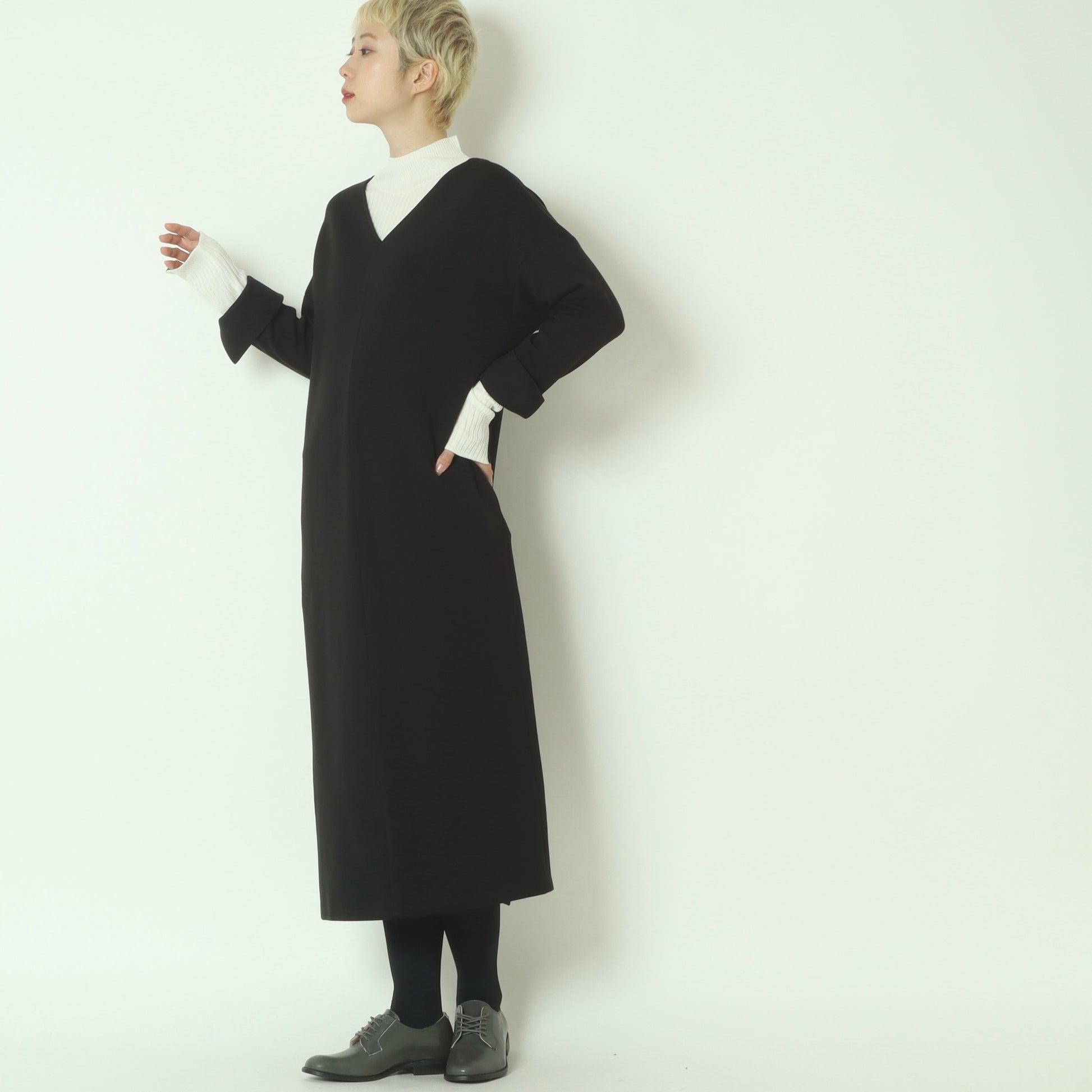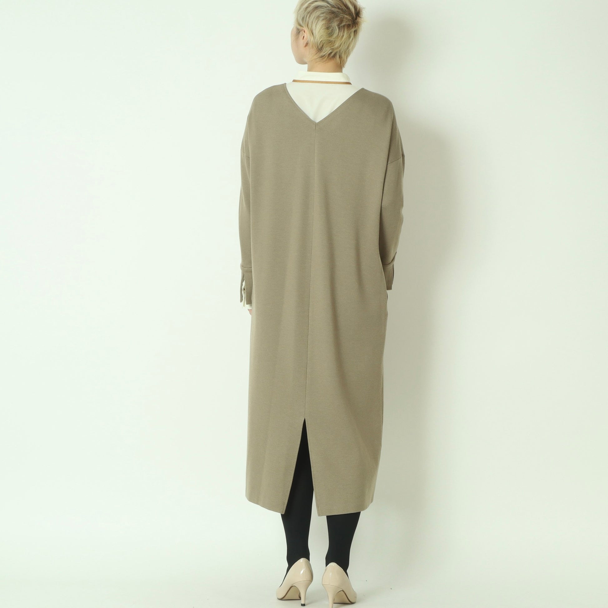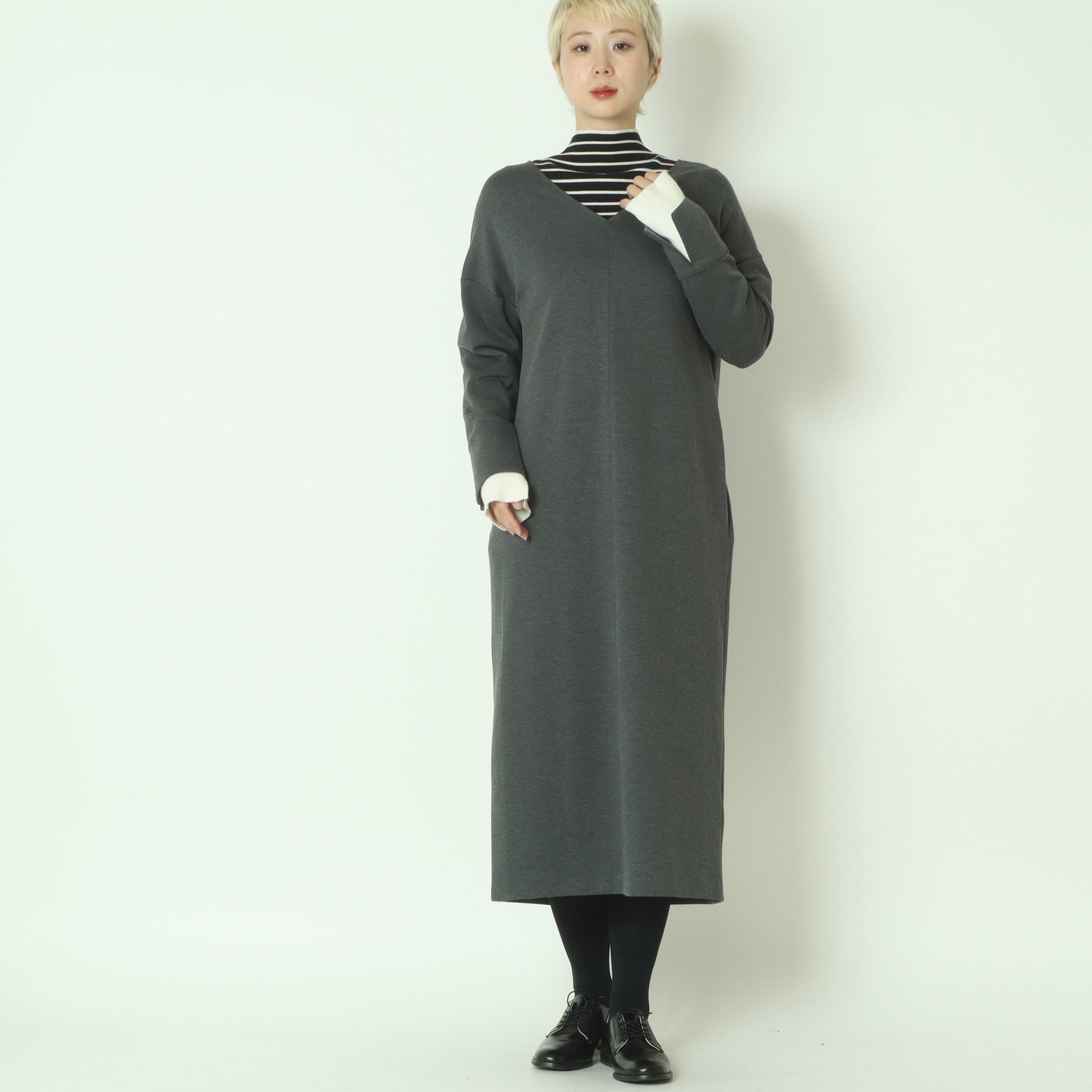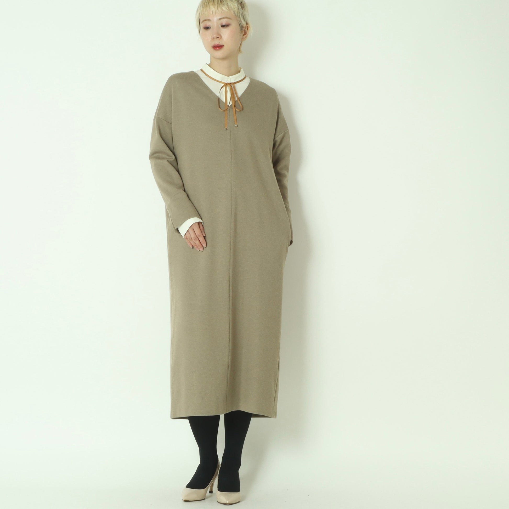 落ち着いた佇まいが印象的なVネックロングスリーブワンピース。