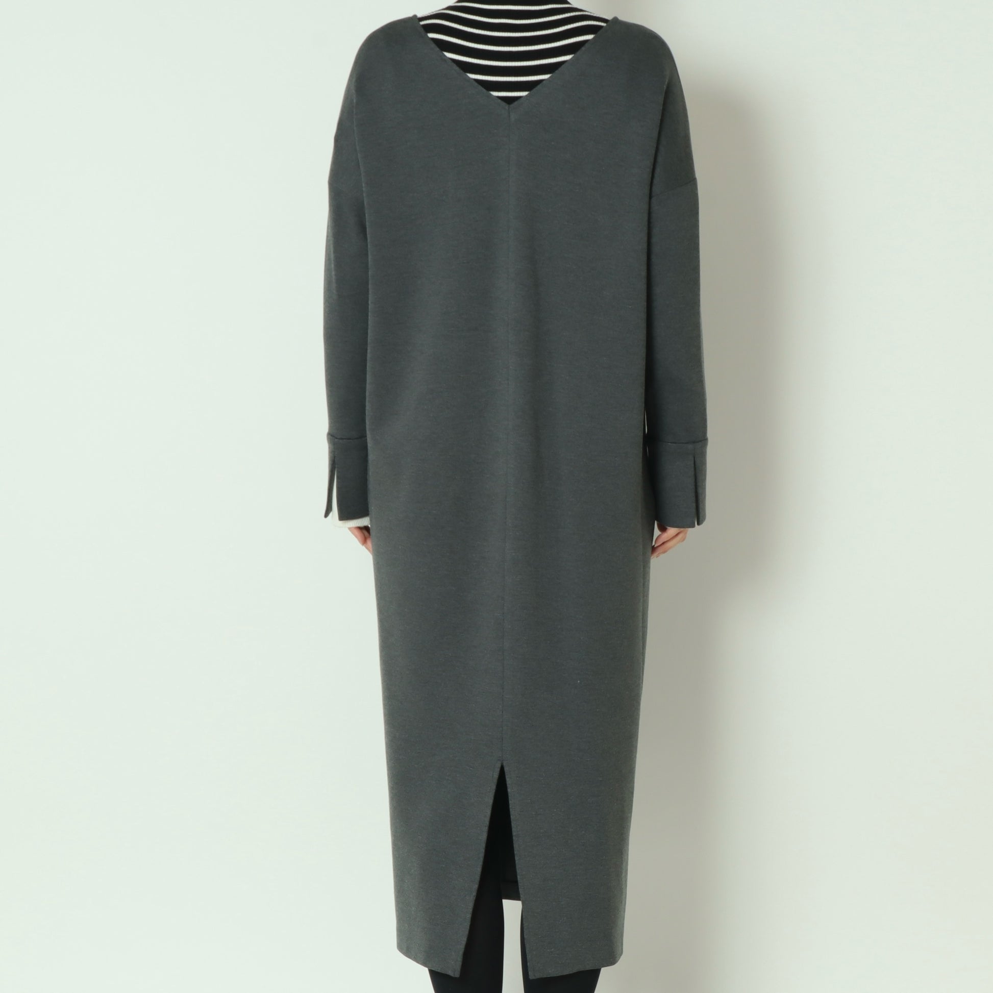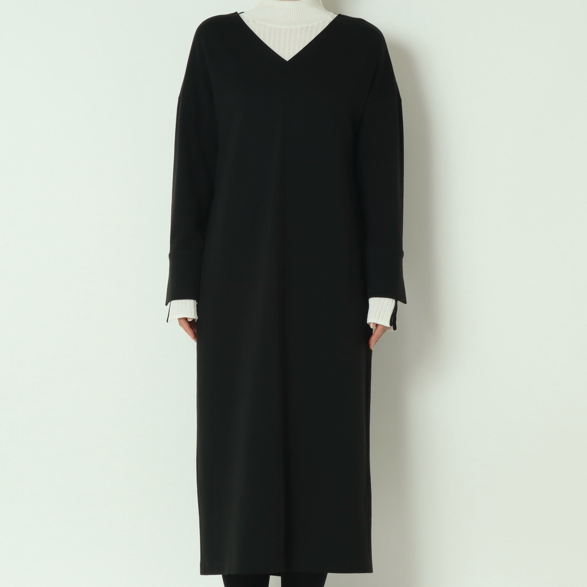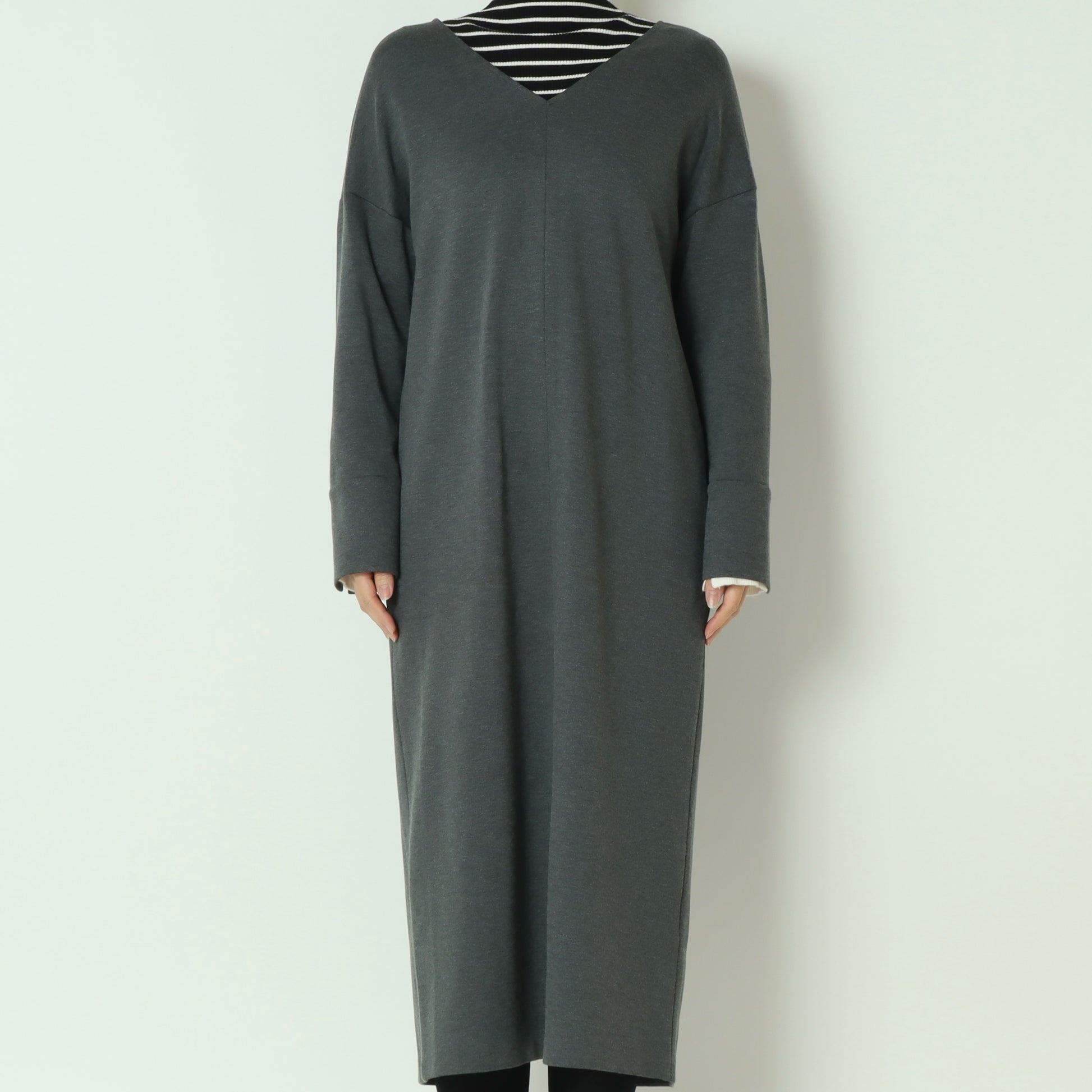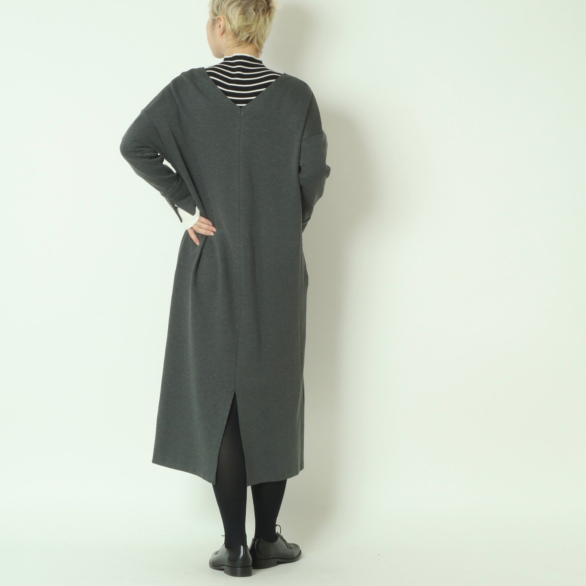 落ち着いた佇まいが印象的なVネックロングスリーブワンピース。
