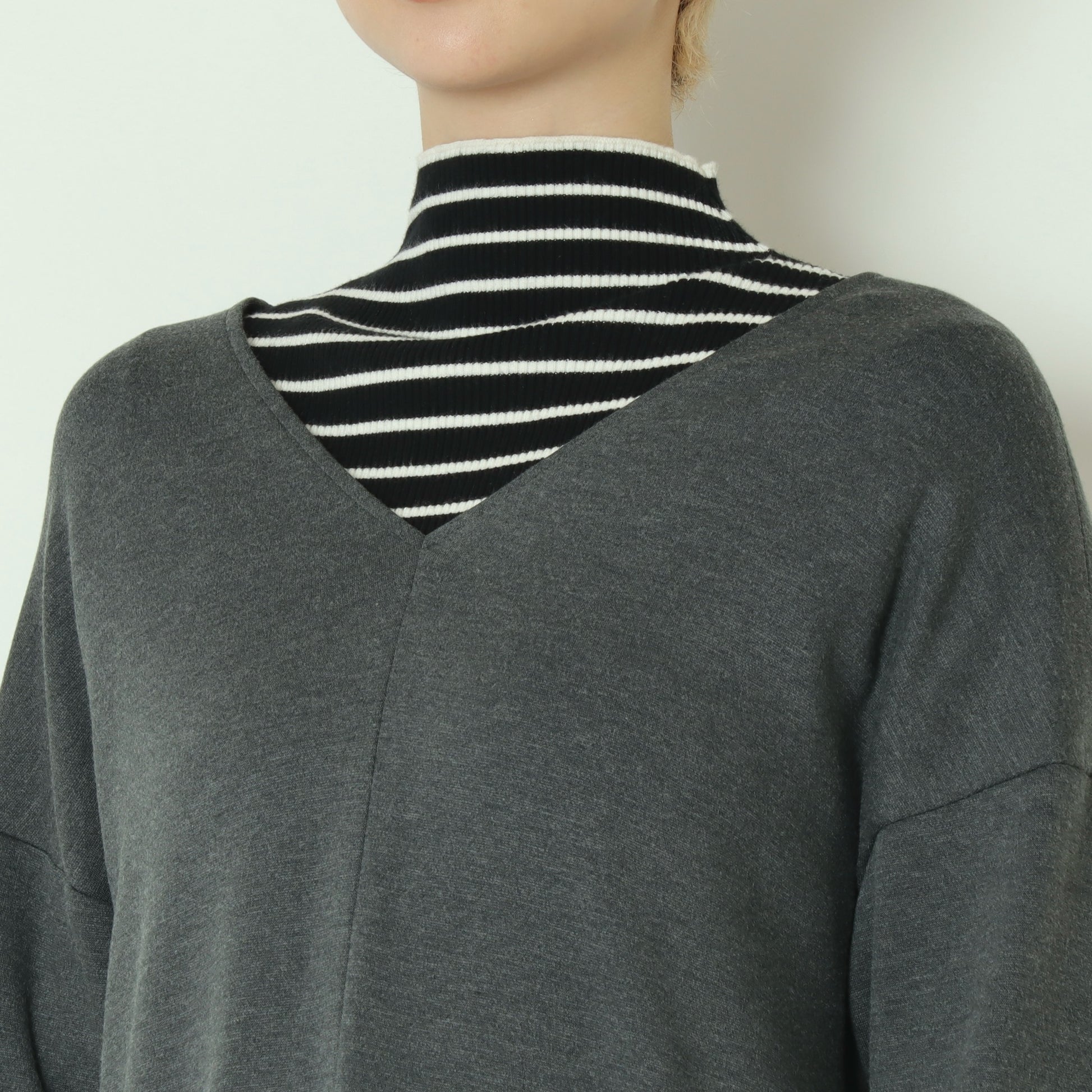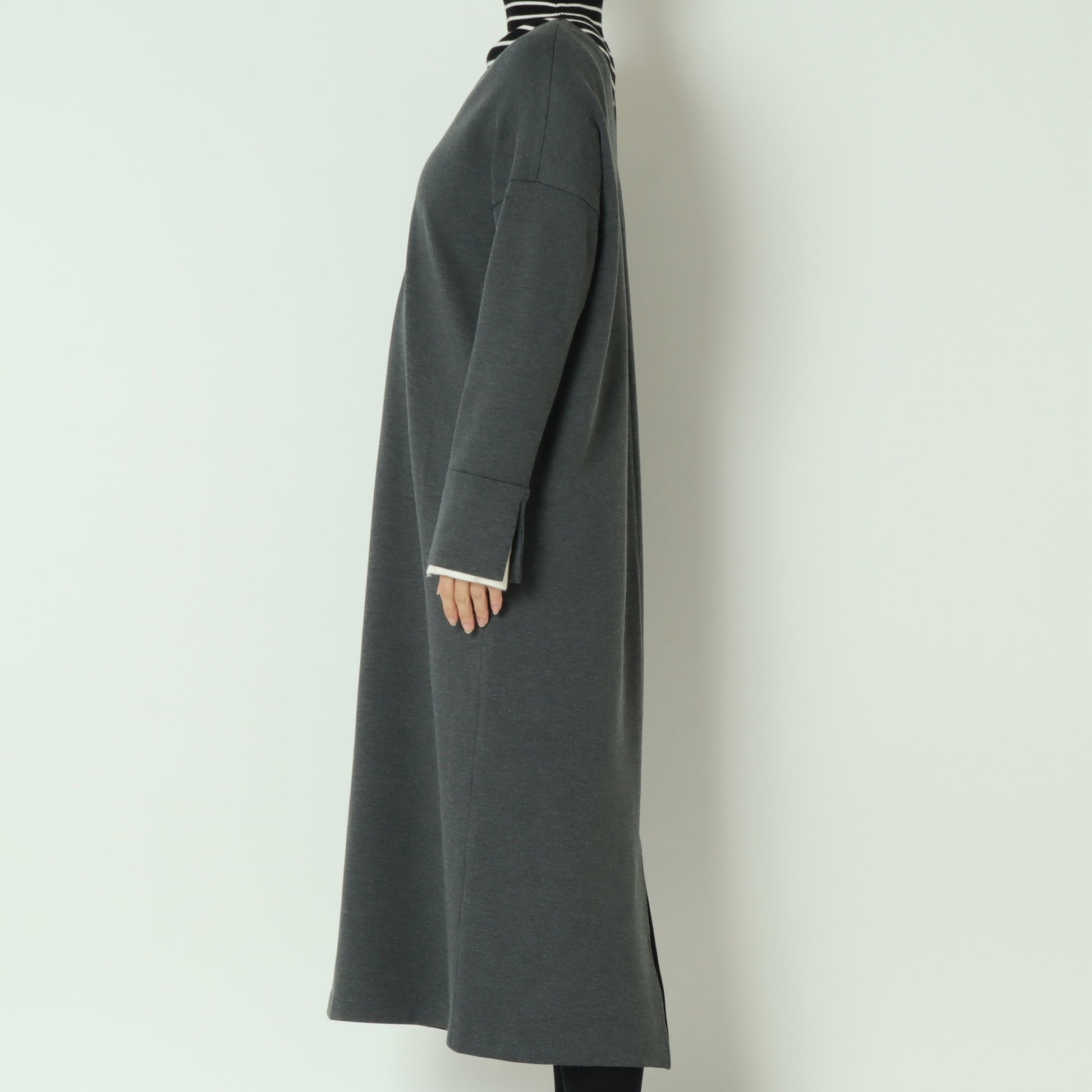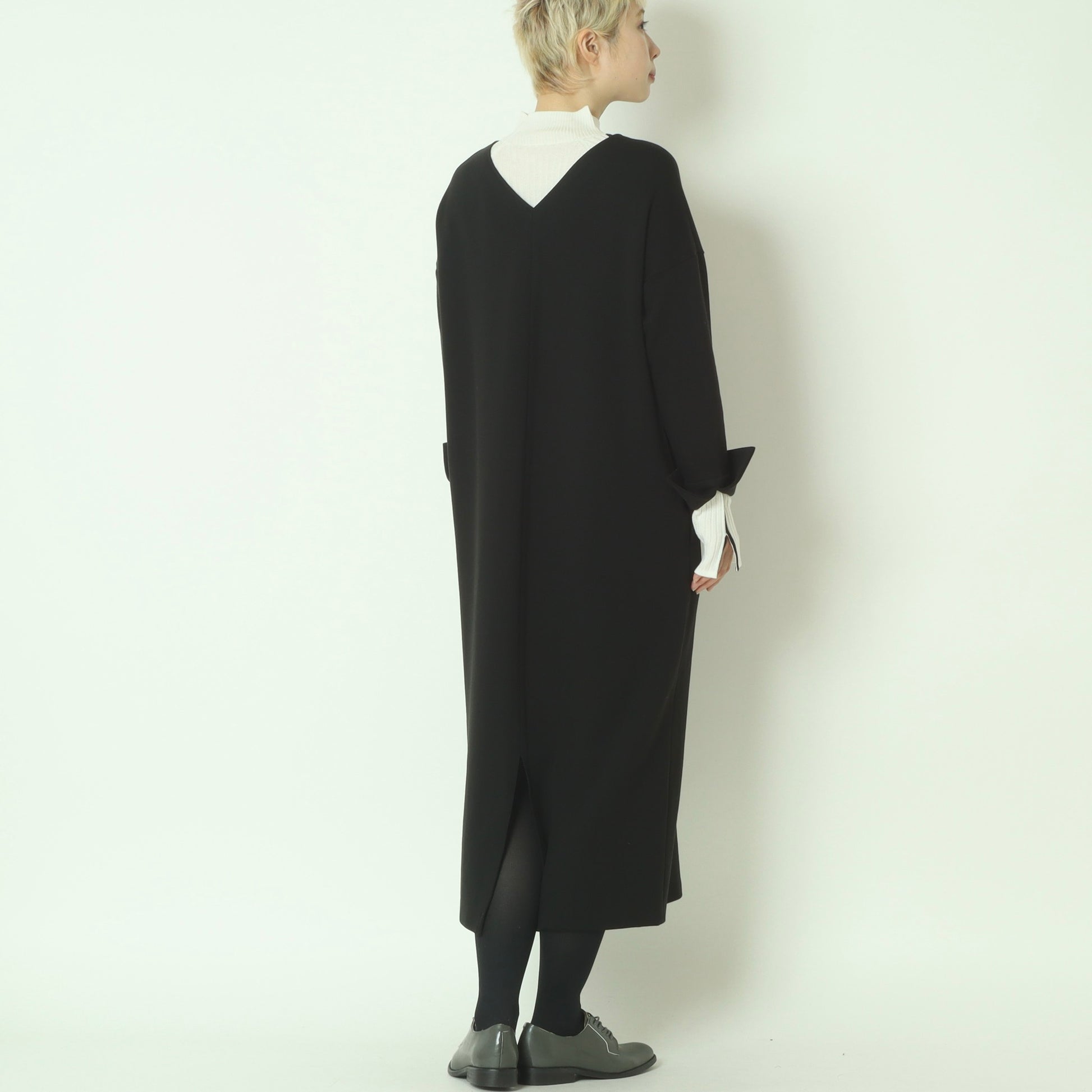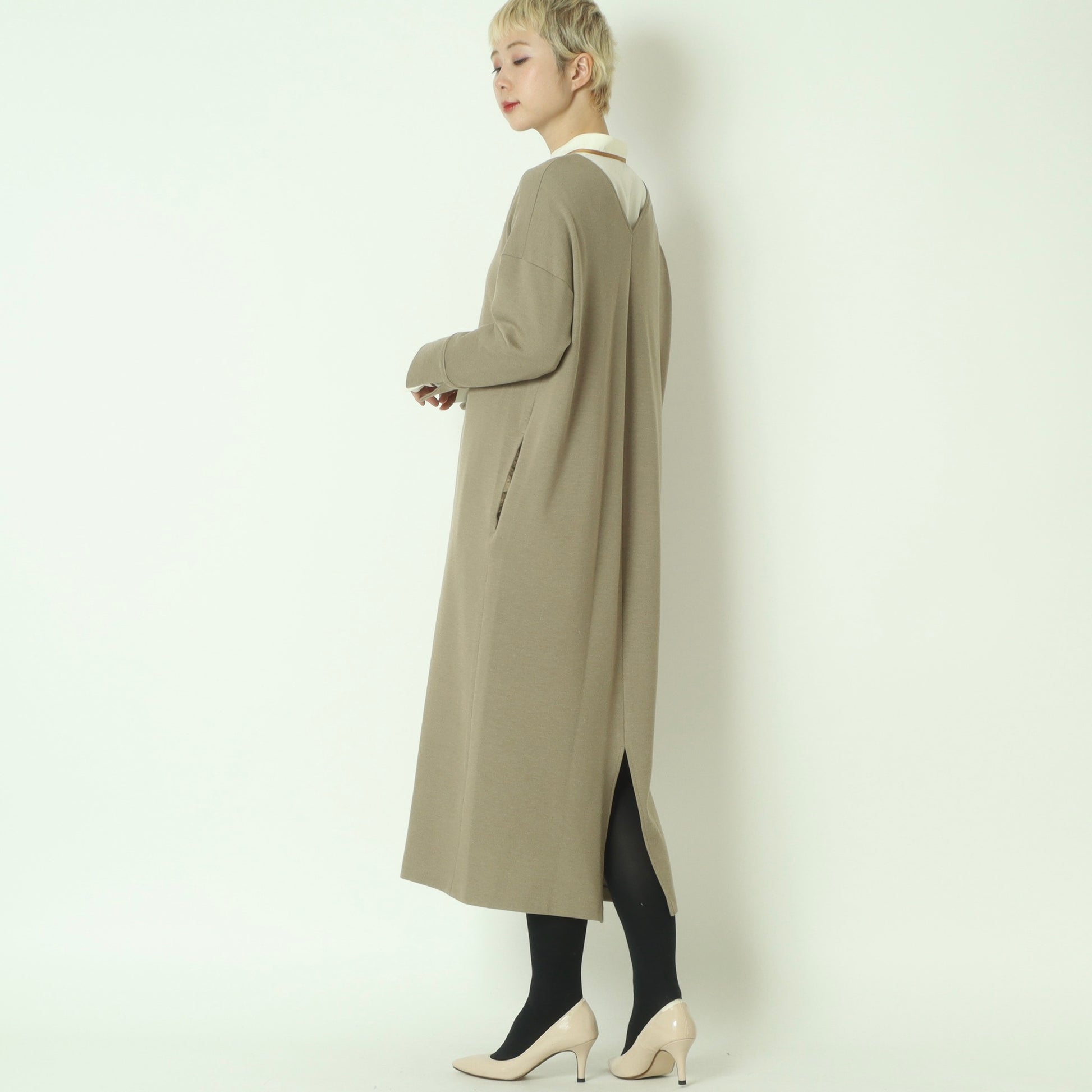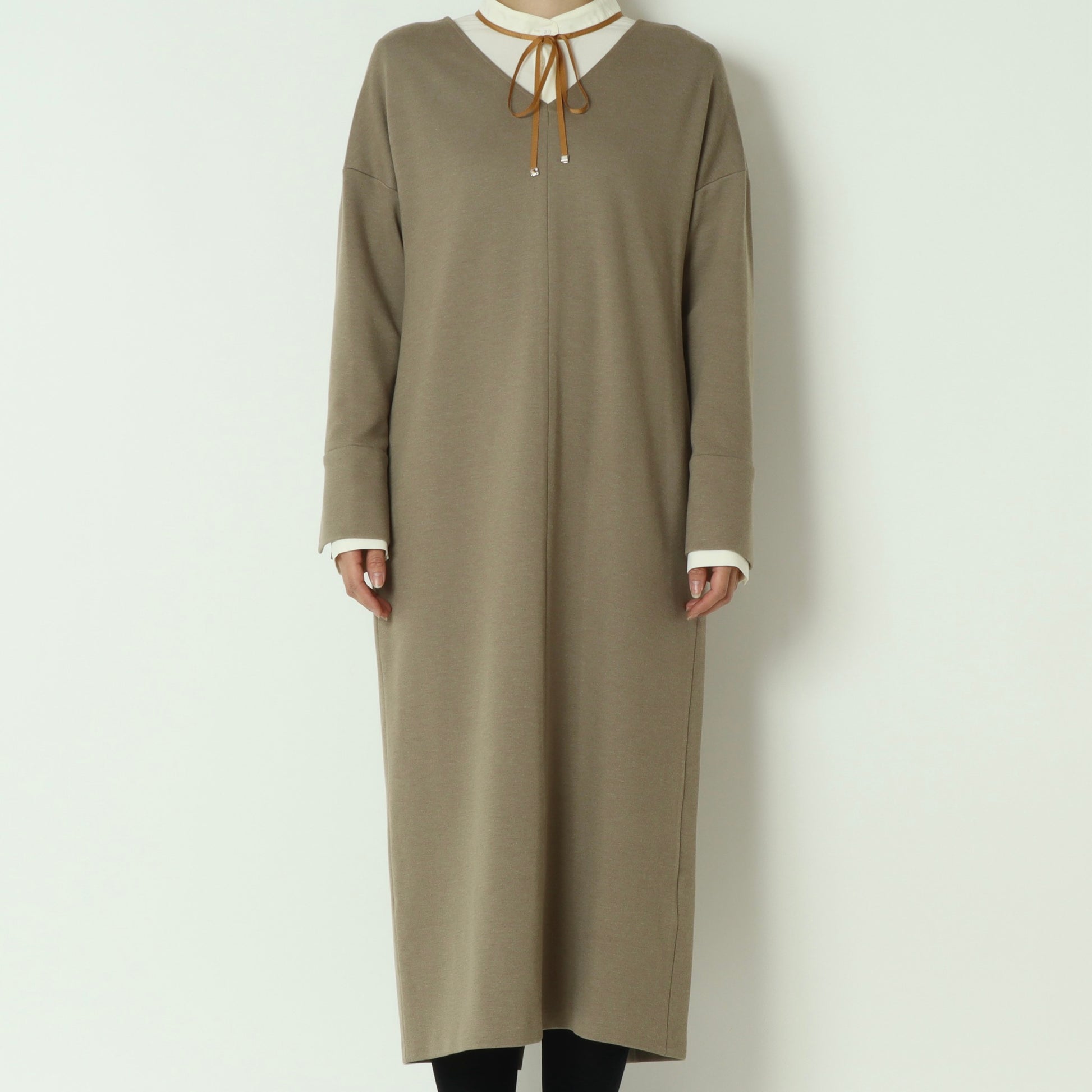 落ち着いた佇まいが印象的なVネックロングスリーブワンピース。