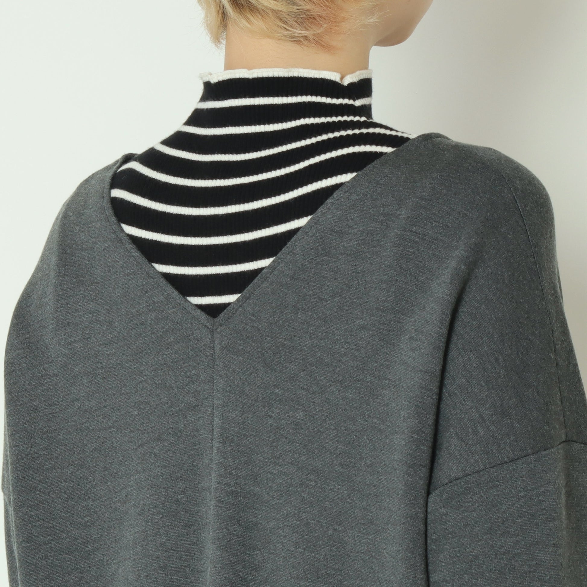 程よい開きのVネックが首元をすっきりと見せ、上品な抜け感を演出します。