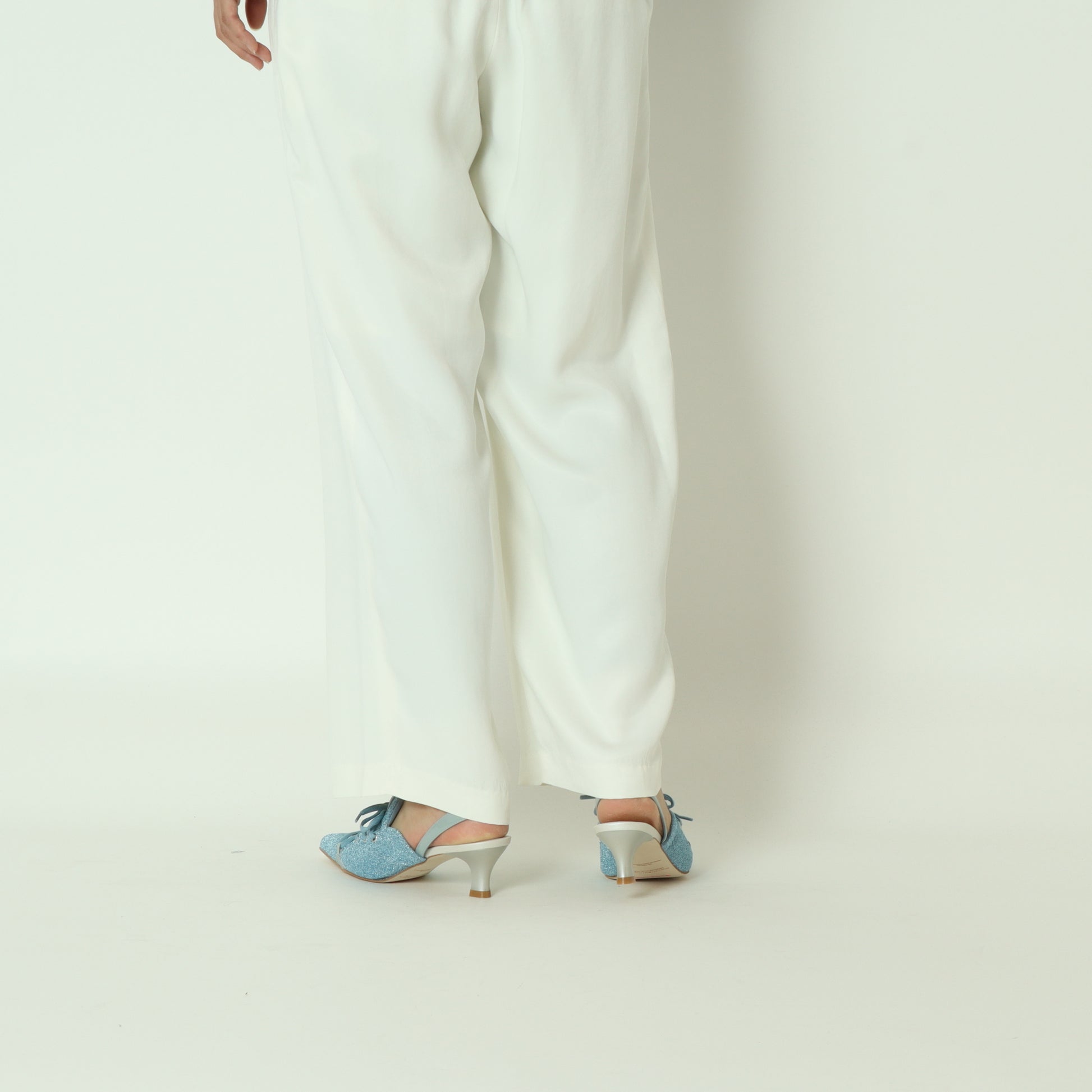 キラキラ華やかなニットヤーンデザインのスリングバックパンプス。