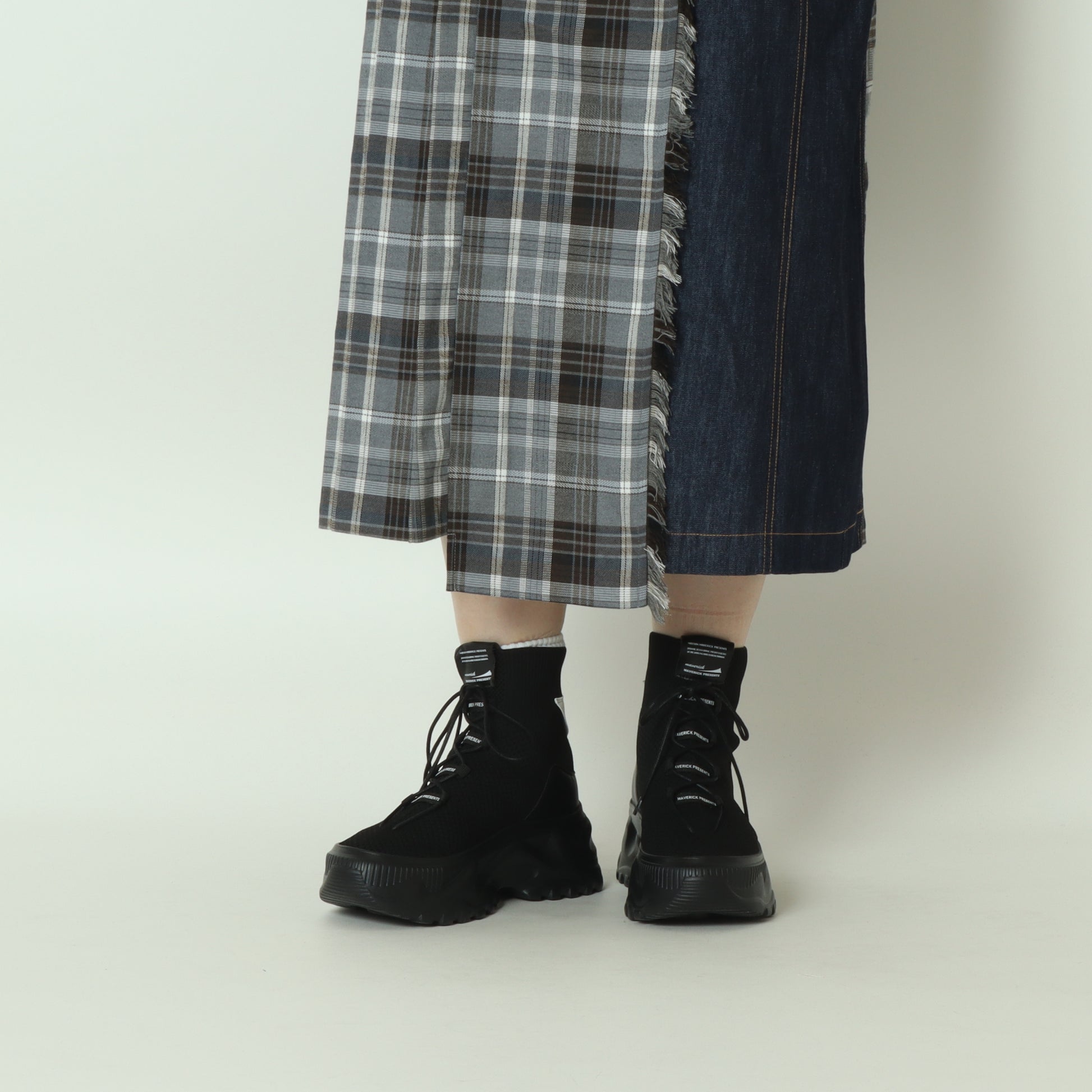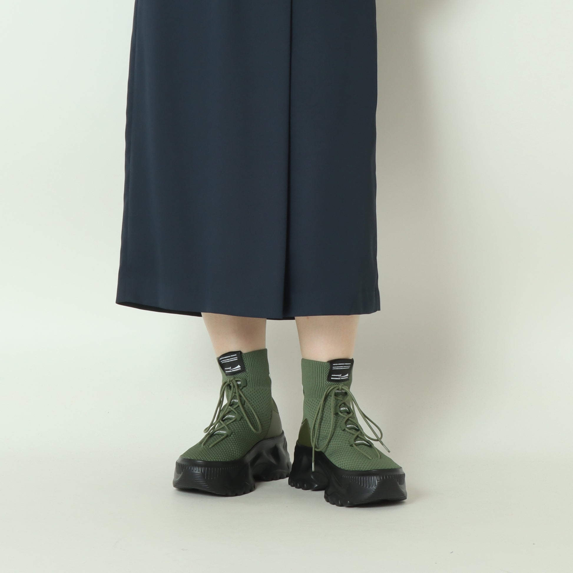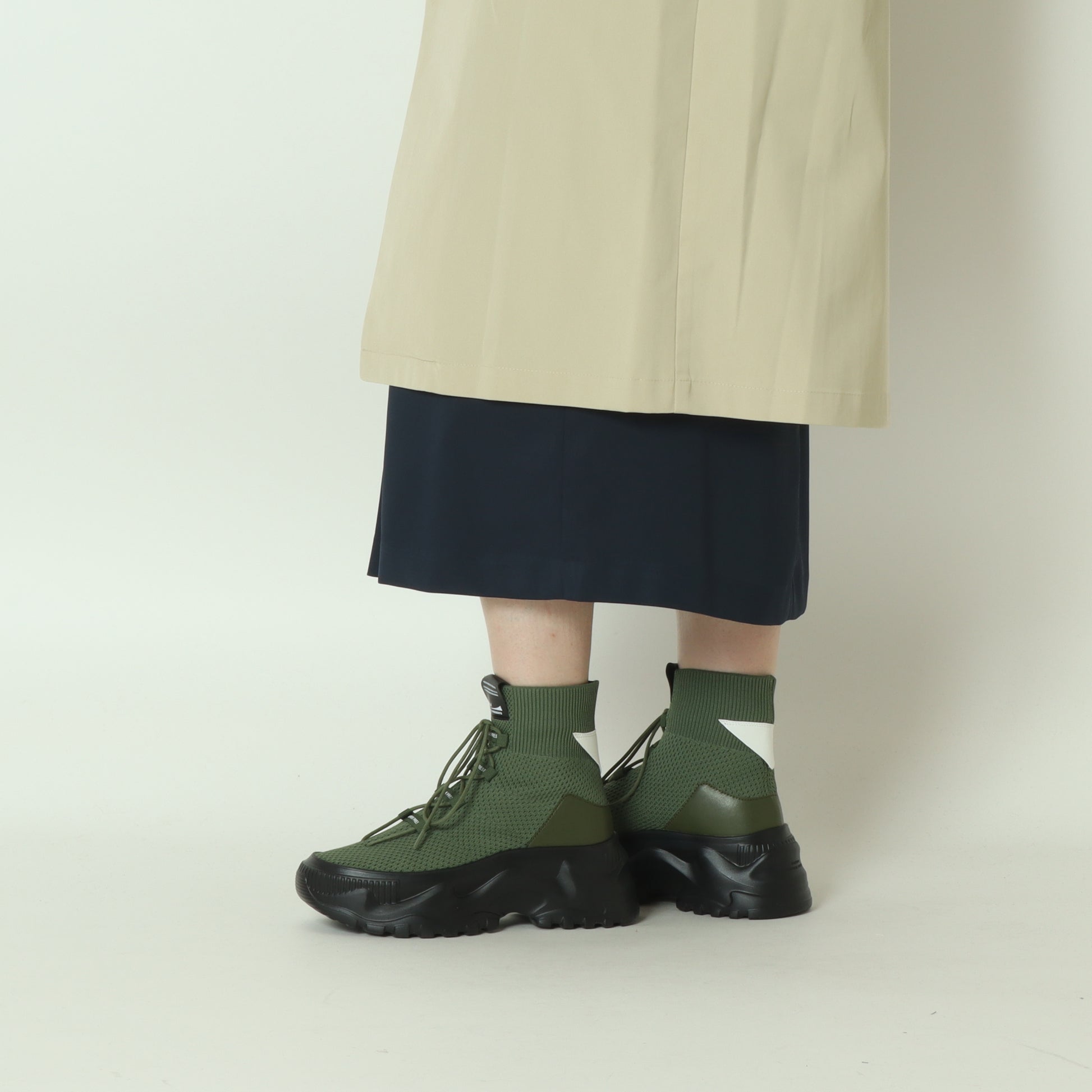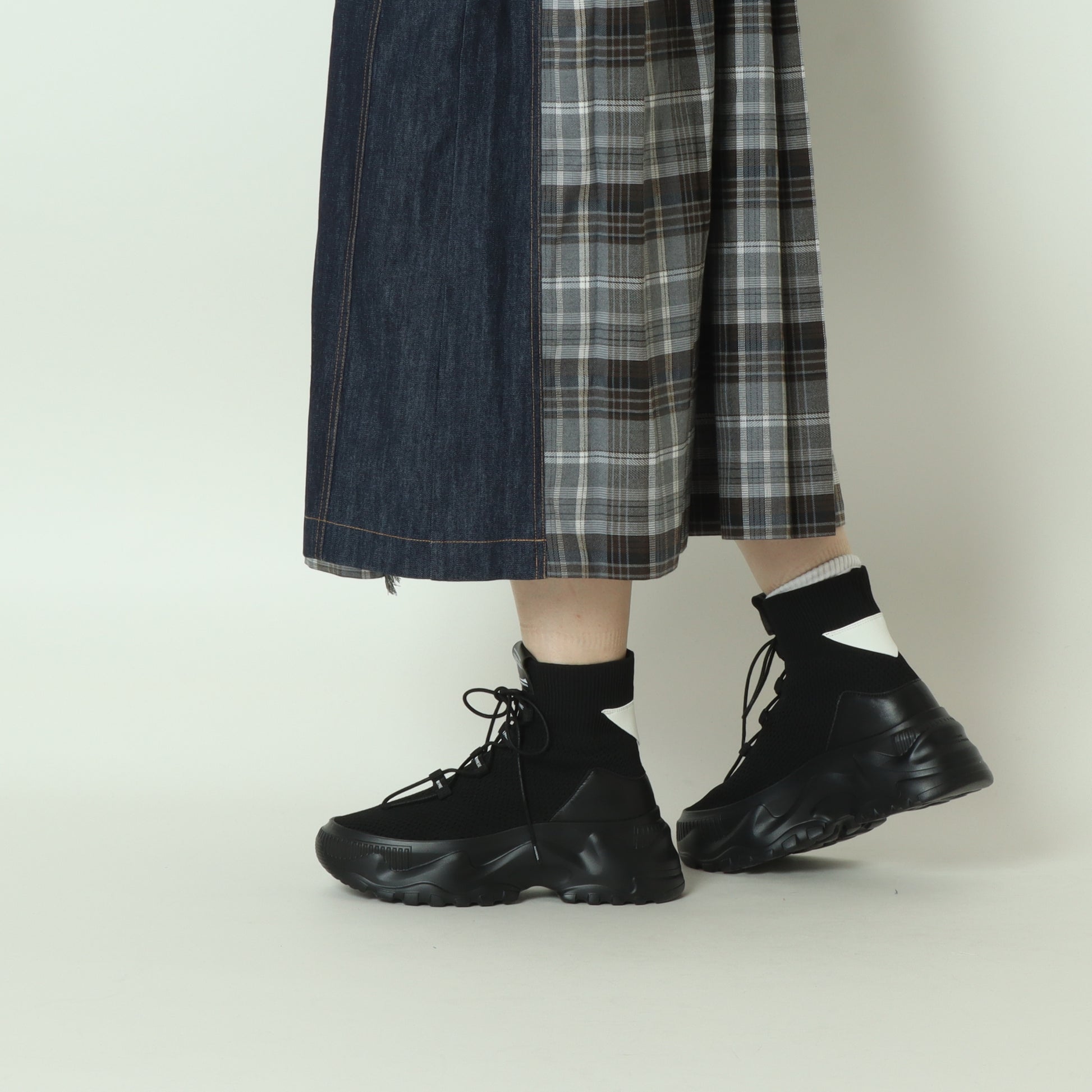 ソックスを履いたスニーカーのようなフォルムで、スタイリッシュな都会的デザインのモードなスニーカーブーツ。